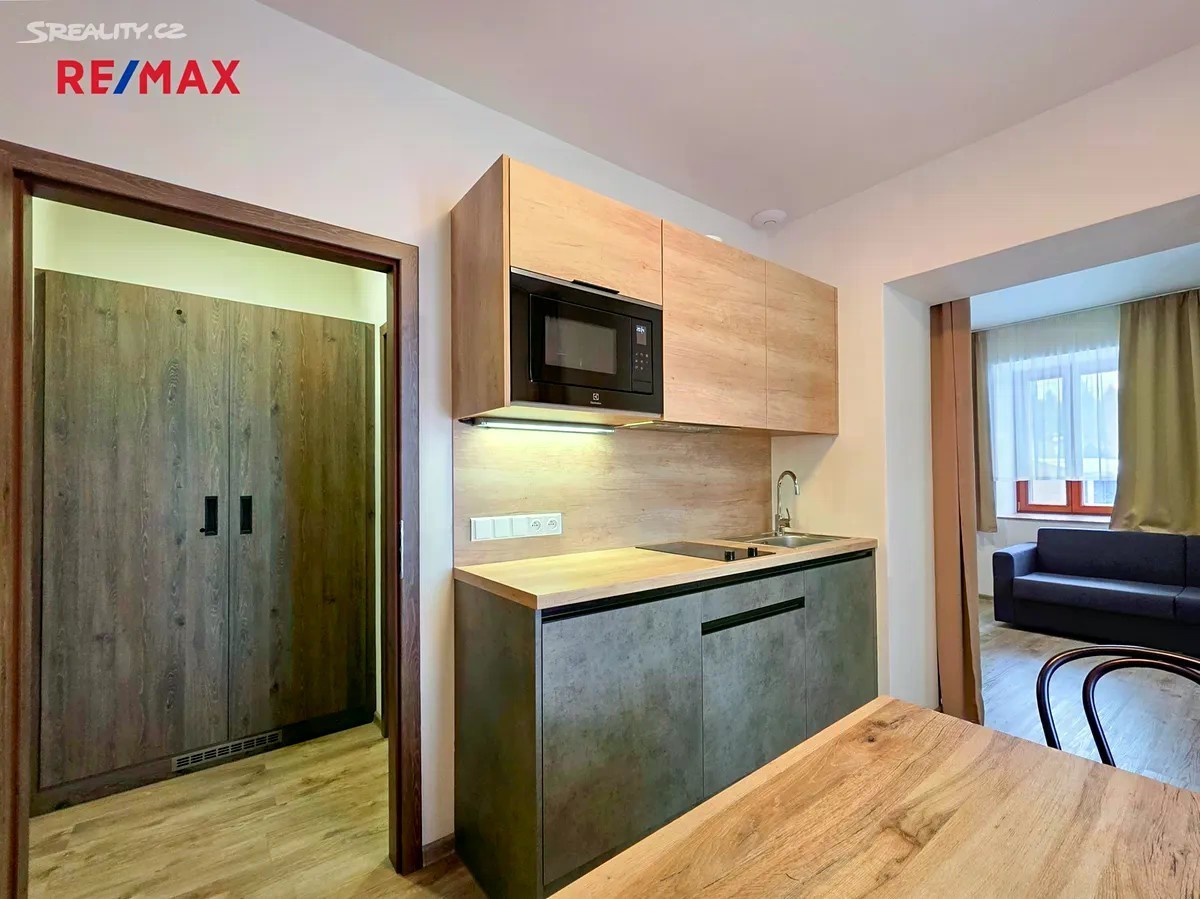 Máte rádi hory v létě i v zimě? Líbilo by se vám přijet do připraveného a příjemně vytopeného apartmánu, kde už jen relaxujete? Představuji vám útulný apartmán v apartmánovém domě, přímo v srdci horské obce Háj u Loučné pod Klínovcem. 3 minuty autem pod sjezdovky, případně můžete využít skibus, jehož zastávka je v docházkové vzdálenosti od apartmánu. Celý objekt včetně sousedního hotelu prošel nedávno důkladnou rekonstrukcí. Náš apartmán byl od té doby využíván jen zřídka. Uvnitř najdete vše, co potřebujete k příjemnému trávení volného času : - kompletně vybavenou kuchyni (vařič, mikrovlnná trouba, lednice, digestoř s uhlíkovým filtrem, nádobí) - manželskou postel, kterou jen povlečete do svého oblíbeného povlečení - rozkládací gauč pro 2 osoby - podlahové vytápění uhlíkovou folií s termostatem pro každou místnost, s možností dálkového ovládání přes internet - velký 100l bojler na teplou vodu jen pro vás Lyže a další sportovní potřeby můžete bez námahy uložit přímo v domě - k apartmánu patří podíl na uzavřených sklepních prostorách v suterénu. Apartmánový dům je propojen s hotelem Keilberg Resort, kde lze po dohodě využít v provozní době restauraci a případně další hotelové služby (wellness, hotelový servis. ). K parkování je vyhrazeno několik parkovacích míst přímo před domem. V době vaší nepřítomnosti lze apartmán komerčně pronajímat, o ubytování v této lokalitě je dlouhodobě velký zájem např. na Booking.com. Pokud vás nabídka zaujala, zavolejte a domluvíme si prohlídku. Pomoc s vyhledáním nejlepšího financování na trhu je samozřejmostí. Těším se na setkání.
