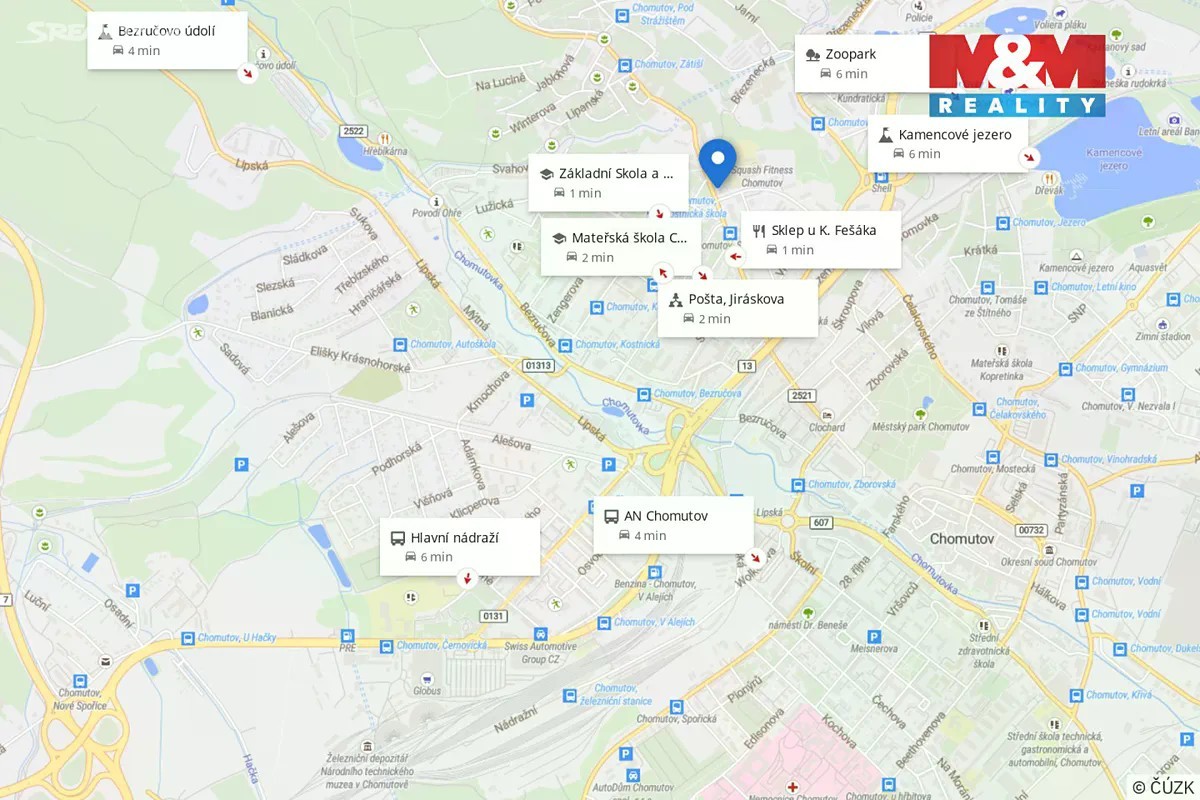 Poloha na mapě, užitečná místa a trasy