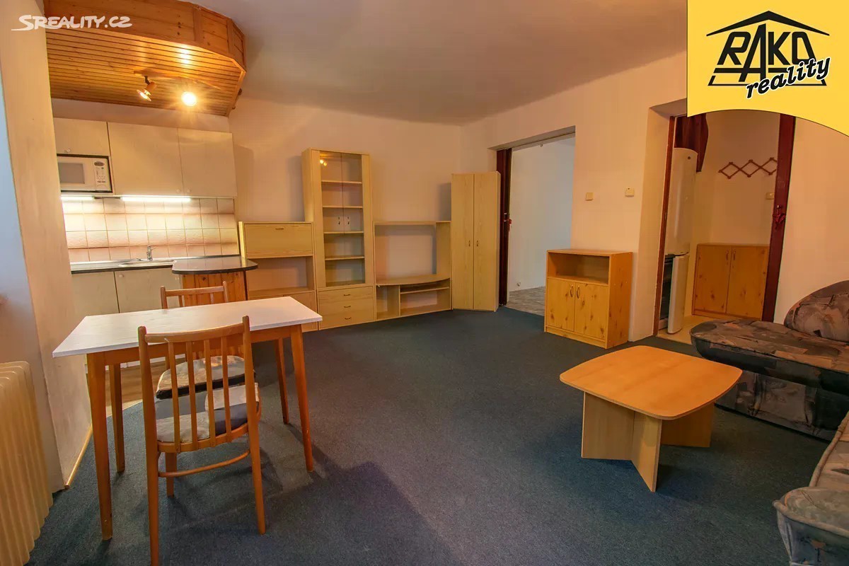 Nabízíme k pronájmu byt 2+kk o celkové podlahové ploše 49 m2, který se nachází v 1. NP zděného domu v Trutnově (Česká čtvrť). Městská část je dobře situována nedaleko centra a její okolí disponuje veškerou důležitou občanskou vybaveností (škola, školka, obchod, sportoviště, dětská hřiště, MHD). Centrum města je v docházkové vzdálenosti - do 10 minut pěšky. Bytový dům je po rekonstrukci vnitřních prostor a výměně oken. V roce 2026 je v plánu zateplovat fasádu domu. V domě není výtah. Aktuální dispozice bytu: předsíň, po pravé straně prostorná koupelna se sprchovým koutem, vanou a WC. Na levé straně předsíně se vchází do obývacího pokoje s kuchyňským koutem. Z obývacího pokoje se dále vchází do samostatného pokoje. K bytu patří velký sklep o výměře cca 10 m2 umístěný v suterénu domu, kde jsou i společné prostory (sušárna). Byt je v dobrém udržovaném stavu. V bytě je částečně položená keramická dlažba, koberec nebo linoleum. V bytě jsou nájemníkům k dispozici spotřebiče - plynová dvouplotýnka, trouba, lednice, pračka a dále i některý nábytek - gauč, obývací skříň, jídelní stůl. Nábytek lze při nevyužití případně umístit do sklepa. Varná dvouplotýnka je napojená na vlastní plynovou bombu, jejíž výměna je v režii nájemníka. (Majitelé nabízí pomoc při její výměně). Bomba má při běžném užívání životnost cca 1/4 roku. Vytápění je dálkové/centrální, ohřev vody - dálkový/centrální. Nájemné činí 8.300,-. Kč. Dále nájemník hradí zálohy na služby: vytápění 1.109,- Kč, voda STV 200,- Kč, voda TUV 800 Kč, elektřina společných prostor, STA, úklid, odpady atd. 644,- Kč. Dále se hradí bytová elektřina, která se po podpisu nájemní smlouvy přepisuje na nájemníka (elektřina cca 700,- Kč). Dále je nutné složit 17.000,- Kč jako vratnou zálohu a 9.000,- Kč provizi realitní kanceláři za zprostředkování. Orientační celková suma za měsíc se „vším všudy“: do 12 000 Kč Byt je k dispozici IHNED. Byt je vhodný maximálně pro 2 osoby. Pro byt hledáme solventního bezproblémového a dlouhodobého nájemníka. Preferujeme nájemníka bez mazlíčků a nekuřáka.