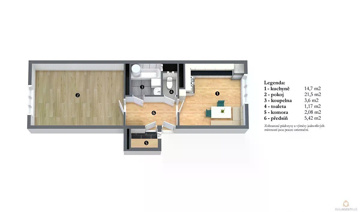 Nabízíme k pronájmu udržovaný cihlový byt 1+1 ve 3.NP (2.patře), který najdete na ulici Masarykova třída v Olomouci v blízkosti Hlavního vlakového nádraží. Celková plocha bytu je nadstandardních 51m2, pronajímá se bez solitérního nábytku (jen větší skříň v kuchyni a menší v předsíni), optický kabel zaveden. Byt sestává ze zádveří, komory, kuchyně vybavené kuchyňskou linkou s varnou plynovou deskou a digestoří (místo pro ledničku a pračku, el.trouba bude doplněna), koupelny s vanou a umyvadlem, samostatného WC a pokoje/ložnice s plovoucí podlahou. Topení 2x WAF, ohřev teplé vody vlastním el.bojlerem, elektřina 22oV. Dostupnost MHD a veškerá občanská vybavenost v okolí. Výtah chybí, sklepní prostor chybí. Volný od 19.12.2025. Cena 11.000Kč/měs.+ 205Kč/měsíc služby (el.spol.prostor + úklid spol.prostor) + 300Kč/os/měs. záloha na vodu + samostatné měření elektřiny a plynu (smlouva nájemce přímo s dodavatelem energií). Kauce 15.000Kč. Odměna RK 10.000,-Kč + DPH21%. Prohlídky od 8.12.2025, k prohlídce volejte makléře p.Záhumenského Libora.