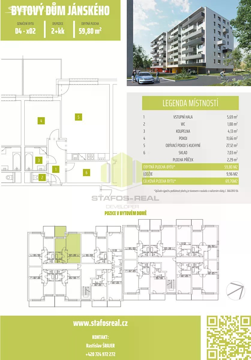 Představujeme vám jedinečnou příležitost k pronájmu novostavby moderního bytu 2+kk s užitnou plochou 59,8 m2 a lodžií o rozloze 9,96 m2. Tento byt se nachází v 6. nadzemním podlaží kvalitní novostavby, která bude dokončena na přelomu září/říjen 2025. Těšit se můžete na prestižní lokalitu na ulici Janského, v oblíbeném olomouckém obvodu Povel. Lokalita je ideální pro každodenní život, ať už kvůli blízkosti centra města, Fakultní nemocnice či dálničního příjezdu do Olomouce, tak díky snadné dostupnosti širokého spektra obchodů, služeb a dopravních spojení. Vaše nové bydlení nabídne severozápadní orientaci a prostorný obývací pokoj s kuchyňským koutem a vstupem na lodžii. Součástí bytu je také ložnice, vstupní hala, velkoryse prostorná šatna, koupelna a samostatné WC. Interiér je dokonalý až do detailu - vinylovou podlahu doplňují okna s trojsklem, moderní keramické obklady a dlažba v koupelně, či klimatizace u vybraných bytů a vnitřní žaluzie. Výjimečnost tohoto bydlení dokreslují prvotřídní služby a zařízení objektu. Tento bytový dům patří do energetické třídy B, což znamená nižší náklady na bydlení. Dům také nabízí komfortní řešení zvukového a tepelného útlumu mezi byty i oddělení chodeb od výtahu, bezbariérový přístup, moderní výtah, vysokorychlostní internet a mnoho dalšího. Nájemné činí 16.400 Kč/měsíc plus náklady na bydlení cca 2.700 Kč a elektřinu. Byt se pronajímá nevybavený, součástí je kuchyňská linka se spotřebiči a lednicí s mrazákem. Výběr kauce peněžní x kauce ve formě pojištění CEE Specialty: A) STANDARDNÍ KAUCE: Standardní výše placené kauce pronajímateli byla stanovena na: trojnásobek měsíčního nájemného BEZ ZÁLOH. B) POJIŠTĚNÍ KAUCE: Pojistné, které nahrazuje standardní kauci výše, je vždy 7 % ročně ze stanoveného limitu - čtyřnásobek měsíčního nájemného BEZ ZÁLOH. Minimální pojistný limit pojišťovny je 50 000 Kč s pojistným 3 500 Kč ročně. K bytu je také možnost pronajmout jednu ze čtyř variant parkovacích stání a dle dostupnosti také sklep. Odměna RK ve výši jednoho nájmu + 21% DPH. Začněte Vaší novou životní kapitolu bydlení a vychutnejte si radost z bydlení v zbrusu novém bytě. Prověřujeme evidenci exekucí, insolvencí a dluhů na zdravotním pojištění našich potenciálních nájemníků. Pro lepší představu o tomto bydlení vám doporučujeme shlédnout virtuální prohlídku, která vám také poskytne možnost změřit jakýkoliv rozměr tohoto bytu. Volné od listopadu/prosince 2025. Kompletní nabídku bytů v domě najdete na našich stránkách STAFOS-REAL.