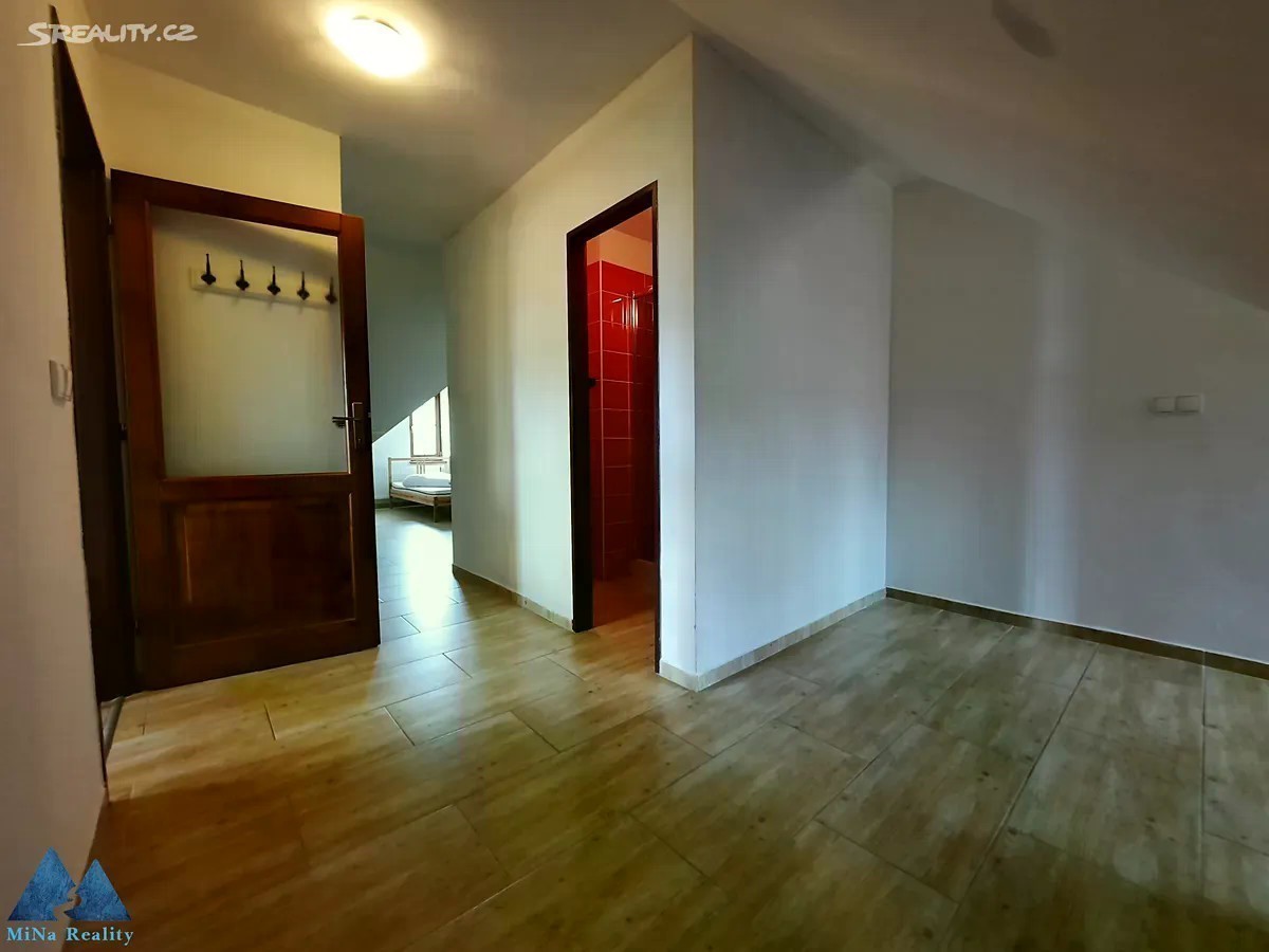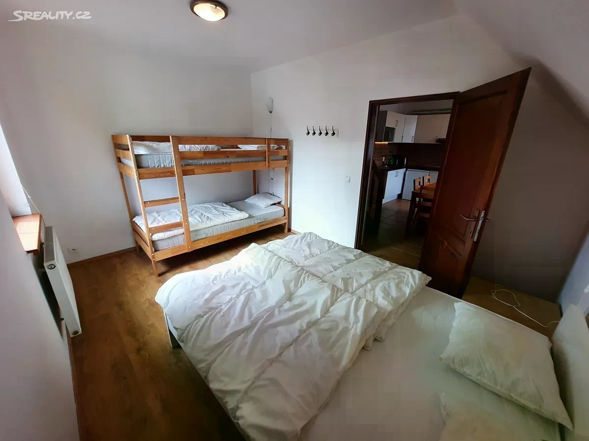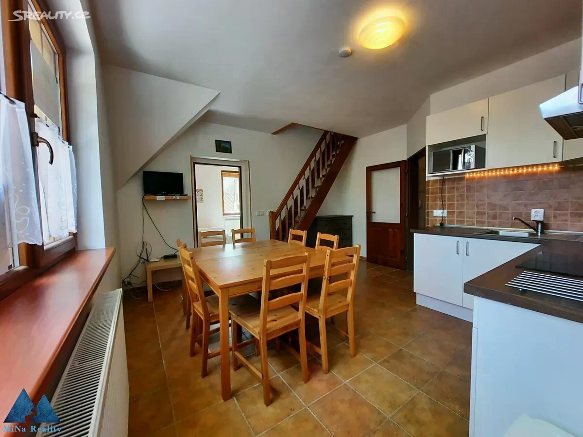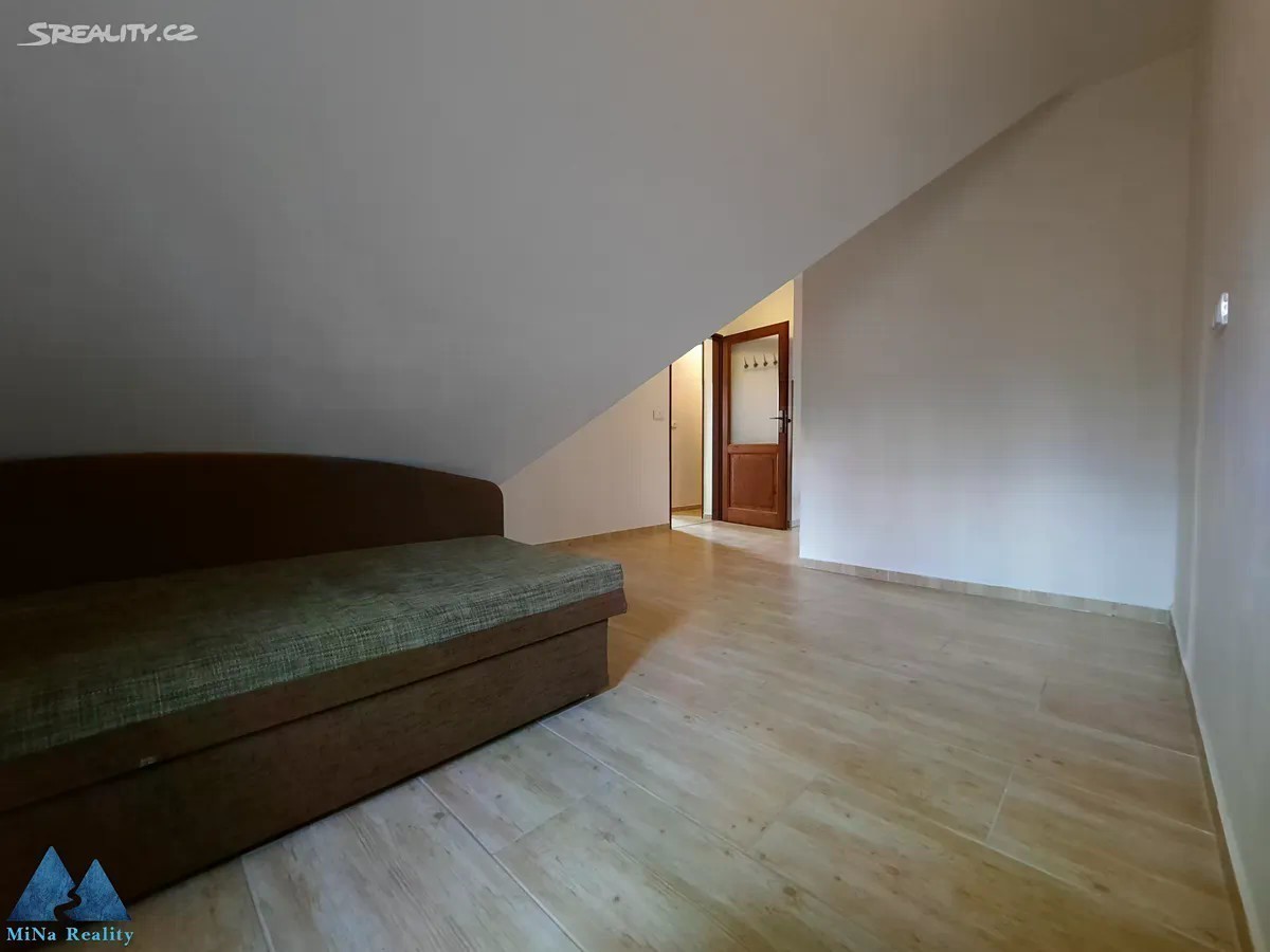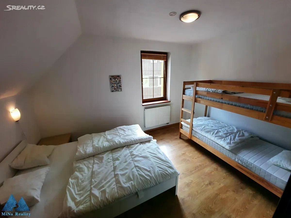 Dobrý den, nabízíme pronájem horského mezonetového apartmánu 3+KK, v horské obci Vítkovice v Krkonoších. Dispozici apartmánu o celkové výměře 97 m2 tvoří: Vstupní chodba s koupelnou a WC, ložnice a prostorný obývací pokoj s kuchyňským koutem, ze kterého vedou schody do vrchní části bytu. Zde nalezneme technickou místnost, jeden samostatný pokoj a jeden velký pokoj. V horním patře je také druhá koupelna s WC. Součástí nájmu je také lyžárna v přízemí. Vytápění je řešeno samostatným plynovým kotlem. Parkování je zajištěno na bezplatném obecním parkovišti, které se nachází kousek od domu. Sjezdovky jsou dostupné pěšky do pár minut. Místo je atraktivní v letních i zimních měsících. V pěší vzdálenosti se dále nachází restaurace, pekárna, relaxační centrum, půjčovna sportovního vybavení. Hned přes cestu je obecní dětské hřiště a posezení, což ocení především rodiny s dětmi. S pronájmem apartmánu jsou spojeny následující náklady: Zálohy na energie 4.000,- Kč. Provize RK jeden měsíční nájem + DPH, nájem + energie na první měsíc a kauce ve výši dvou měsíčních nájmů. Apartmán bude volný od 1. 3. 2026. Pro více informací se na mne kdykoliv obraťte.