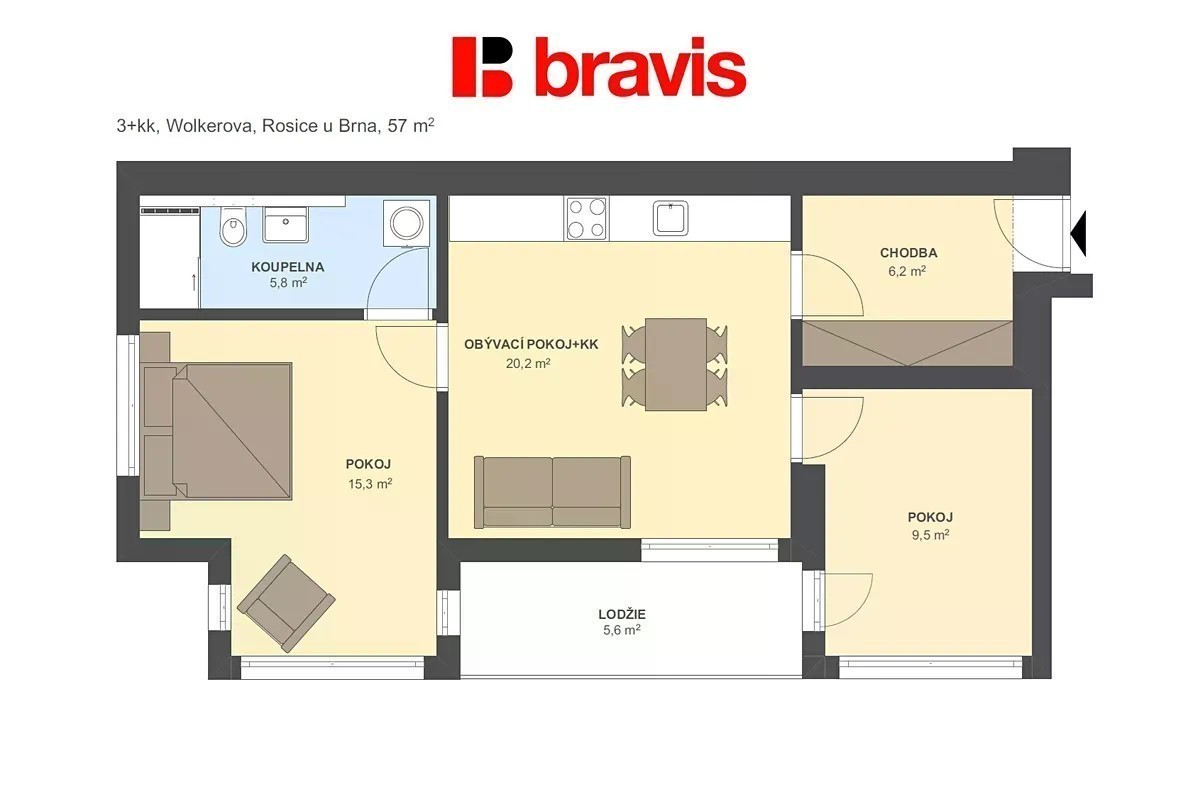 Pronájem bytu 3+kk 57 m² Wolkerova, Rosice