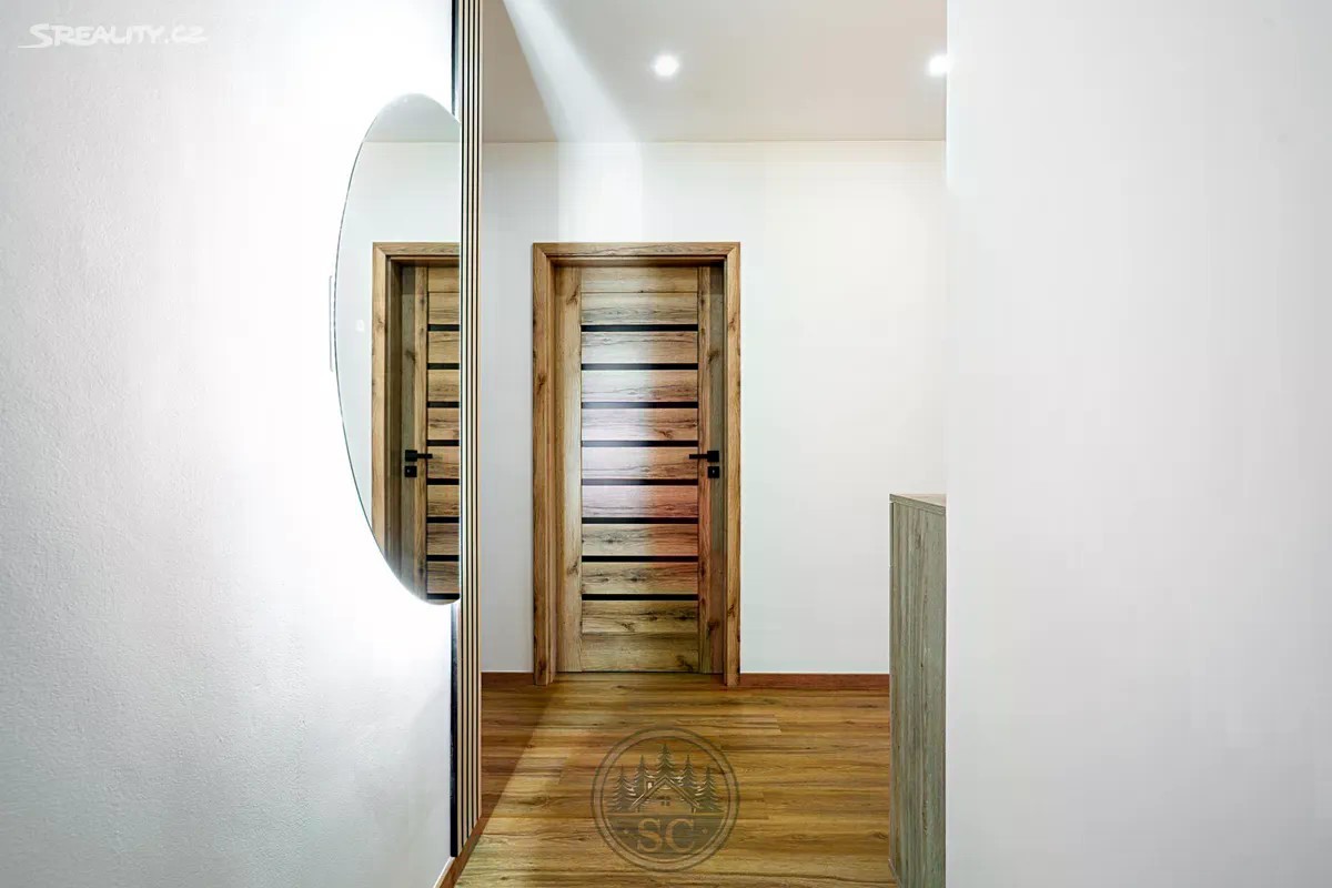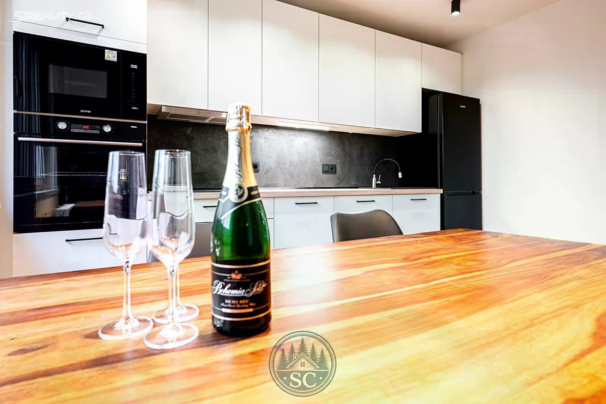 Hned po vstupu do bytu vaši pozornost upoutá nádherná kuchyně, která je skutečným srdcem celého domova. Dominantou prostoru je jídelní stůl z masivu se židlemi, kolem kterého je navržena elegantní kuchyňská linka na míru. Kuchyně je vybavena indukční varnou deskou, vestavnou troubou, mikrovlnnou troubou, myčkou a volně stojící lednicí, takže nabízí plnohodnotný komfort i moderní vzhled. Součástí kuchyně je také stylová komoda s integrovanou vinotékou, nad kterou je umístěn dřevěný dekor s podsvícenou lamelou. Tento prvek vytváří večer krásné ambientní osvětlení. Nad jídelním koutem jsou instalována designová světla navržená tak, aby neoslňovala, a před kuchyňskou linkou jsou samostatná stropní světla pro perfektní viditelnost při vaření. Kvalita rekonstrukce je vidět na první pohled - celý byt má nově vyrovnanou podlahu pomocí nivelace a položenou kvalitní vinylovou krytinu, vyměněny byly všechny dveře včetně zárubní a prostor působí moderně a velmi čistě už při vstupu. Obývací pokoj se zasklenou lodžií nabízí moderní obývací stěnu s přípravou na TV, doplněnou podsvícením s možností regulace intenzity pomocí ovladače. Osvětlení obývacího pokoje bodovými svítidly umožňuje přepínat mezi teplým a studeným tónem světla, což platí také pro druhý pokoj. V pokojích jsou instalovány moderní dotykové vypínače, které umocňují nadčasový styl rekonstrukce. Zasklená lodžie má položenou dlažbu v dekoru dřeva a poskytuje další příjemný prostor k posezení. Koupelna je laděna do kombinace šedých obkladů a dlažby v dekoru dřeva, vybavená vanou, velkým umyvadlem se skříňkou, podsvíceným zrcadlem a připraveným prostorem pro pračku a sušičku. WC je samostatné, ve stejném designu, osazené závěsným systémem Geberit. Koupelnu a toaletu odděluje předsíň s elegantním podsvíceným zrcadlem. Lokalita nabízí maximální komfort - v těsné blízkosti se nachází nákupní centrum Michal, mateřská škola, zdravotní středisko, pekárna, lékárna, elektro, galanterie, cukrárna i restaurace Pérák. Výborné je také rychlé napojení na D6 ve směru na Karlovy Vary i Cheb a okolí disponuje několika školami a školkami. Tento byt představuje kompletně zrekonstruovaný, promyšlený domov bez nutnosti dalších investic, kde je kvalita opravdu vidět hned při prvním kroku. Prohlídku velmi doporučuji! Uvedené výměry jsou orientační. V případě více zájemců bude nemovitost prodána nejlepší nabídce a majitel si vyhrazuje právo vybrat kupujícího na základě jim zvolených kritérií. Veškeré zveřejněné údaje obsažené v tomto inzerátu mají pouze informativní charakter a nejsou nabídkou ve smyslu §1731 nebo §1732 občanského zákoníku, ani se nejedná o veřejný příslib dle §1733 občanského zákoníku.