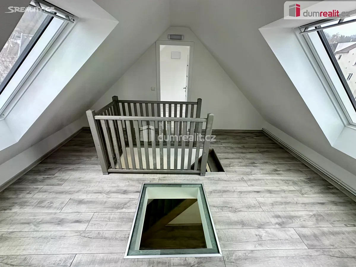 Naše společnost Vám zprostředkuje prodej mezonetové bytové jednotky o velikosti 4+1 v nádherné části Karlových Varů na Vyhlídce, v ul.Kolmá s balkónem a výhledem na Dianu s orientací na jižní stranu s výměrou 119m². Bytová jednotka se nachází ve 4.patře bytového domu a je po právě dokončené celkové rekonstrukci. Podlahová krytina v celém bytě je lamino v kombinaci s dlažbou. Plastová okna a v patře plastová střešní okna Velux. Nové rozvody elektřiny. V kuchyni nově osazená kuchyňská linka včetně plynové varné desky IKEA SKALAN, elektrické trouby IKEA LAGAN, digestoře IKEA UTDRAG NN a vestavěná myčky nádobí IKEA OSTVEDA. Koupelna se skleněným sprchovým koutem a vanou. Samostatné WC vedle koupelny. Obývací místnost je o velikosti 27,6 m² se třemi okny. Ložnice / pracovna o velikosti 11,5 m² je s prostorným balkónem a výhledem do okolí. V patře se nachází dvě místnosti / komory, každá se dvěma střešními okny a schodiště ( také se dvěma střešními okny ) s prosklenou pochozí částí nad spodní chodbou. Vytápění a ohřev vody plynovým kondenzačním kotlem Gepard Condens 18/25 MKV-A. Všude jsou nová otopná tělesa. V bytě je dále zabezpečovací systém (pohybová čidla + dveřní kontakt na vstupních dveřích). Internet přiveden do bytu optickým kabelem CETIN. Vše velmi vkusně zrekonstruováno a připraveno k okamžitému nastěhování. Ev. číslo: 653224.