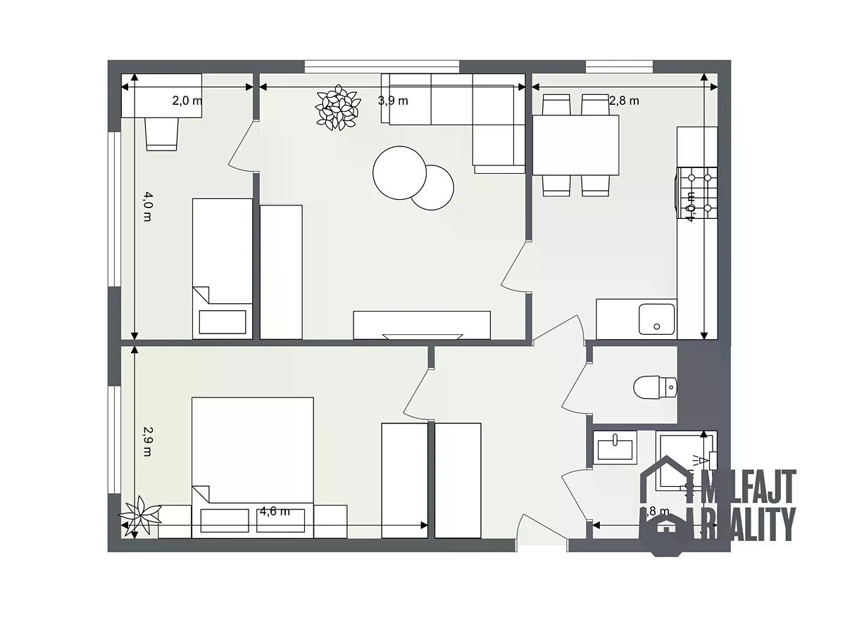 Nabízíme k pronájmu praktický, ale zároveň velmi útulný byt s krásným výhledem. Dispozice 3+kk a výměra 58 m2 je ideální pro pár či menší rodinu. Byt se nachází na pomezí Nových Pavlovic a Ruprechtic - tedy na místě, kde máte všechno po ruce. MHD, supermarket, lékař, školka, škola i sportovní vyžití jsou doslova pár minut chůze. Snadno se dostanete jak do centra, tak opačným směrem - do Jizerských hor. Dům je zateplen, díky čemuž jsou zde nízké měsíční náklady. Před domem najdete dětské hřiště, parkování je možné hned u domu. Byt je situovaný v 6. patře, což zajišťuje krásný výhled do okolí díky orientaci od jihovýchodu až po jihozápad. Byt je po rozsáhlé rekonstrukci - moderní, velmi prostorná kuchyň je vybavena kompletní sadou vestavěných spotřebičů. Kuchyň a obývací část odděluje praktický pult, který prostor opticky rozdělí, ale nenaruší jeho společný charakter. Obývací pokoj nabízí příjemné podsvícení, které dodává bytu útulnou atmosféru a vytváří ideální prostor pro společné chvíle. Koupelna s walk-in sprchovým koutem má čistý moderní design, WC je prakticky oddělené. K dispozici jsou dvě samostatné ložnice - menší pokoj vhodný pro dítě a větší ložnice, která bez problémů pojme dvě osoby. K bytu náleží také sklep, ideální pro uložení sezónního nebo sportovního vybavení. Náklady na bydlení: cca 4 000 Kč / 3 osoby + zálohy na elektřinu (cca 1 000 Kč). Byt je volný ihned. Při nastěhování se hradí vratná jistota 34 000 Kč, první nájemné se službami a provize RK ve výši 15.000 Kč. Pokud vás nabídka zaujala nebo máte další dotazy, neváhejte mě kontaktovat. Telefonicky jsem vám k dispozici 8:00-18:00, mimo tento čas prosím SMS nebo e-mail. Uvedené rozměry jsou orientační. Energetický štítek (PENB) zatím není k dispozici - proto aktuálně uvádíme třídu G.