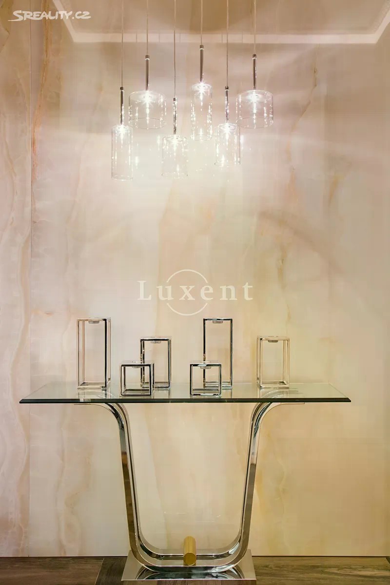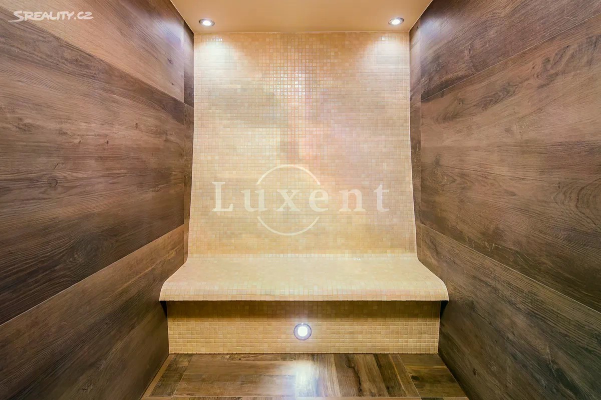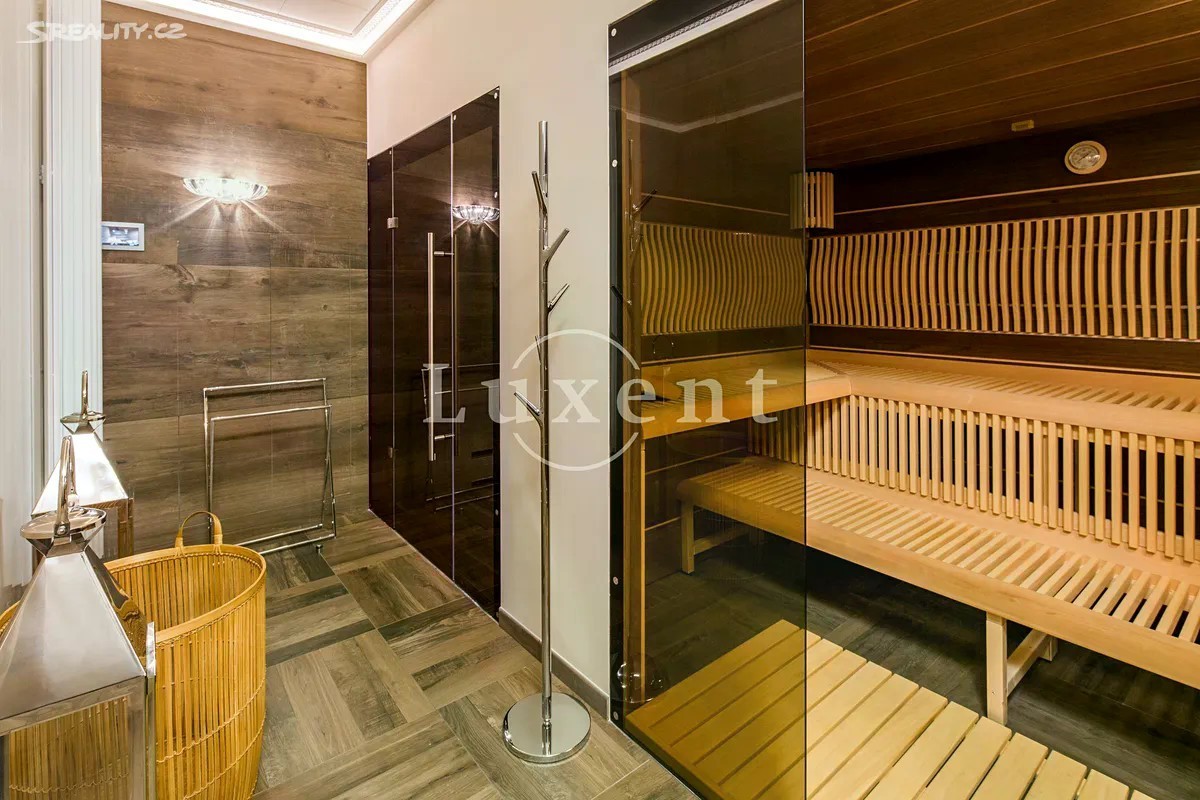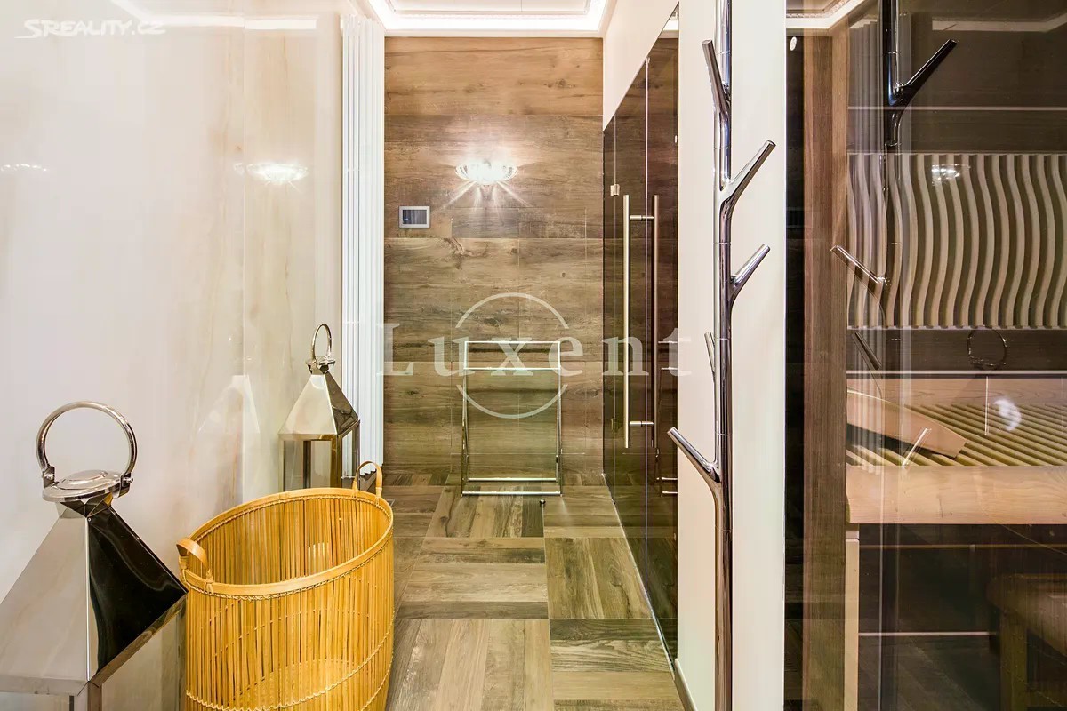 Nabízíme luxusně vybavený designový apartmán „Diamond“ v nově zrekonstruovaném historickém domě Rubin Palace, v srdci Karlových Varů, ve Vřídelní ulici na lázeňské kolonádě. Jedná se o prémiový byt, se saunou, terasou ve stylovém dvoře a balkony orientovanými na kolonádu, situovaný v 1. patře tohoto atraktivního rezidenčního domu s výtahem. Dispozice 3+kk je rozložena na podlahové ploše 238 m2 s balkony o velikosti celkem 7,3 m2 a terasou 30 m2. Dům byl postaven v r. 1897 podle karlovarského architekta Karla Hellera. Jako památkově chráněný byl v r. 2016 kompletně zrekonstruován podle italského inženýra Stefana Stramigioli a dokončen architekty ateliéru Soukup. Vzniklo zde 7 luxusních apartmánů s terasami nebo balkony orientovanými na kolonádu (z toho 6 je aktuálně k dispozici). Apartmán Diamond má obývací pokoj s balkonem na kolonádu a plně vybavenou prostornou kuchyň s okny orientovanými stejným směrem. Dále halu a dvě ložnice s vlastními koupelnami s toaletou - jednu s balkonem na kolonádu a druhou propojenou s prostornou terasou ve stylovém dvorku domu. V části bytu orientované do dvora je dále luxusní spa čítající dvě sauny a koupelnu s walk-in sprchami. Apartmán je exkluzivně interiérově vybaven podle návrhu známé německé designérky Simony Fritz (viz foto a video). Nabízí životní pohodlí a velký luxus spolu s krásnými výhledy z balkonů a soukromým klidem na terase. Bez jakýchkoliv úprav je možné hned začít vysoce komfortně bydlet či byt pronajímat. Lokalita domu patří k nejpřitažlivějším ve městě díky lázeňské kolonádě, atraktivní obchodní zóně i vyhlášeným restauracím. Občanská vybavenost je ve Varech na vysoké úrovni včetně lékařské péče i vzdělávání. Dopravní dostupnost je hladká po stále delší dálnici D6 nebo veřejnou dopravou - vlaky i autobusy. Za cca hodinu a půl dojedete do Prahy a během půl hodinky můžete být v přírodě nebo na sjezdovkách v Božím daru a pokračovat dál na německou stranu za sportem, nákupy či kulturou. Bližší informace rádi poskytneme v naší kanceláři. Kategorie PENB G je uvedena pouze dočasně, energetický štítek je v aktuálně přípravě.