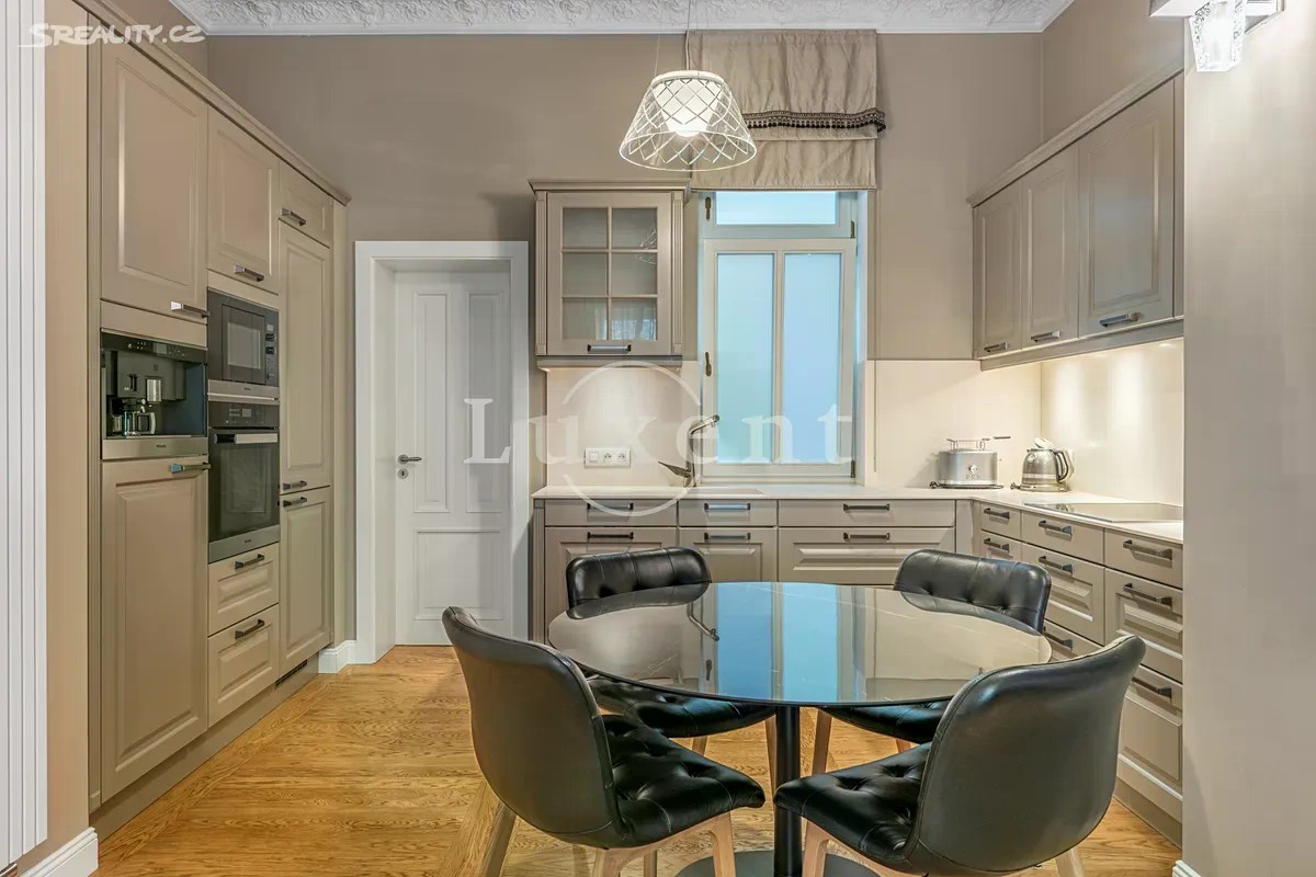 Nabízíme luxusně vybavený designový apartmán „Amethyst“ v nově zrekonstruovaném historickém domě Rubin Palace, v srdci Karlových Varů, ve Vřídelní ulici na lázeňské kolonádě. Jedná se o byt ve 3. patře tohoto atraktivního rezidenčního domu s výtahem. Dispozice 2+kk je rozložena na podlahové ploše 61,7 m2. Dům byl postaven v r. 1897 podle karlovarského architekta Karla Hellera. Jako památkově chráněný byl v r. 2016 kompletně zrekonstruován podle italského inženýra Stefana Stramigioli a dokončen architekty ateliéru Soukup. Vzniklo zde 7 luxusních apartmánů s prostornými terasami ve dvoře nebo balkony orientovanými na kolonádu (z toho 6 je aktuálně k dispozici). Apartmán Amethyst má obývací pokoj s plně vybavenou prostorově oddělenou kuchyní, dále ložnici s vlastní koupelnou s toaletou a samostatné wc přístupné ze vstupní předsíně. Apartmán je exkluzivně interiérově vybaven podle návrhu známé německé designérky Simony Fritz (viz foto a video). Nabízí klid, životní pohodlí a luxus. Je orientován do tichého stylového dvora domu. Bez jakýchkoliv úprav je možné hned začít vysoce komfortně bydlet či byt pronajímat. Lokalita domu patří k nejpřitažlivějším ve městě díky lázeňské kolonádě, atraktivní obchodní zóně i vyhlášeným restauracím. Občanská vybavenost je ve Varech na vysoké úrovni včetně lékařské péče i vzdělávání. Dopravní dostupnost je hladká po stále delší dálnici D6 nebo veřejnou dopravou - vlaky i autobusy. Za cca hodinu a půl dojedete do Prahy a během půl hodinky můžete být v přírodě nebo na sjezdovkách v Božím daru a pokračovat dál na německou stranu za sportem, nákupy či kulturou. Bližší informace rádi poskytneme v naší kanceláři. Kategorie PENB G je uvedena pouze dočasně, energetický štítek je v aktuálně přípravě.