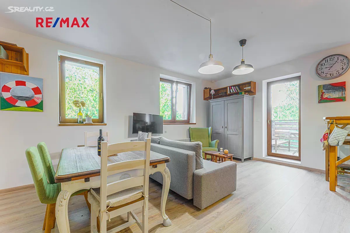 Slunečný apartmán 2+kk s wellness, saunou a 40m² terasou - Váš relax na Slapech Hledáte místo, kde dovolená nikdy nekončí? Představujeme vám apartmán, který kombinuje komfort luxusního bydlení s relaxačním zázemím wellness hotelu. Nabízíme k prodeji exkluzivní, plně vybavený apartmán 2+kk (54,8 m²) v novostavbě v žádané lokalitě Osada Hrdlička (obec Čím), jen kousek od Slapské přehrady. Jednotka je v katastru vedena jako nebytový prostor v objektu pro rodinnou rekreaci, avšak splňuje veškeré parametry pro trvalé bydlení a její koupi lze bez problémů financovat hypotečním úvěrem. To nejlepší, co tento apartmán nabízí: Terasa snů (40,5 m²) na jihozápad: Terasa je orientována tak, že si slunce užijete po celý den až do západu. Funguje jako druhý obývací pokoj pod širým nebem - ideální pro grilování nebo opalování v naprostém soukromí. Wellness a relaxace přímo v domě: V suterénu domu na vás čeká nadstandardní zázemí - wellness místnost se saunou pro váš odpočinek, ale také místnost na ping-pong pro aktivní zábavu. Interiér ve vysokém standardu: Apartmán se prodává kompletně vybavený. Kuchyňská linka je vyrobena na míru a nábytek odpovídá vyššímu standardu kvality. Stačí si přinést osobní věci a bydlíte. Bezbariérový přístup: Byt se nachází ve zvýšeném přízemí, které je díky nájezdům na schodech plně bezbariérové - ideální pro kočárky i osoby s omezenou mobilitou. Bonusy, které oceníte: Komunitní zahrada: V rámci SVJ můžete využívat jen 20 metrů vzdálenou zahrádku s ohništěm, grilem a posezením. Praktické zázemí: V domě je k dispozici kolárna (bezpečí pro vaše drahá kola) a prádelna se společnou pračkou a sušičkou. Extrémně nízké náklady: Měsíční náklady na provoz se pohybují okolo 4 000 Kč se vším všudy, což z bytu dělá i skvělou investiční příležitost. Technické specifikace: Energeticky úsporný dům (třída B) je napojen na vlastní studnu a vytápěn kombinací tepelného čerpadla (s dvěma klimatizačními jednotkami) a přímotopů. Ohřev vody zajišťuje elektrický bojler. Elektřina je zavedena 230/400 V. Samozřejmostí je vysokorychlostní internet (až 100 Mbit/s) a vlastní parkovací stání v ceně. Lokalita - Slapy na dosah: Osada Hrdlička je oázou klidu uprostřed přírody. Koupání a sport: Slapská přehrada, venkovní bazén, hřiště na nohejbal/volejbal, trampolíny. Výlety: Brdy, zámek Dobříš, Hornické muzeum Příbram. Dostupnost: Praha cca 45 min, Dobříš 20 min. Autobusová zastávka v docházkové vzdálenosti. Ideální investice či druhý domov: Ať už hledáte únik z města na víkendy, nebo moderní bydlení v přírodě s nízkými náklady, tento apartmán splní vaše očekávání. Přijďte se přesvědčit na vlastní oči! Těšíme se na vás na prohlídce.