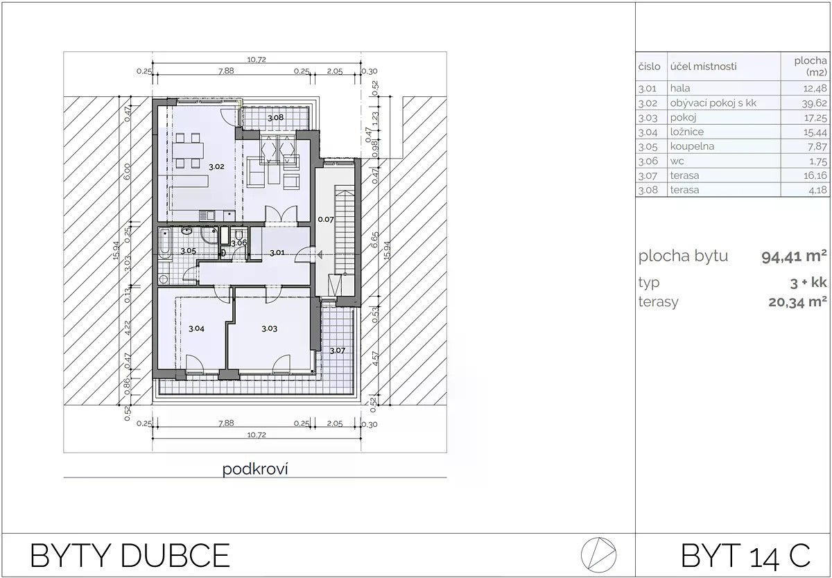 Představujeme Vám luxusní bytovou jednotku v rámci klidného rezidenčního komplexu Byty Dubce. Tomuto bytu dominuje 40 metrový obývací pokoj, který je od klidové zóny s dvěma ložnicemi oddělen chodbou a sociálním zařízením. Tento koncept je zachován i u bytů v nižších podlažích a riziko vzájemného rušení je tak minimalizováno. V koupelně je vana i sprchový kout a dostatek prostoru pro instalaci pračky i sušičky bez stísněného dojmu. Z obývacího pokoje i z ložnic jsou přístupné dvě terasy o celkové ploše 20 m2. Byt je od začátku zamýšlen jako vysoce nadstandardní. Samozřejmostí jsou tak kvalitní podlahy, sanita i velkoformátové obklady. Moderní kuchyňská linka vyhoví i těm nejnáročnějším. Vytápění je v celém bytě teplovodní podlahové s tepelnými čerpadly uloženými v areálu OC. Už s dvojskly splňuje podmínky pro kategorii B - Velmi úsporná. U tohoto bytu jsou navíc instalovány nadstandardní trojskla. Díky tomuto řešení budou náklady na vytápění v porovnání s klasickým řešením minimální. K bytu samozřejmě náleží i velkorysé garážové stání a samostatný zděný sklep. V areálu je i dostatek venkovních parkovacích míst pro návštěvy. Kompletní občanská vybavenost je v rámci tohoto areálu samozřejmostí. Součástí projektu je i menší obchodní centrum, ve kterém najdete Billu, drogerii, restauraci i fitcentrum. V bytě je nainstalována moderní a kvalitní kuchyň. Na foto chybí mikrovlná trouba, ale v bytě již samozřejmě je. Osvětlení je již také nainstalováno (na foto stav před instalací). V bytě je také příprava pro klimatizaci a po dohodě je možné ji dodělat.