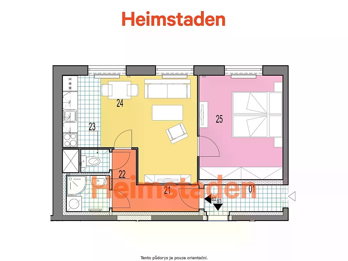 Pronájem bytu 2+kk 41 m² Nad Stadionem, Frýdek-Místek - Frýdek