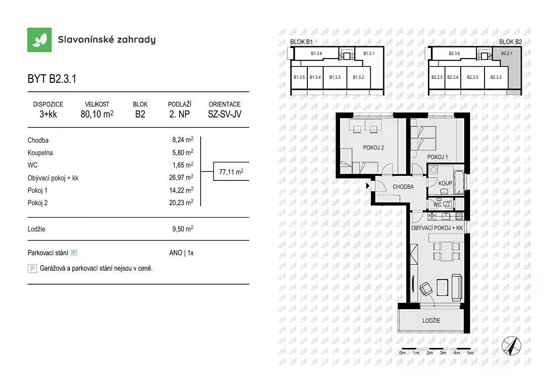 Nová etapa projektu SLAVONÍNSKÉ ZAHRADY navazuje na již realizované budovy v okolí ulice Loudova a nabízí kvalitní domov pro rodiny s dětmi, mladé páry, seniory i studenty. Budova B tvořená dvěma samostatnými sekcemi o čtyřech podlažích zahrnuje celkem 48 moderních bytů v dispozicích od 1kk do 3kk. Každý byt disponuje balkonem či terasou a jednotky v 1. NP mají navíc prostorné předzahrádky, ideální pro relax i rodinný život. Součástí projektu je podzemní parkovací podlaží, které propojuje obě sekce domu, a je tak zajištěno komfortní parkování pro obyvatele. K dokoupení jsou také komory jak v podzemním podlaží, tak na jednotlivých patrech. Pro více informací navštivte webové stránky Slavoninske-zahrady. Nabízíme prostorný byt s označením B1.1.1 o dispozici 3+kk, podlahové ploše 80,1 m2 v 1. NP, s terasou 14,4 m2 a soukromou zahradou 60,1 m2 ideální pro rodiny s dětmi, páry i milovníky venkovního života. Byt je navržen s důrazem na funkčnost, estetiku a soukromí. Velká okna zajišťují dostatek denního světla, přízemní umístění nabízí snadný přístup na terasu a do zahrady, která rozšiřuje obytný prostor a vytváří ideální místo pro relaxaci i volnočasové aktivity. Součástí standardu je podlahové vytápění v celém bytě, vinylové podlahy, keramické obklady, obložkové zárubně a možnost výběru z několika designových a materiálových variant. Připraveno je i technické zázemí pro instalaci venkovních žaluzií a sdílené fotovoltaiky. K bytu lze dokoupit garážové/venkovní stání i sklep. Lokalita Slavonína spojuje výhody města a přírody v okolí najdete cyklostezky, rybník, zeleň i kompletní občanskou vybavenost. MHD, školy, školky, zdravotní péče i obchody jsou v docházkové vzdálenosti, stejně jako napojení na hlavní dopravní tahy. Pokud hledáte moderní bydlení s vysokým standardem, soukromím a vlastním kouskem zeleně, je tento byt skvělou volbou. Dokončení projektu je plánováno na podzim 2027. Prodej je již zahájen kontaktujte nás pro více informací.