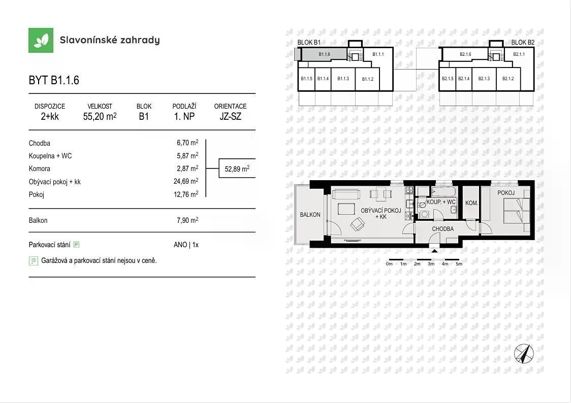 Nová etapa projektu SLAVONÍNSKÉ ZAHRADY navazuje na již realizované budovy v okolí ulice Loudova a nabízí kvalitní domov pro rodiny s dětmi, mladé páry, seniory i studenty. Budova B tvořená dvěma samostatnými sekcemi o čtyřech podlažích zahrnuje celkem 48 moderních bytů v dispozicích od 1kk do 3kk. Každý byt disponuje balkonem či terasou a jednotky v 1. NP mají navíc prostorné předzahrádky, ideální pro relax i rodinný život. Součástí projektu je podzemní parkovací podlaží, které propojuje obě sekce domu, a je tak zajištěno komfortní parkování pro obyvatele. K dokoupení jsou také komory jak v podzemním podlaží, tak na jednotlivých patrech. Pro více informací navštivte webové stránky Slavoninske-zahrady. Nabízíme prostorný byt s označením B2.3.2 o dispozici 2+kk, podlahové ploše 53,68 m2 v 3. NP, s balkónem 11,4 m2 ideální pro páry nebo jako investiční bydlení. Byt je navržen s důrazem na funkčnost, estetiku a soukromí. Velká okna zajišťují dostatek denního světla, přízemní umístění nabízí snadný přístup na terasu a do zahrady, která rozšiřuje obytný prostor a vytváří ideální místo pro relaxaci i volnočasové aktivity. Součástí standardu je podlahové vytápění v celém bytě, vinylové podlahy, keramické obklady, obložkové zárubně a možnost výběru z několika designových a materiálových variant. Připraveno je i technické zázemí pro instalaci venkovních žaluzií a sdílené fotovoltaiky. K bytu lze dokoupit garážové/venkovní stání i sklep. Lokalita Slavonína spojuje výhody města a přírody v okolí najdete cyklostezky, rybník, zeleň i kompletní občanskou vybavenost. MHD, školy, školky, zdravotní péče i obchody jsou v docházkové vzdálenosti, stejně jako napojení na hlavní dopravní tahy. Pokud hledáte moderní bydlení s vysokým standardem, soukromím a vlastním kouskem zeleně, je tento byt skvělou volbou. Dokončení projektu je plánováno na podzim 2027. Prodej je již zahájen kontaktujte nás pro více informací.