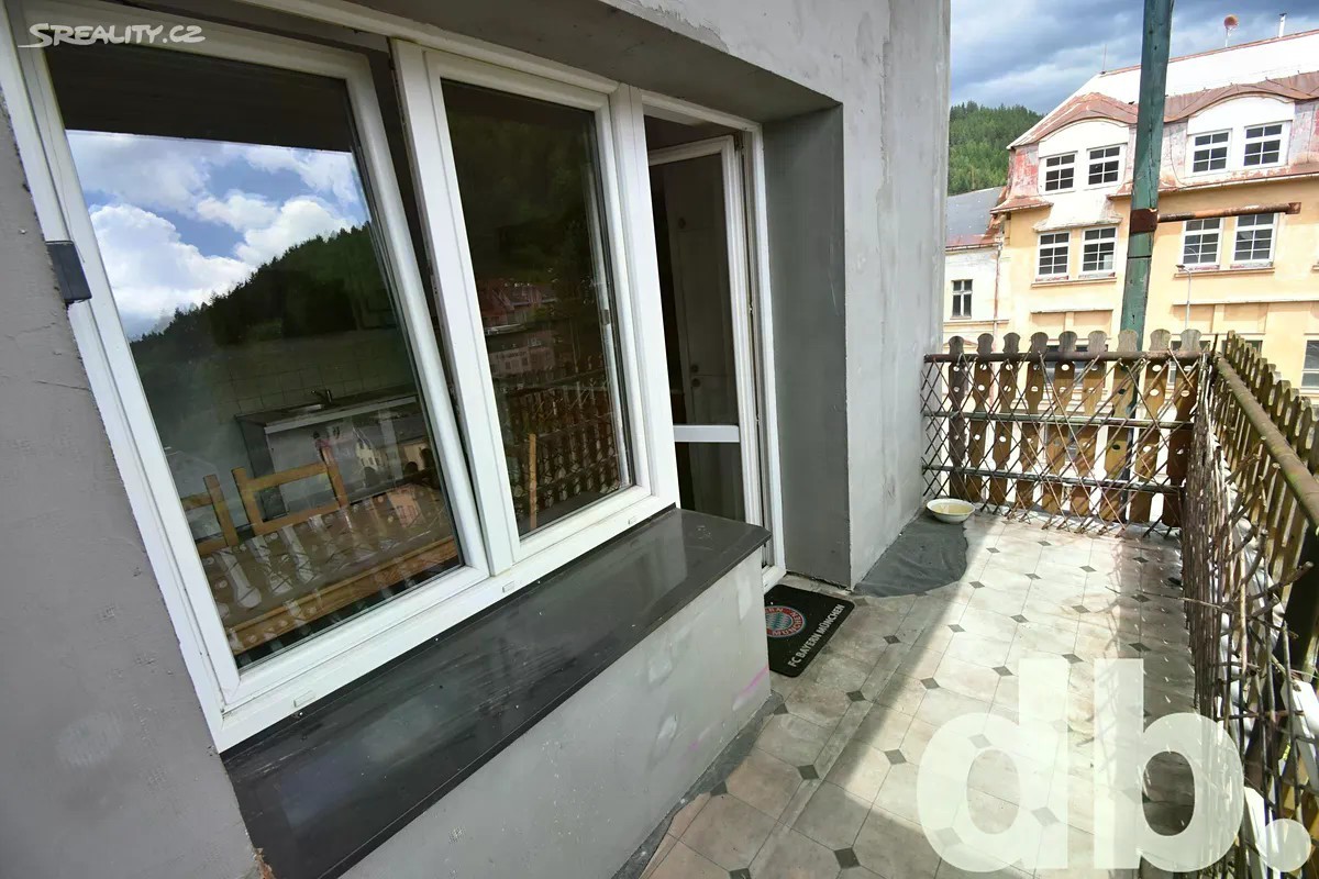 Nabízíme k prodeji prostorný mezonetový byt s dispozicí 3+1 s balkónem o výměře celkové podlahové plochy 120 m2 v dobovém bytovém domě umístěném na náměstí města Kraslice. Byt zaujme svým dispozičním řešením, které nabízí ve spodním podlaží kuchyň s balkónem, dva prostorné pokoje, sociální zázemí bytu a v horním patře pak další samostatnou místnost využitelnou jako ložnice nebo dětský pokoj, kdy k bytu zároveň náleží prostorný sklep o výměře 20 m2. V bytu byla provedena úprava bytového jádra s osazením nového sprchového koutu, dále byly instalovány nové rozvody vody, elektřiny a plynu spolu s instalací nového kombinovaného plynového kotle, který zajišťuje vytápění a ohřev vody. Byt nabízí pohodlné bydlení v centru města s bezproblémovým parkováním přímo za domem, doporučujeme.