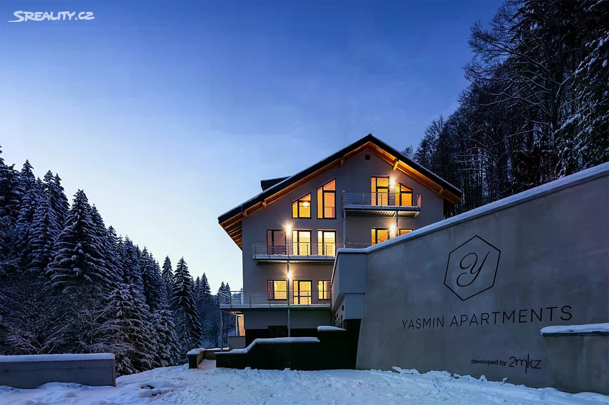 Pohádkový horský rodinný apartmán s vlastní předzahrádkou. Nabízíme na prodej nový plně zařízený apartmán v absolutnem klidu přírody. Velikost 63 m2 typu 2+kk pro 4 osoby s vlastní velkou předzahrádkou (41,5 m2), s parkovacím stáním a sklepem. Apartmán má samostatný vchod a je umístněný na přízemí rezidenčního projektu Yasmin Apartments s pouze 28 jednotkami. Blízkost parkovacího stání nabízí velké pohodlí při přesunech a samostatný vchod zabezpečuje soukromí i klidné spaní. Do apartmánu se vchází přes vstupní předsíň s úložní sestavou skříň. Na spaní je k dispozici manželská postel v ložnici a pohodlná rozkládací pohovka v obývacím pokoji. Nachází se tady i plnohodnotně vybavená kuchyň. V koupelně s podlahovým topením najdete sprchovací kout, umývadlo, WC, dva radiátory a přípravu na pračku. Na uložení věcí slouží samostatný šatník. V apartmánu je nainstalovaný zabezpečovací systém i wifi router. Apartmán se prodává kompletně zařízený, připravený na užívaní. K apartmánu patří oddělená terasa s předzahrádkou (spolu 41,5 m2), vyhrazené parkovací stání, které je hned vedle - žádné daleké nošení věcí. A sklep o velikosti 3,2 m2 se nachází v hlavní budově objektu. V rezidenčním projektu se ještě připravuje relaxační zázemí se saunou. Objekt je udržován domovníkem. Možností krátkodobého pronájmu apartmánu jsou prostřednictvím správce objektu nebo i jiného poskytovatele. Yasmin apartments je umístněný v obci Vítkovice v Krkonošském národním parku přímo uprostřed lesu nad pstruhovým potokem. Kolaudace přeběhla v lednu 2023. V blízkosti (5 minut pěšky) najdete Aldrov Resort, ve kterém je restaurace Aldrovka restaurant, hospoda Maják i wellness s bazénem. Další restaurace v okolí jsou např. Aroma Aldrov nebo Chata Tereza. Ski areál Aldrov je 7 minut chůze, Snowpark Burton Freestyle Area 5 minut chůze. Lyžařský areál Aldrov leží v nadmořské výšce 733 m n.m. a lyžaři si zde mohou vybrat jednu ze 4 sjezdových tratí - 3 se nacházejí na lanové dráze nazvané Prezidentský expres a jedna na vleku Jizerka. Snowpark Freestyle Aréna ve Vítkovicích v Krkonoších patří mezi největší snowparky v ČR. Ski Areal Špindlerův Mlýn - Horní Mísečky se nachází 12 minut cesty autem. Cyklostezky jsou pár metrů od Yasmin apartments. Pro horskou cykloturistiku je v Krkonoších připraveno 27 cyklotras a cyklostezek. Hlavní cyklotrasou je Jizersko - krkonošská magistrála, která spojuje Harrachov a Žacléř. V blízkosti areálu se nachází upravované běžecké tratě a okruhy, které dále navazují například na Krkonošskou magistrálu. Nabídka turistických tras všech obtížností je v Krkonoších neuvěřitelně široká. Z Vítkovic se můžete např. vydat ke ski areálu Vurmovka, pokračovat k osadě Rezek a přes úbočí Vlčího hřebenu až na Dvoračky. Následuje klesání do Kotelních jam, odkud se můžete vydat po Krakonošově cestě dál na Horní Mísečky. Cena: 6.990.000 CZK