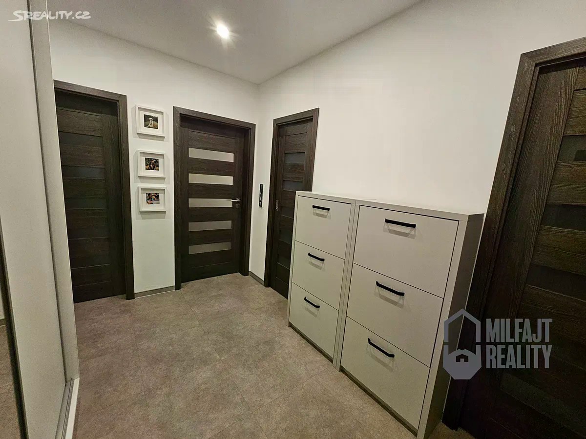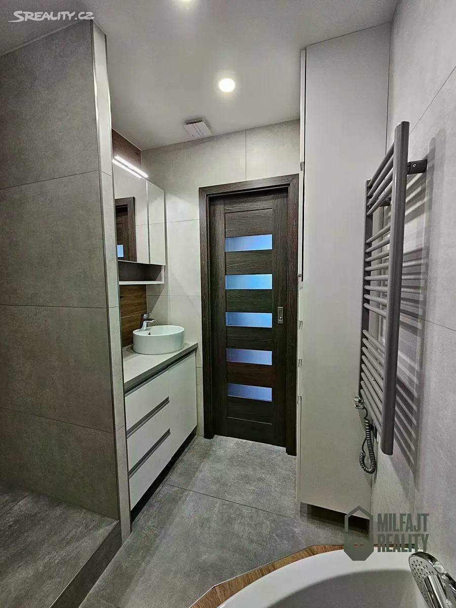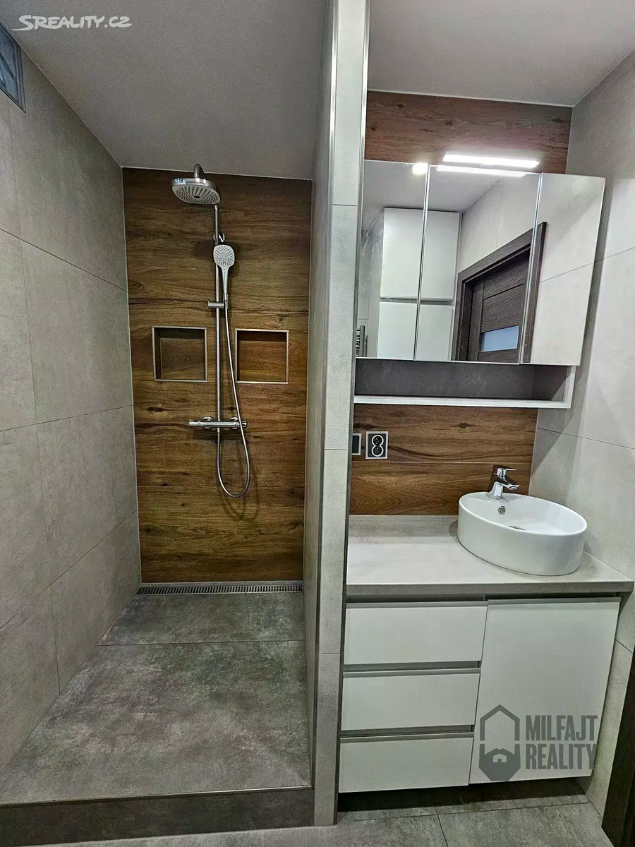Nabízíme vám dlouhodobý pronájem krásného, prostorného bytu po kompletní a kvalitní rekonstrukci s důrazem na moderní nadčasový styl. Byt se nachází v zatepleném panelovém domě v liberecké části Františkov. V dochozí vzdálenosti zde najdete mateřskou i základní školu, supermarket, poštu či různá sportoviště. Centrum města je vzdáleno cca 20 minut pěšky, případně lze využít MHDt. Majitelé aut ocení možnosti parkování přímo u domu. Samotný byt se nachází v 6. (posledním) patře a nabídne velmi pěkný výhled na okolí a absolutní klid. Dispozičně byt řešený jako 3+1 nabídne celkem 87 m2, lodžii, menší spíž a zděnou sklepní kóji. Byt je plně vybavený a připravený k okamžitému nastěhování. Kuchyň je velmi moderně zařízena, disponuje velkou linkou s vestavěnými spotřebiči, která poskytuje dostatek prostoru i pro náročnější vaření. Praktickým a designovým prvkem je kuchyňský ostrůvek se spoustou odkládacího prostoru, umístěný naproti lince. Jídelní prostor je umístěn v místnosti propojené s obývacím pokojem, kde je na stůl se 4-mi židlemi dostatek prostoru, aniž by byl omezen prostor pro velkou rohovou pohovku. Ložnice o rozměrech přes 18 m2 nabídne velkorysý úložný prostor ve vestavěné skříni, také prostornou lodžii s dřevěnou podlahou. Dále je zde dětský pokoj, který s šikovným rozvržením nábytku pojme bez problému 2 děti. Koupelna je řešena velmi komfortně - najdete zde jak vanu, tak samostatný zděný walk-in sprchový kout. Toaleta je řešena samostatně, a díky nadstandardním rozměrům je zde umístěna jak pračka, tak sušička. V koupelně i na WC jsou umístěné luxfery, plnící funkci designu a zároveň poskytují přirozené denní světlo. Prostorná předsíň s věšáky a zabudovanou šatní skříní nabízí dostatek úložného místa, a navíc zde najdete praktické řešení úložného prostoru na obuv - hned dva velké botníky. Byt je světlý, působí vzdušně, útulně a velmi reprezentativně. Zařízení i provedení odpovídá vyššímu standardu bydlení. Nabízí komfortní zázemí pro jednotlivce s velkými prostorovými nároky, pro pár, ale i pro rodinu s dětmi. Jedná se o ideální volbu pro ty, kteří hledají nadstandard, moderní vybavení a pohodlné bydlení. Většina vybavení, které je vidět na fotografiích, je součástí pronájmu. Výjimkou jsou pouze jídelní stůl se židlemi, obě televize, komody, křeslo v ložnici, vybavení dětského pokoje - toto bude konkrétně specifikováno na prohlídce. K nastěhování je byt od 15.1.2026 (po dohodě možný i dřívější termín) Cena nájemného je 22.500 Kč + služby cca 4.000 Kč + elektřina cca 1.500 Kč. Při nastěhování uhradí nájemce nájemné a služby na první měsíc, vratnou jistotu 40.000 Kč a provizi RK 18.000 Kč. Neváhejte mě kontaktovat v případě zájmu o více informací a sjednání termínu prohlídky. Telefonicky jsem k dispozici v pracovní dny 8:00 - 18:00 a mimo tento čas poprosím SMS nebo email. Budu se těšit na viděnou při prohlídkách.