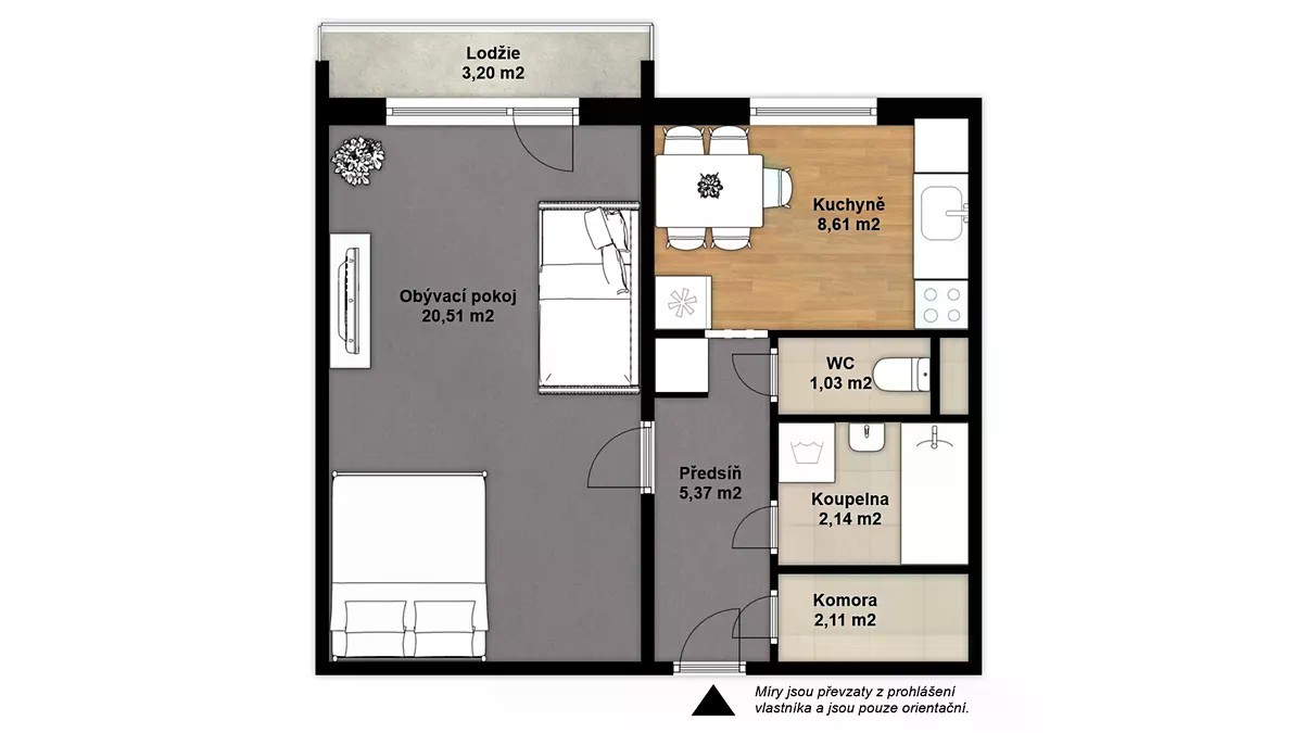 Hledáte útulný byt v Hradci Králové, v klidné a žádané lokalitě a přitom kousek od centra města? Pak pro Vás mám skvělou nabídku - byt 1+1 v ulici Pod Zámečkem 1368, "na dohled" od OC Futurum. Byt o celkové ploše 44 m² se nachází v 7. nadzemním podlaží (posledním) panelového domu s výtahem. Samotná bytová jednotka má 39,76 m², dále k ní náleží lodžie (3,2 m²) a sklep (1,44 m²). Dispozice bytu: kuchyně, prostorný obývací pokoj, komora, koupelna s vanou, samostatné WC, lodžie přístupná z pokoje. Byt je v původním, udržovaném stavu s umakartovým jádrem, což poskytuje skvělou příležitost pro rekonstrukci dle vlastních představ. V prosinci 2025 byla provedena výměna oken v bytě i na lodžii, která byla zároveň vyzděna. Bytový dům prošel v letech 2008-2025 systematickou revitalizací, která zahrnovala: výměnu výtahů, výměnu vchodových dveří, zateplení štítu, výměnu svodů dešťové vody, rekonstrukci střechy, instalaci videotelefonů, výměnu rozvodů zdravotechnické instalace, výměna oken ve společných prostorách (sklepy, lodžie), oprava panelových spárů, výměna elektroinstalace ve společných částech domu. Lokalita Pod Zámečkem patří mezi vyhledávané části Hradce Králové - nabízí klidné bydlení, dostatek zeleně a zároveň perfektní dostupnost služeb i dopravy. OC Futurum je doslova za rohem, stejně jako zastávky MHD, zdravotní středisko a další občanská vybavenost. Byt je v současné době pronajatý, což představuje zajímavou investiční příležitost s možností pokračování nájemního vztahu, nebo případného využití pro vlastní bydlení. Doporučuji osobní prohlídku - rád Vás nemovitostí osobně provedu a pomohu i se zajištěním optimálního financování. Těším se na setkání! Prohlídkový den: *********d 15:00 do 17:00 Veškeré údaje uvedené v tomto inzerátu, včetně rozměrů bytu, jsou převzaty z veřejně dostupných listin (prohlášení vlastníka, technická dokumentace, aj.) a mají pouze orientační charakter. V případě více zájemců bude nemovitost prodána nejlepší nabídce. Majitel si vyhrazuje právo vybrat kupujícího podle jím zvolených kritérií. Tento inzerát má čistě informativní charakter a není nabídkou ve smyslu § 1731 a § 1732 občanského zákoníku, ani se nejedná o veřejný příslib dle § 1733 občanského zákoníku.
