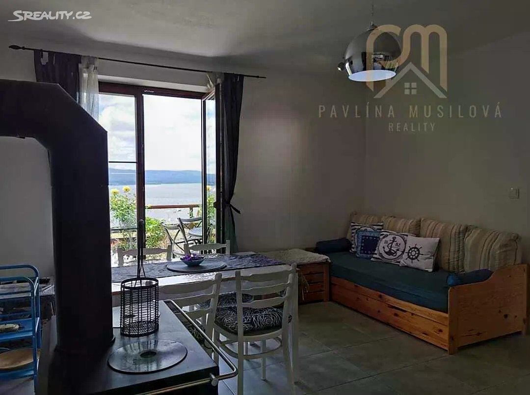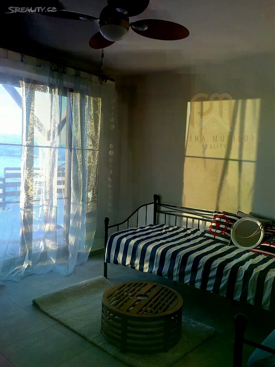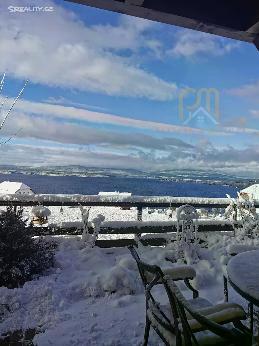Možnost vlastnit kouzelné bydlení v nádherné lokalitě nedaleko městyse Frymburk v Kovářově. Tento útulný byt o dispozici 2+kk a velikosti 59,5 m² je ideálním místem pro všechny, kteří hledají spojení moderního bydlení či rekreace s přírodou. Součástí bytu je také terasa, na kterou se dostanete přímo z obývacího prostoru, a která nabízí panoramatické výhledy na malebné Lipno. Představte si, jak si tu můžete vychutnávat slunečné odpoledne s rodinou či přáteli. Na terase je také k dispozici prostor, kde si můžete postavit gril a užívat si letní večery s výhledem na vodní hladinu. Do obytného prostoru se vchází z chodby o rozloze 2,8 m2, která je společná s jedním sousedním bytem. Následuje předsíň 3,5 m2 a před sebou máte vstup do obývacího pokoje s kuchyní o rozloze 20,3m2, z které vedou dvoukřídlé francouzské dveře na prostornou terasu. Stejný vstup na terasu je také z ložnice o rozloze 15,1m2, k tomu je vedle ložnice 2,2m2 komora, kde je umístěna šatna. Terasa s výhledem na západ slunce nad Lipnem je skutečně jedinečnou dominantou bytu. Topení je podlahové ovládané na dálku přes GSM bránu. Můžete si ho zapnout telefonem, než vyrazíte na víkend na Lipno. Ohřev vody zajišťuje elektrický bojler. Byt je zkolaudovaný v r. 2018 a vše je tedy téměř nové. Předsíň, koupelna, kuchyně a propojený obývací prostor s krbovými kamny, jídelním koutem a vstupem na terasu není vše. K bytu patří sklep 4,3 m2 a vlastní parkovací stání, pozemek o výměře 14,7m2 vedené jako předzahrádka a také podíl na společném pozemku o výměře 261 m2, druh pozemku zastavěná plocha a nádvoří a podíl na společných částech nemovité věci. Součástí prodeje a ceny je i věcné břemeno užívání privátní pláže s hřištěm na plážový volejbal pouze pro zdejší majitele. Z pláže je výhled na české moře v jeho nejširší části a milovníci vody zde dostanou to nejlepší, co se v Čechách v oblasti vodních radovánek vyskytuje. Plně vybavená kuchyň s varnou deskou, troubou, odsavačem par, lednicí. Jíst můžete i na terase a pohodlně tam z kuchyně vše servírovat. Terasa je slunná po celé odpoledne a večer je odtud překrásný výhled na západ slunce a vodní hladinu. Jedná se o bydlení naprosto vyhovující jako rekreační i jako trvalé. Místnosti plocha v m 2: předsíň 3,5 m2 Koupelna + WC 5,2 m2 z toho sprchový kout má 1m2 Pokoj a kuchyňský kout 20,3 Sprchový kout má 1m2 komora 2,2 m2 ložnice 15,1 m2 Terasa 13,2 m2 Celkem 59,5m 2 k tomu chodba společná se sousedem 2,8 m2 a sklep u vašeho parkoviště o výměře 4,3 m2 Lipensko nabízí celoroční rekreační vyžití. V zimě je navíc možnost lyžování na rakouských sjezdovkách. Dojezdová vzdálenost 40 minut do skiareálu Hochficht a 2 hod 1 minut do Hinterstoderu. Blízký Frymburk zase nabídne plnou občanskou vybavenost a welness a aquvapark. Pokud vlastníte či si plánujete pořídit loď, možnost kotvení je též u vody pod apartmánem v privátní marině cca 350 m pěší chůze vzdálené. Neváhejte a domluvte si prohlídku v této atraktivní nemovitosti na mimořádném místě.