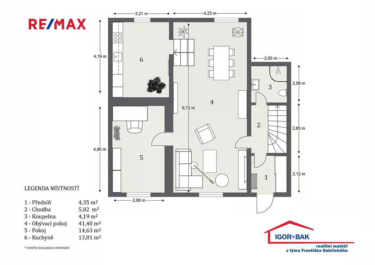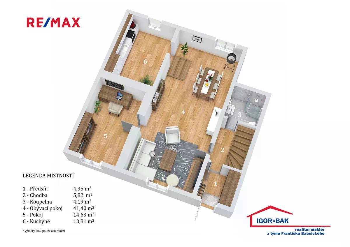 Nabízíme k prodeji prostorný dvoupodlažní mezonetový byt o dispozici 6+kk s užitnou plochou 171,74 m², soukromou zahradou 283 m², terasou a sklepem v obci Pozdeň. Jednotka je součástí kompletně nově zrekonstruovaného objektu. Byt je zcela nový, dosud neobývaný a připravený k okamžitému nastěhování. Parkování je možné před domem nebo na vyhrazeném pozemku se dvěma parkovacími místy. Byt díky svému provedení nabízí komfortní a plnohodnotné rodinné bydlení s dostatkem prostoru pro každodenní využití. 1. nadzemní podlaží V první úrovni bytu se nachází prostorný obývací pokoj s jídelnou (41,40 m²), který tvoří hlavní obytnou část jednotky. Na obývací prostor navazuje kuchyň (13,81 m²) s přímým vstupem na terasou o velikosti 11,89 m², jež nabízí příjemné propojení interiéru se soukromou zahradou. Dále se zde nachází ložnice (14,63 m²), koupelna (4,19 m²) s přípravou na sprchový kout a pračku, chodba (5,82 m²) a zádveří (4,35 m²). 2. nadzemní podlaží - mezonet V horní části mezonetu se nacházejí čtyři pokoje o výměrách 27,00 m², 16,22 m², 11,73 m² a 8,01 m². Patro dále nabízí koupelnu (6,95 m²) s přípravou na vanu, prostornou chodbu (15,33 m²) a schodiště (2,30 m²). Celé podlaží působí vzdušně a poskytuje dostatek místa pro vícečlennou domácnost, dětské pokoje, pracovny či hosty. Sklep a zahrada K bytové jednotce náleží sklep v 1. podzemním podlaží o velikosti 17,37 m², vhodný pro uskladnění sezónních věcí, sportovního vybavení či nářadí. Součástí je také zahrada o velikosti 283 m², která poskytuje soukromé venkovní zázemí pro relaxaci, posezení i rodinné aktivity. Technické vybavení a standardy Byt je vytápěn moderním tepelným čerpadlem vzduch/voda, které je určeno výhradně pro tuto jednotku. Součástí je celoplošné podlahové vytápění a nové rozvody elektřiny, vody, kanalizace i datových sítí. Instalována jsou také protipožární čidla. Jednotka je zateplená a nabízí nízké provozní náklady ve výši cca 1 500-2 000 Kč měsíčně. Koupelny nejsou dokončeny - nový majitel si tak může zvolit vlastní styl a design. Majitel nabízí možnost jejich dokončení prostřednictvím své stavební firmy za zvýhodněnou cenu. Lokalita Obec Pozdeň disponuje základní občanskou vybaveností v docházkové vzdálenosti - mateřská škola, obchod, pošta, obecní úřad. Autobusová zastávka je přibližně 200 metrů od domu. Slaný je vzdálen 9 km, Kladno 16 km a Praha 30-35 minut jízdy. Nájezd na D7 je dostupný za 10-12 minut. Okolí nabízí krásnou přírodu, lesy, cyklostezky a několik přírodních lokalit ke koupání. Nejbližší vodní plocha je cca 500 metrů od domu, další oblíbené lomy a jezírka v okruhu 3-4 km. Shrnutí Tento mezonetový byt představuje atraktivní příležitost pro zájemce o moderní, prostorné a úsporné bydlení v klidné obci s výbornou dostupností do města.