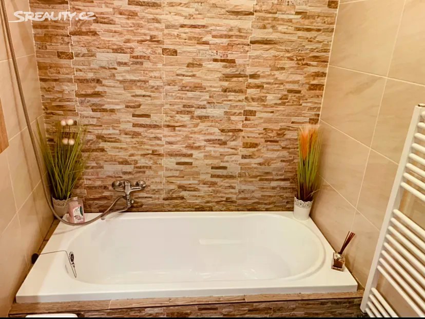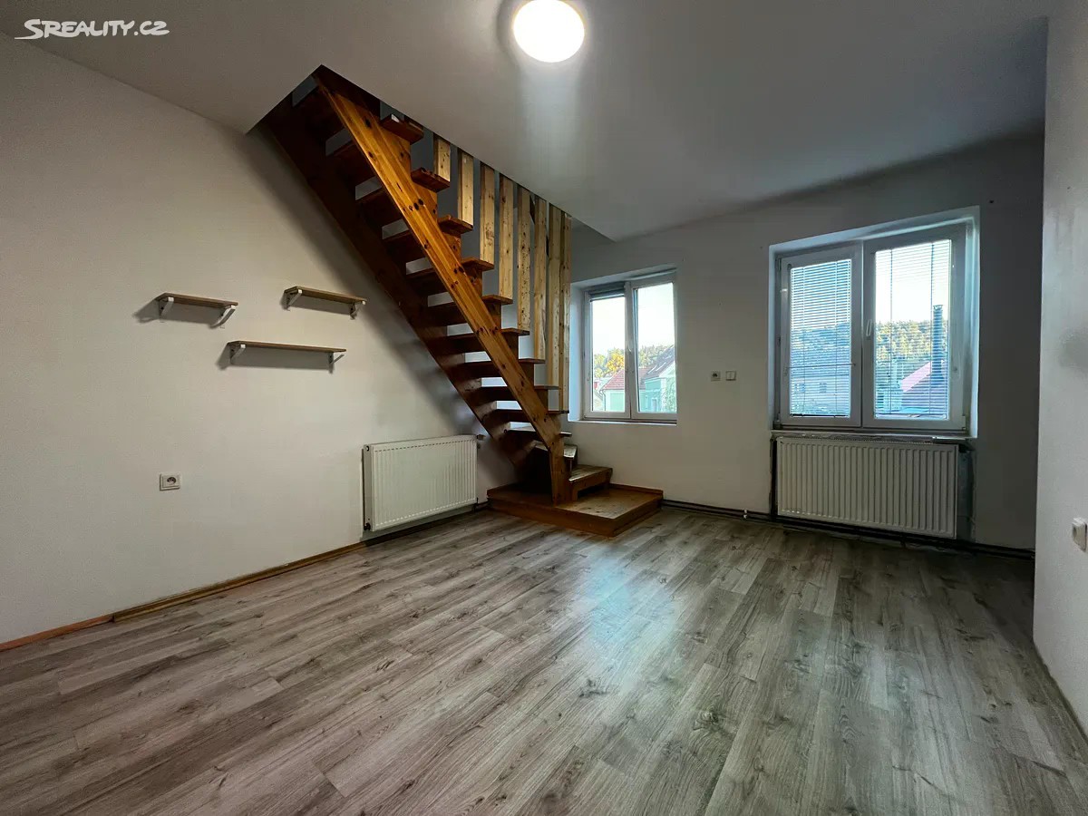 Nabízíme k pronájmu krásný byt 3+1 o velikosti 50 m2. Byt se nachází v 2.NP dvoupatrového cihlového domu. Je velice světlý a příjemný. Byt má menší předsíň s vestavěným úložným prostorem. V obývací části jsou okna do zahrady, je zde nový kuchyňský kout vybavený plynovým sporákem. Koupelna prošla celkovou zdařilou rekonstrukcí, nachází se zde vana obložená imitací kamene, wc a umyvadlo. Z obývací části vede schodiště do vrchního patra bytu, kde jsou dva neprůchozí pokoje a malá chodbička s oknem do zahrady. Každý z pokojů má střešní okno zajišťující celkové prosvětlení prostoru. Vytápění a ohřev vody je řešen plynovým kotlem. Byt se pronajímá bez vybavení. Parkování je bezplatné v celé ulici. K bytu náleží uzamykatelný skladový prostor o velikosti 6m2, který je umístěn na společném travnatém dvoře. Velkou výhodou bytu je společná zahrada o rozloze 385m2 s velkou pergolou a posezením. Poplatky na dvě osoby včetně el. a plynu jsou 6 000,- V okolí můžete navštívit například Vinařickou horku, Libušínské jezírko a nebo se můžete projít do lesa, který máte dvě ulice od domova. V obci se nachází mateřská a základní škola, velké dětské hřiště, zdravotnické zařízení, potraviny a pošta. Vše co nenajdete v obci, je v centru Kladna. Dojezdová vzdálenost je 6 km a je zde výborné spojení MHD. Nájezd na dálnici směr Praha je vzdálen pouhých 7 km od domova. Přijďte se podívat na prohlídku.