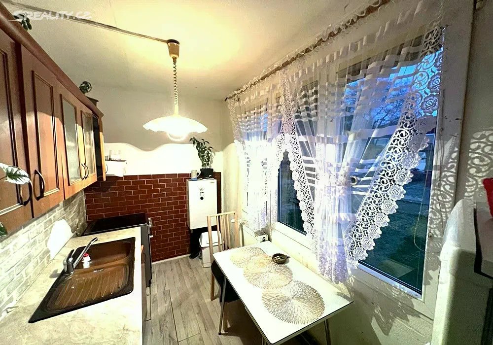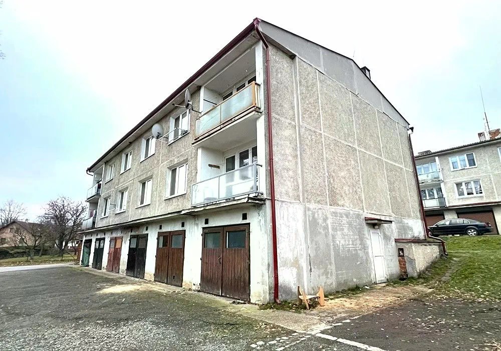 Byt o dispozici 3+1 (3x místnost + kuchyně) s lodžií, příslušenstvím, provozním vybavením a vlastní garáží, situovaný v 1.NP (zvýšené přízemí) bytového domu v klidné, zastavěné části obce. Byt s původním provozním vybavením o celkové výměře podlahové plochy s lodžií 68,5 m2 s externím příslušenstvím 82,80 m2, zbudovaný v bytovém domu s celkem šesti bytovými jednotkami, bez výtahu s vlastními skladovacími prostorami (sklep 1,7 m2) a vlastní vestavěnou garáží (nyní sklad 16,7 m2). K bytu náleží, možnost užívání všech společných prostor v bytovém domu (kolárna, prádelna, kotelna) a užívání obecního prostranství navazujícího na bytový dům. V letech 201517 byla provedena výměna oken za plastová s izolačními skly, rekonstrukce koupelny, částečná výměna elektroinstalace a instalace krbových kamen, jinak je byt v původním technickém stavu. Byt je připraven k okamžitému předání a užívání ihned po převodu nemovitosti, vhodný k zahájení rekonstrukce prostor dle představ nového vlastníka, bez jakéhokoli omezení vlastnických práv. Orientace oken v bytu na jihovýchod a severozápad. Bytový dům je dvoupodlažní objekt panelové konstrukce, navazující na okolní zástavbu bytových a rodinných vesnických domů s provedením renovace střešní části objektu, situován v obytné zástavbě klidné obce Drahotín se základní vybaveností, cca 4 km od střediskové obce Poběžovice se základní občanskou vybaveností, dostupností služeb a dopravní infrastrukturou. Třída ENB: „G“ průkaz nezpracován. Nabízený byt s příslušenstvím je využitelný k trvalému nebo nájemnímu bydlení v klidné obci v přírodní pohraniční lokalitě navazující na CHKO Český les. Dispozice: vstup, předsíň, obytná místnost s lodžií, kuchyně, 2x ložnice, koupelna (vana, umyvadlo), WC. Vybavení bytu: kuchyňská linka, sporák, koupelnové vybavení, zařizovací předměty, krbová kamna, osvětlovací tělesa, rozvody TV / tel. / internet. Vytápění: vlastní etážové elektrické (vlastní kotel) + lokální palivové (1x krbová kana). Celková užitná plocha bytu s příslušenstvím: 82,80 m2 byt s lodžií 68,50 m2 + sklep 1,7 m2 + garáž 16,7 m2.