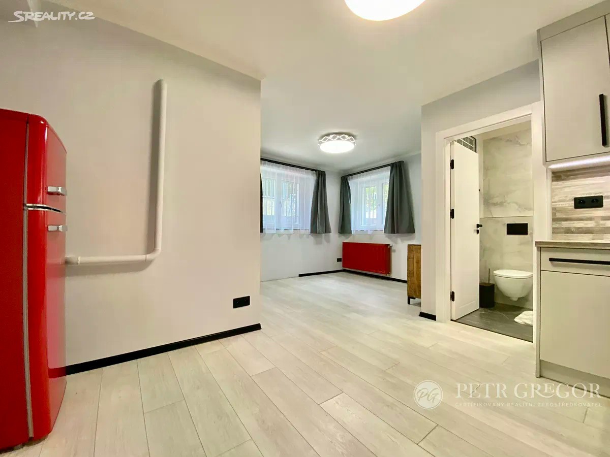 Nabízím k pronájmu nově zrekonstruovaný, kompletně vybavený byt 1+kk o velikosti 30 m², který se nachází v suterénu bytového domu na adrese Studentská 523/45, Poděbrady II. Vybavení: Byt se pronajímá zařízený. Součástí vybavení jsou: 1x rozkládací pohovka s roštem, 1x TV, 1x komoda, 1x vestavěná šatní skříň, 3x židle, 1x jídelní stůl, kompletně vybavená kuchyňská linka spotřebiči (indukční varná deska, digestoř, elektrická trouba, mikrovlnná trouba) a designová kombinovaná lednice s mrazákem. Technické parametry: • Vytápění: Elektrokotel • Teplá voda: Elektrický bojler Cena a poplatky: • Nájemné: 14.300 Kč/měsíc. • Poplatky (paušál): 4.000 Kč/měsíc, zahrnují: elektřina (na teplo a teplou vodu) + 1.200 Kč, vodné a stočné, internet, svoz odpadu. Poplatky jsou nezúčtovatelné. • Jistina (kauce): 20.000 Kč • odměna zprostředkovateli 15.000 Kč + DPH 21% Lokalita: Byt se nachází v atraktivní lokalitě, kousek od lázeňské kolonády, autobusového a vlakového nádraží a centra Poděbrad. Výborná dostupnost služeb, obchodů i volnočasových aktivit. Byt je ideální pro jednu osobu, hledající moderní a komfortní bydlení v klidné, ale zároveň dobře dostupné lokalitě lázeňského města. Pro více informací nebo sjednání prohlídky mě neváhejte kontaktovat.