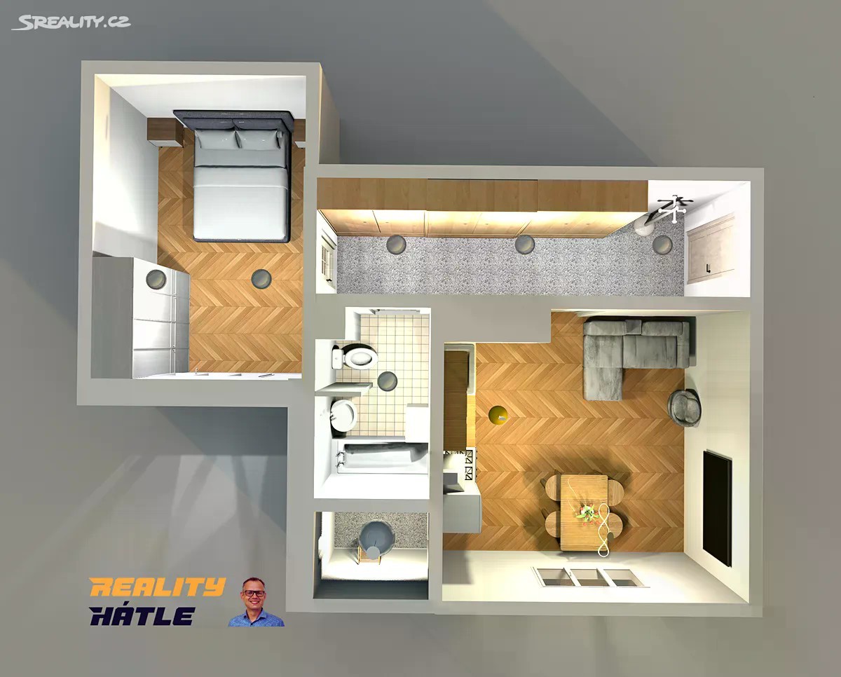 Nabízím k prodeji bytovou jednotku o dispozici 2+kk, která se nachází na adrese Bratří Čapků 874/1. Jednotka je určena ke kompletní rekonstrukci a je umístěna ve zvýšeném přízemí cihlového domu postaveného v roce 1945. Pro lepší představu o možném dispozičním řešení přikládáme 3D náhledy. Stropy v bytě mají výšku 3,2 m, což umožňuje i zajímavé architektonické možnosti při rekonstrukci. Celková výměra bytu včetně sklepní kóje činí 59,35 m², přičemž byla ověřena digitálním měřením. Rozměry jednotlivých místností jsou následující: vstupní chodba 11,6 m², obývací pokoj s kuchyní 19,95 m², spíž 2,2 m², koupelna 4,4 m², ložnice 15,2 m² a sklepní kóje 6 m². Fotografie interiéru spolu s předprohlídkovým videem z bytu zašlu na vyžádání. V rámci realitního servisu mohu zajistit také schůzku s finančním poradcem, který pro vás vybere nejvhodnější variantu financování. Zprostředkování prodeje nemovitosti zajišťuje nezávislý realitní makléř s praxí v oboru od roku 2011, absolvent pokročilého vzdělávacího programu Master of Real Estate realizovaného na Vysoké škole finanční a správní (číslo certifikátu 0042).