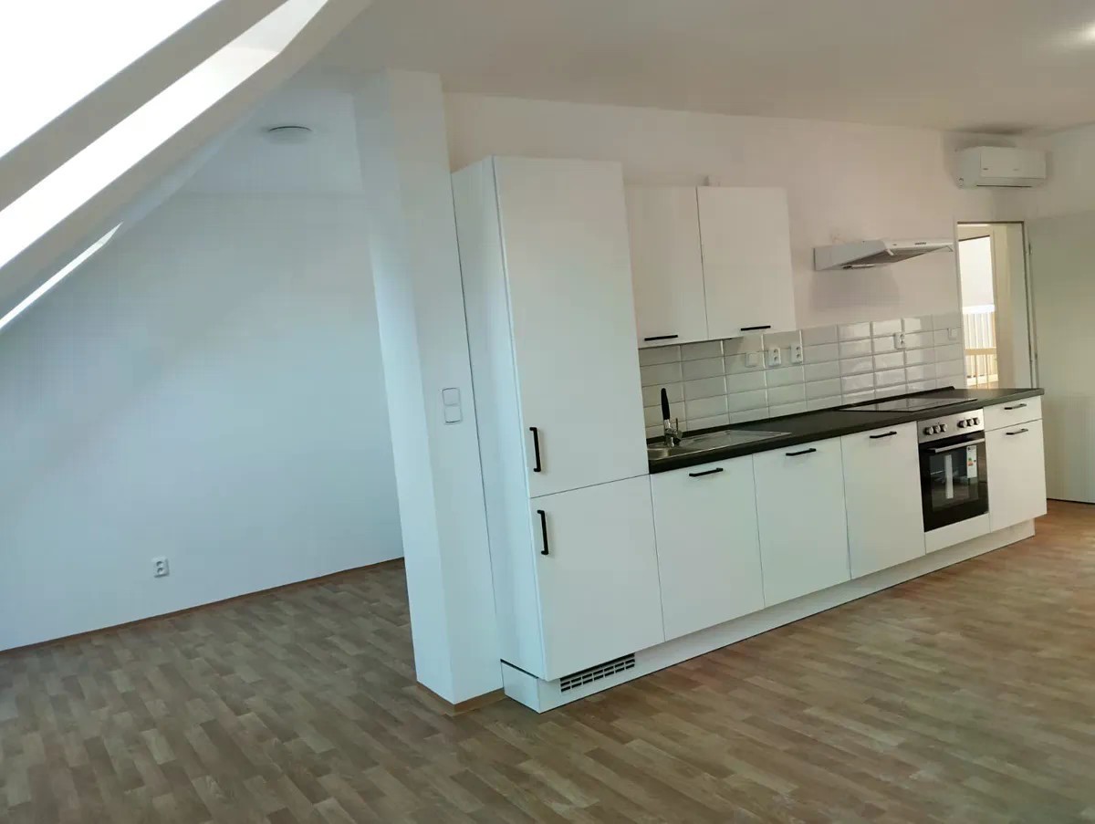Pronajmeme byt 3+kk o velikosti cca 95m2, dispozičně: velký obývaci pokoj s kuchyňským koutem, 2 samostatné ložnice (jedna umístěna v mezonetu), sociální zařízeni se sprchou a WC. Byt byl nově vybudován v roce 2024. Byt je vybaven kompletně zařízenou koupelnou, WC; v obou ložnicích jsou vestavné skříně, v podkrovní ložnící postel s matracemi, byt je vybaven klimatizací. Byt je umístěn v domě na náměstí Svobody, kde je celkem 8 bytu a k dispozici je velká zahrada. Měšíční nájem: 13.000 Kč + 500 Kč záloha na služby