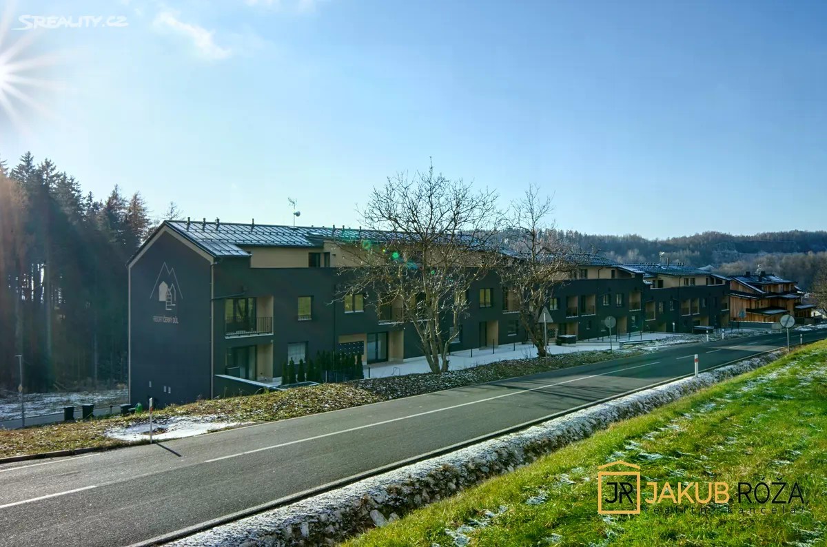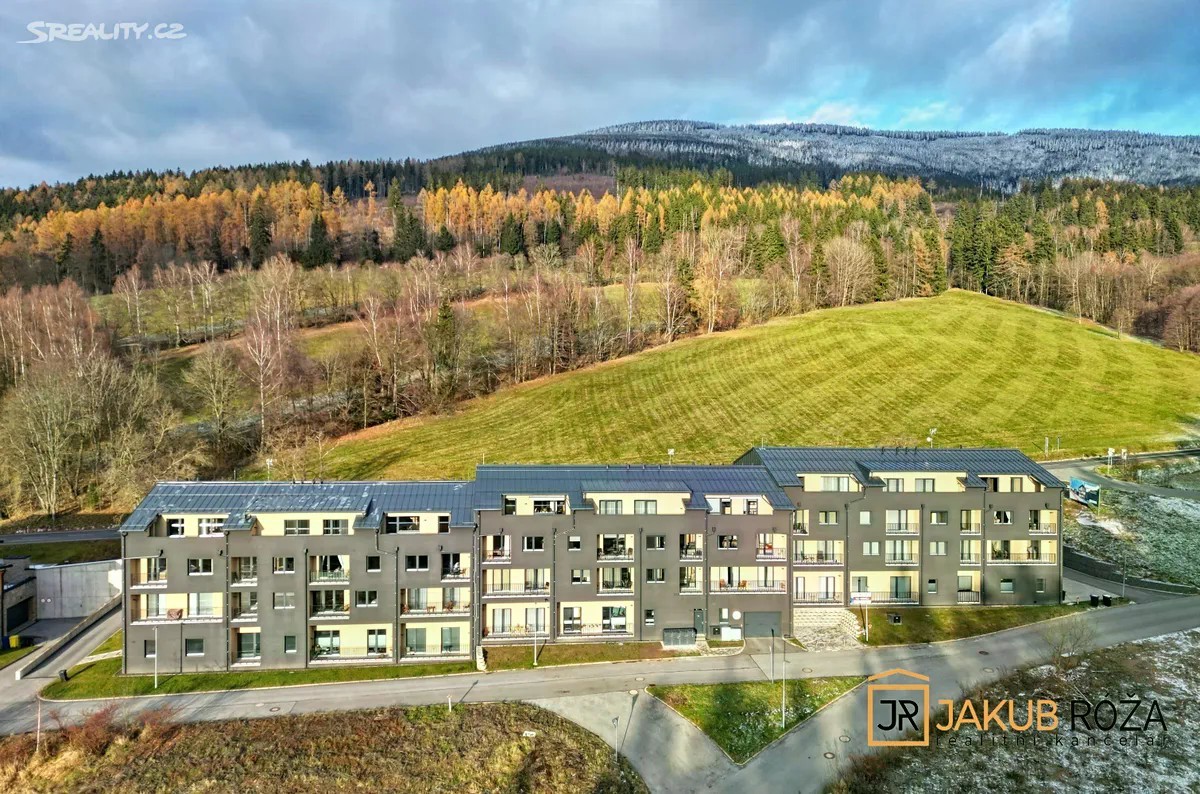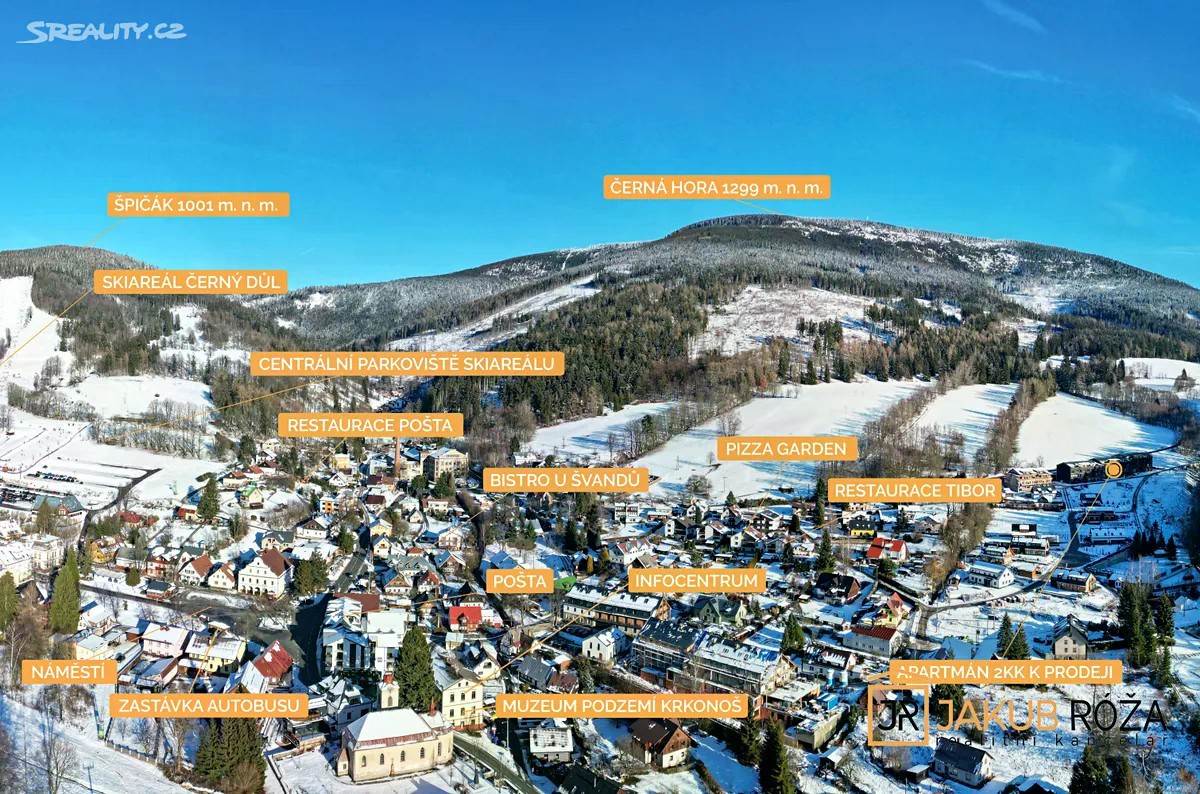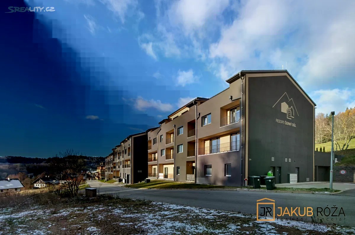 Exkluzivně Vám nabízím PRODEJ krásného a útulného apartmánu v nedávno postaveném apartmánovém domě v Černém Dole, uprostřed největšího Českého lyžařského areálu SkiResort ČERNÁ HORA - PEC. Apartmán o velikosti užitné plochy bytu 43 m2 + lodžie o výměře 3,3 m2 a dispozici 2KK je umístěný ve třetím nadzemním podlaží čtyřpodlažního objektu s výtahem. Součástí apartmánu je garážové stání v podzemní garáži a uzamykatelná kóje. Apartmán je kompletně vybaven moderním nábytkem a připraven k užívání. Dispozice je řešena velice prakticky. Na vstupní chodbu navazuje koupelna se sprchovým koutem a toaletou, prostorný jižně orientovaný obývací pokoj s kuchyňským koutem a vstupem na lodžii, a ložnice. Dokončení a kolaudace novostavby apartmánového domu proběhla v roce 2024, nabízený apartmán je tedy velice zachovalý. Dům se nachází v ochranném pásmu KRNAP, v nadmořské výšce 620 m.n.m., na jižním slunečném svahu Černé Hory. Černý důl je ideální místo pro rodinnou rekreaci. Sjezdovky jsou obsluhovány moderní 4 sedačkou, starší 3 sedačkou, pěti vleky a rozsáhlým dětským parkem s krátkými vleky a dopravním pásem. Skiareál Černý Důl je od domu vzdálen 900 m, náměstí Černého Dolu 600 m, zastávka skibusu 150 m, stezka korunami stromů jen 5 min jízdy automobilem. V blízkém okolí s možností dopravy skibusem jsou také Skiresorty Černá Hora, Pec pod Sněžkou, Pomezní boudy a Velká Úpa (Portášovy Boudy), tvořící jeden skiareál s jedním skipasem a 50 km sjezdovek. Poloha je výhodná i pro milovníky běžeckého lyžování, skialpinismu, pěší turistiky a cyklistiky. Apartmán je vhodný jak pro trvalé bydlení, vlastní rekreaci, tak za účelem investice pro komerční celoroční pronajímání. Při koupi apartmánu plátcem je možný odpočet DPH. Energetická náročnost budovy (PENB) je Třída B - Velmi úsporná. Byt je možné financovat hypotečním úvěrem. Majitel si vyhrazuje právo prodat nemovitost nejvýhodnější nabídce.