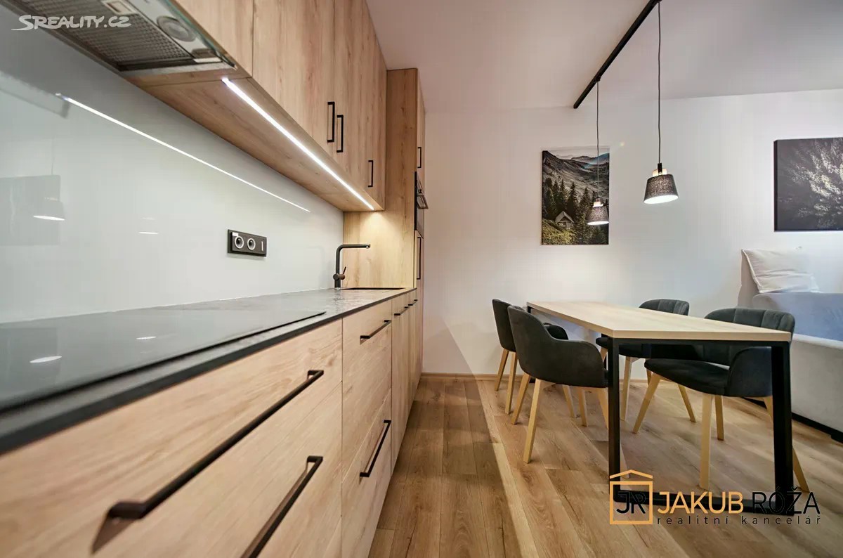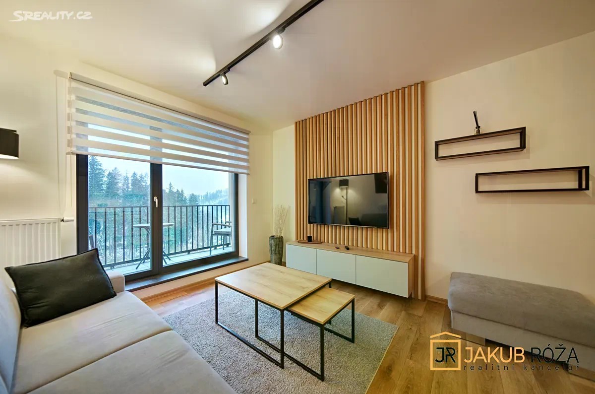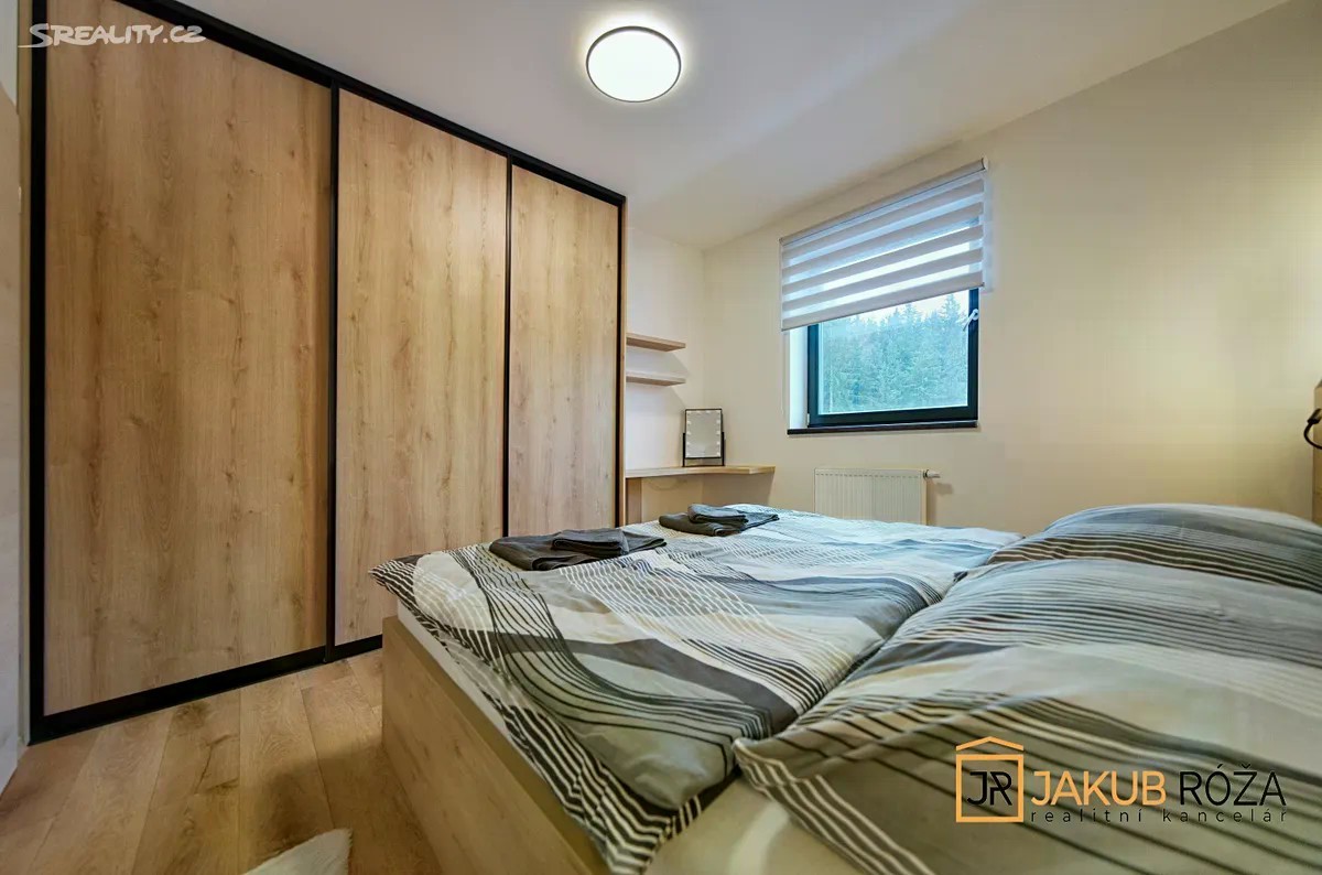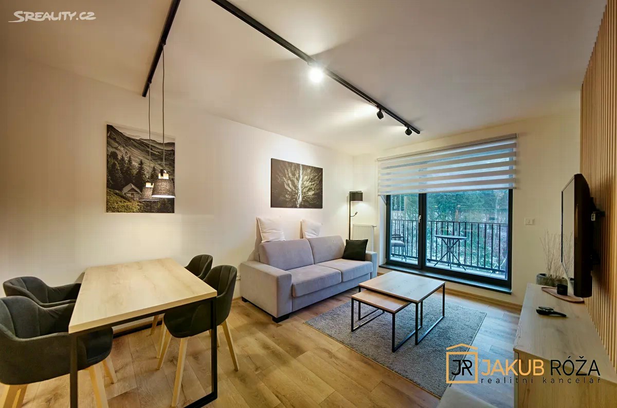 Exkluzivně Vám nabízím PRODEJ krásného a útulného apartmánu v nedávno postaveném apartmánovém domě v Černém Dole, uprostřed největšího Českého lyžařského areálu SkiResort ČERNÁ HORA - PEC. Apartmán o velikosti užitné plochy bytu 43 m2 + lodžie o výměře 3,3 m2 a dispozici 2KK je umístěný ve třetím nadzemním podlaží čtyřpodlažního objektu s výtahem. Součástí apartmánu je garážové stání v podzemní garáži a uzamykatelná kóje. Apartmán je kompletně vybaven moderním nábytkem a připraven k užívání. Dispozice je řešena velice prakticky. Na vstupní chodbu navazuje koupelna se sprchovým koutem a toaletou, prostorný jižně orientovaný obývací pokoj s kuchyňským koutem a vstupem na lodžii, a ložnice. Dokončení a kolaudace novostavby apartmánového domu proběhla v roce 2024, nabízený apartmán je tedy velice zachovalý. Dům se nachází v ochranném pásmu KRNAP, v nadmořské výšce 620 m.n.m., na jižním slunečném svahu Černé Hory. Černý důl je ideální místo pro rodinnou rekreaci. Sjezdovky jsou obsluhovány moderní 4 sedačkou, starší 3 sedačkou, pěti vleky a rozsáhlým dětským parkem s krátkými vleky a dopravním pásem. Skiareál Černý Důl je od domu vzdálen 900 m, náměstí Černého Dolu 600 m, zastávka skibusu 150 m, stezka korunami stromů jen 5 min jízdy automobilem. V blízkém okolí s možností dopravy skibusem jsou také Skiresorty Černá Hora, Pec pod Sněžkou, Pomezní boudy a Velká Úpa (Portášovy Boudy), tvořící jeden skiareál s jedním skipasem a 50 km sjezdovek. Poloha je výhodná i pro milovníky běžeckého lyžování, skialpinismu, pěší turistiky a cyklistiky. Apartmán je vhodný jak pro trvalé bydlení, vlastní rekreaci, tak za účelem investice pro komerční celoroční pronajímání. Při koupi apartmánu plátcem je možný odpočet DPH. Energetická náročnost budovy (PENB) je Třída B - Velmi úsporná. Byt je možné financovat hypotečním úvěrem. Majitel si vyhrazuje právo prodat nemovitost nejvýhodnější nabídce.