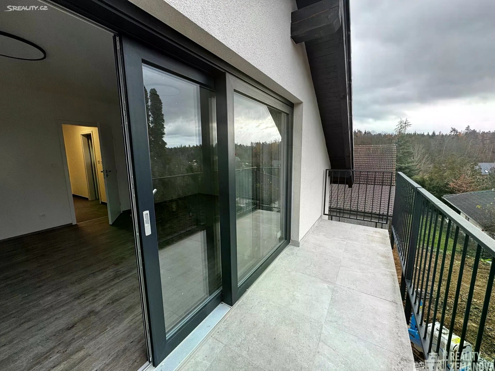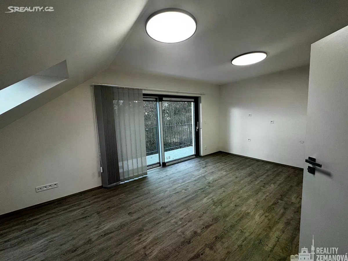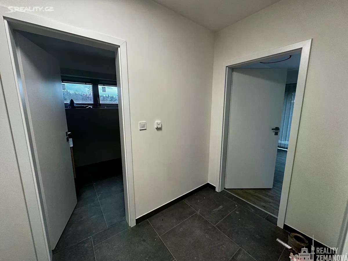 Nabízíme k dlouhodobému pronájmu zcela nový, dosud neužívaný byt 2+kk s terasou, v novostavbě na rozhraní ulic Houbová a Hlavní. MHD 5 minut chůze. Volný od 1. 2. 2026. Fotografie aktuální k 7. 12. 2025. Dispozice a vybavení: byt č. 3, 1 patro/podkrovní, výměra 56,06 m2 + 6,6 m2 terasa. předsíň 5,38 m2, obývací pokoj s kuchyňským koutem 22,38 m2 (zelená linka bude osazena, černé spotřebiče: myčka, lednice s mrazákem, trouba, mikrovlnka, digestoř) a vstupem na terasu 6,6 m2, ložnice 21,14 m2, koupelna se sprchovým koutem a přípojkou na pračku 5,13 m2, samostatné WC 2,03 m2 podlahové vytápění na oknech žaluzie Parkování a zázemí: možnost 1-2 parkovacích stání na vlastním pozemku - 1.500 Kč/měs./místo prostor pro uložení kol atp. v "domku" na zahradě pro nájemníky Lokalita: Klidná část města s výbornou dostupností služeb. V docházkové vzdálenosti MHD, obchod, školka, škola, restaurace a další občanská vybavenost. Okolí je vhodné pro procházky i cyklistiku. Provize RK: 1 měsíční nájem. Nájemné: 25.000,- Kč/měs. Služby: 3.500,- Kč/měs./os. Elektřina převodem na nájemníka, vytápění a voda teplá a studená jsou měřené spotřeby. Kauce: 30.000,- Kč