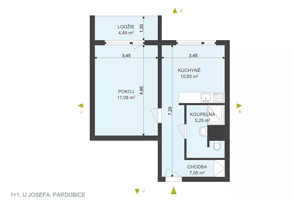 Pronájem bytu 1+1 45 m² U Josefa, Pardubice - Cihelna