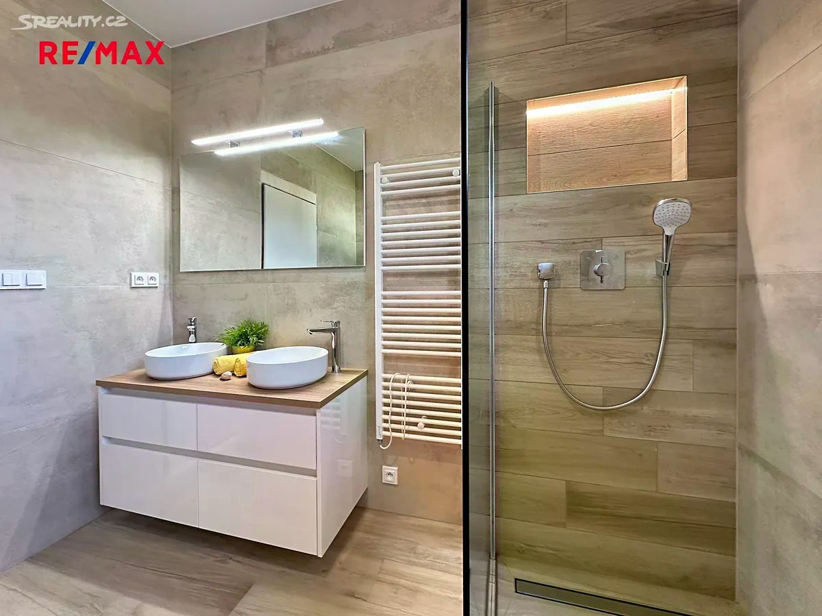 Nabízíme k prodeji moderní cihlový rodinný dům o dispozici 4+kk a užitné ploše 100 m². Dům je zkolaudován a připraven k nastěhování. Nachází se v klidné a velmi oblíbené lokalitě Srubec, jen několik minut jízdy od centra Českých Budějovic. Díky promyšlené dispozici, kvalitní výstavbě a orientaci zahrady poskytuje dům vysokou míru soukromí a komfortní bydlení. Pro maximální využití zahrady je postaven jako dvojdům s vlastním číslem popisným a vlastními přípojkami vody, kanalizace a elektriky. Jeho poloha a dispozice z něj dělají ideální domov pro mladou rodinu, která ocení bezpečné prostředí, blízkost přírody i dostupnost školních zařízení v docházkové vzdálenosti. Parametry nemovitosti: užitná plocha: 100 m² zastavěná plocha: 122 m² plocha pozemku: 613 m² samostatné číslo popisné Dispozice: obývací pokoj s kuchyňským koutem - 38,3 m² ložnice - 10,1 m² pokoj 1 - 11,1 m² pokoj 2 - 11,1 m² šatna - 2,2 m² koupelna s WC - 7 m² samostatné WC - 1,7 m² technická místnost - 4 m² zádveří - 5,9 m² chodba - 8,3 m² půda - praktický úložný prostor Vybavení a technické řešení: kvalitní cihlová stavba s vysokou životností podlahové vytápění napojené na prémiové tepelné čerpadlo Vaillant příprava na krbovou vložku trojskla s přípravou na předokenní žaluzie hliníkový HS portál a designové vchodové dveře s pískovaným sklem moderní koupelna s velkoformátovými obklady, walk-in sprchou a LED podsvícenou nikou dlažby v koupelně, WC, zádveří a technické místnosti možnost dokončení podlah a interiérových dveří dle vlastního vkusu (dveře do WC a koupelny jsou pouze dočasné) Srubec je vyhledávaná rezidenční čtvrť díky své klidné atmosféře, zeleni a výborné dostupnosti do centra města. V docházkové vzdálenosti se nachází mateřská i základní škola, pošta, obchod, restaurace a zastávka MHD s rychlým spojením do Českých Budějovic. Místo je ideální pro rodiny s dětmi, které hledají klidné, bezpečné a kvalitní bydlení v blízkosti města. Tento dům představuje skvělou volbu pro mladou rodinu, která hledá moderní, úsporné a pohodlné bydlení v příjemné lokalitě s kompletní občanskou vybaveností. Zbývá pouze doladit podlahy, dveře a kuchyňskou linku podle vlastního vkusu - vše ostatní je hotové a připravené k nastěhování. Pro bližší informace a sjednání prohlídky kontaktujte makléře nabídky. Uvedené informace a výměry jsou orientační. Majitel si vyhrazuje pravo vyberu kupujiciho