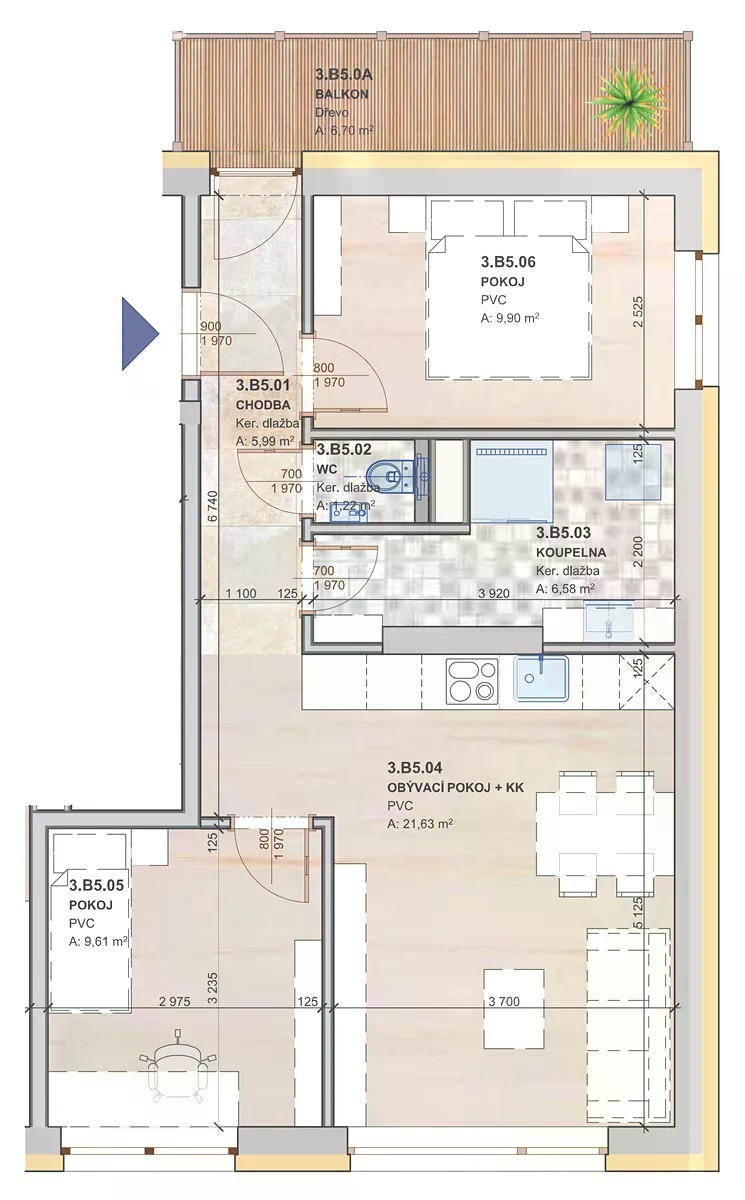 K pronájmu se nabízí moderní byt 3+kk v centru města Zlín, kolaudovaná v roce 2019 nabízející vysoký standard komfortní a stylové prostředí v blízkosti veškeré občanské vybavenosti. Byt se nachází ve třetím patře, s užitnou plochou 70 m², k bytu náleží balkón o ploše 6,7 m², kde můžete relaxovat s výhledem do okolí. Byt je vybaven vestavnými skříněmi, policemi a nábytkem na míru. Obývacím pokoji je sedačka, TV sestava a konf. stůl. Obývací pokoj přechází z jídelny v kuchyňský kout vybavený spotřebiči Elektrolux. V Ložnicích jsou šatní skříně, v jedné ložnici je manželská postel. V koupelně je sprchový kout, umyvadlo s toaletní skříňkou a zrcadlem. Nalezneme zde i prostor pro pračku a šušičku a skříň na čistící prostředky. V chodbě jsou nástěnné police, vestavěné šatní skříně a botník. V oknech jsou moskytiéry, rolety i předokenní žaluzie. Byt je vybaven klimatizací. Parkování je zajištěno výhradním parkovacím stáním za závorou za domem. V bytě je k dispozici veškeré potřebné vybavení, což umožňuje okamžité nastěhování a užívání. K pronájmu se váže vratná kauce ve výši 50 000 Kč a měsíční nájemné činí 21 500 Kč. Měsíční náklady na bydlení se pohybují kolem 4 200 Kč. Ve službách je zahrnut vysokorychlostní internet. V bezprostředním okolí domu je zastávka MHD, obchody, školy i školky. Pro rodiny s dětmi zde naleznou množství dětských hřišť. Pokud Vás byt zaujal, neváhejte nám napsat nebo zavolat a rádi Vám vše ukážeme osobně. Prohlídky jsou možné po předchozí domluvě. Pro více informací o této nemovitosti nebo sjednání prohlídky nás prosím kontaktujte nebo vyplňte níže uvedený formulář, rádi Vám pomůžeme.