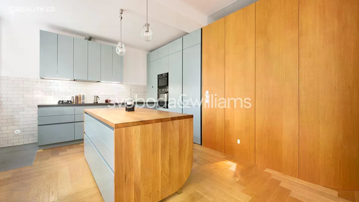 Prostorný designový byt s balkónem je umístěn v 1. podlaží komorního bytového domu s předzahrádkou stojícího na vynikajícím místě v klidné boční ulici v první linii u Wilsonova lesa. Praktickou dispozici rozdělenou na klidovou a společenskou zónu tvoří obývací pokoj, kuchyně s balkónem, jídelna, hlavní ložnice s en-suite koupelnou (s walk-in sprchovým koutem, WC a nikou na pračku i sušičku), další 2 pokoje, koupelna (se sprchovým koutem a oddělenou toaletou), zádveří se šatnou a centrální hala. Byt prošel v r. 2022 kompletní rekonstrukcí, která byla provedena podle návrhu renomovaného architektonického studia. Na podlahách jsou parkety a dlažba, místnosti zdobí designová svítidla, porcelánové zásuvky a vypínače a nábytek vyrobený na míru převážně z dubové dýhy. Kuchyně je plně vybavena a má dubovou pracovní desku, koupelny jsou vybaveny kvalitní sanitou Hansgrohe a Villeroy & Boch. K bytu přísluší prostorný sklep. Prvotřídní lokalita mezi Kraví horou a Wilsonovým lesem umožňuje být během chvilky v přírodě, ale také u všeho potřebného. Doslova pár kroků od domu fungují soukromé i státní školy a školky i gymnázium, blízko je prodejna potravin, kavárna nebo restaurace a vnitřní i venkovní sportoviště. Pohodlné dopravní spojení s ostatními brněnskými částmi zajišťují trolejbusy a autobusy. Podlahová plocha 147,6 m2, balkón 1,7 m2, sklep 11,2 m2.
