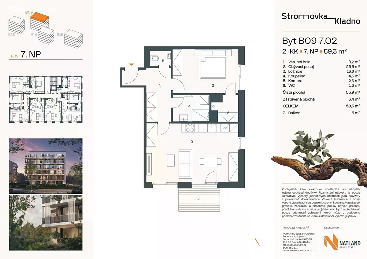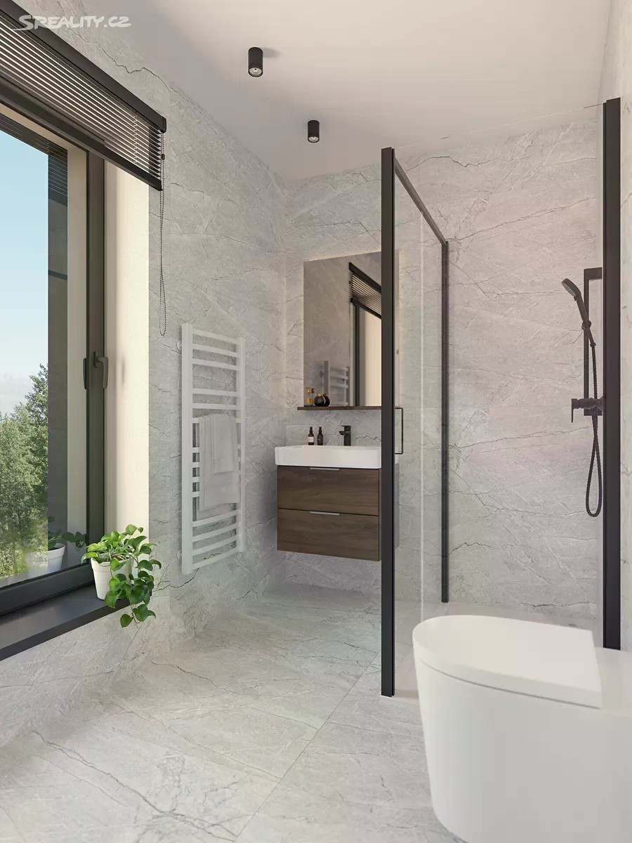 Rohový byt 2+kk s balkonem, orientovaný na jihozápad. Koupelna se sprchovým koutem. Technická místnost na pračku a sušičku.