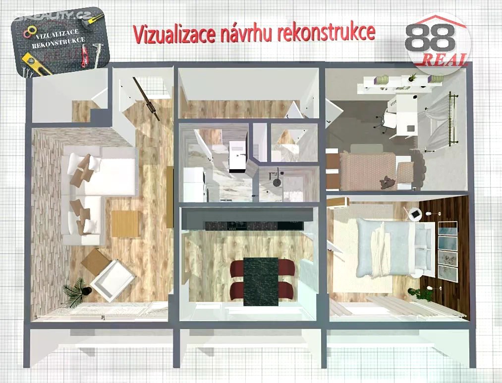 Nabízíme k prodeji prostorný družstevní byt o dispozici 3+1 se třemi lodžiemi a celkovou podlahovou plochou 71,41 m2, který se nachází ve čtvrtém podlaží revitalizovaného panelového domu se dvěma novými výtahy. Součástí bytu je také sklep. Byt je situován na okraji obce, v lokalitě s kompletní občanskou vybaveností. V bezprostřední blízkosti se nachází mateřská i základní škola, restaurace, aquapark, hypermarket Tesco a rovněž možnosti procházek v okolní přírodě. Tato nabídka je vhodná zejména pro zájemce hledající prostorné bydlení za dostupnou cenu, případně atraktivní investiční příležitost, a to díky příznivému poměru pořizovací ceny a potenciální výnosnosti. Vzhledem k opotřebovanému stavu bytu je vhodné provést dílčí opravy, případně kompletní rekonstrukci dle vlastních představ a požadavků. Pro inspiraci je k dispozici vizualizace návrhu celkové rekonstrukce. Byt lze převést do osobního vlastnictví po splnění podmínek družstva SBD Klášterec nad Ohří a po úhradě poplatku za převod ve výši 15 300 Kč. Žádost o převod do osobního vlastnictví je možné podávat vždy v měsíci dubnu. Anuita bytu je již plně splacena. Se zajištěním financování, návrhem a realizací rekonstrukce dle Vašich představ, případně s komplexní správou bytu Vám rádi pomůžeme.