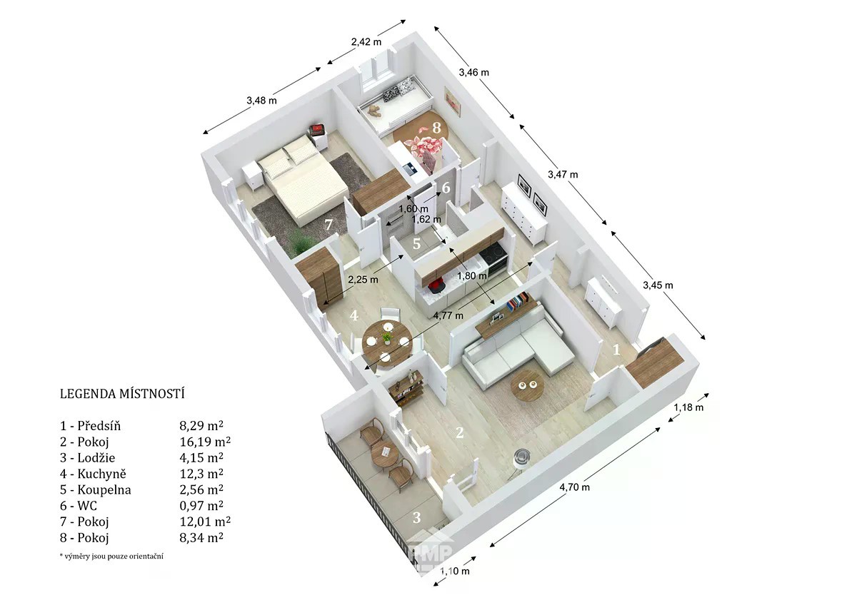 Hledáte byt, který si můžete upravit přesně podle svých představ, aniž byste přeplatili za cizí rekonstrukci? Chcete bydlet v klidné okrajové části města, kde je dobrá občanská vybavenost, dostatek zeleně a minimální provoz? Je pro vás důležité mít všechny pokoje v praktické dispozici 3+1 a k tomu ještě lodžii? Pak je tato nabídka přímo pro Vás! Nabízíme Vám ke koupi prostorný byt 3+1 s lodžií o celkové užitné ploše 66,2 m², umístěný ve 4. nadzemním podlaží z celkových pěti v bytovém domě ve Velkých Opatovicích, který se nachází v klidné okrajové části města, což zajišťuje příjemné bydlení s dostatkem soukromí i zeleně v okolí. Byt je v původním, ale pečlivě udržovaném stavu, vhodný jak k okamžitému užívání, tak k rekonstrukci dle vlastních představ. Dispozice nabízí pohodlné rodinné bydlení - obývací pokoj s výstupem na lodžii, samostatnou kuchyň, dva neprůchozí pokoje a praktickou předsíň. Koupelna je vybavena vanou, WC je samostatné. K bytu náleží také sklepní kóje, ideální pro uložení věcí. Bytový dům nabízí několik společných prostor: dvě kolárny/kočárkárny, sušárnu a čistý, udržovaný vchod. Úklid zajišťuje externí firma, což obyvatelům zajišťuje pohodlí a pořádek. Energetická náročnost budovy: třída G (Energetický štítek budovy nebyl dodán). Vytápění zajišťuje centrální kotelna s vlastní výměníkovou stanicí. Bytový dům prošel revitalizací v roce 2006 - proběhlo zateplení fasády, instalace nového výtahu a zlepšení energetické efektivity. V roce 2013 byla modernizována výměníková stanice, což přispívá ke stabilním a úsporným nákladům na vytápění. Náklady na bydlení: záloha na elektřinu - 1.430,- Kč, fond oprav - 1.258,- Kč, záloha na služby SVJ, teplo, voda - 4.722,- Kč. Celkem - 7.410,- Kč. Jednotlivé výměry místností: kuchyně - 12,3 m², obývací pokoj - 16,19 m², pokoj - 12,01 m², pokoj - 8,34 m², koupelna - 2,56 m², samostatné WC - 0,97 m², předsíň - 8,29 m², lodžie - 4,15 m², sklepní kóje - 1,39 m². Tato nemovitost byla před samotným prodejem prověřena firmou, která se zabývá inspekcí nemovitostí, kdy certifikovaný inspektor posuzuje technický stav nemovitosti na základě zjevných projevů a neinvazivních měřících přístrojů. Město Velké Opatovice má dobrou občanskou vybavenost včetně sítě obchodů, koupaliště, veřejné knihovny s pravidelně doplňovaným knižním fondem, zámeckého parku, kina a muzea kartografie. Dle potřeby je snadno dostupné město Jevíčko (2 km), kde jsou k dispozici další služby a obchody. Ve městě se také nachází dvě mateřské školy a základní škola s plaveckým bazénem a atletickým hřištěm. Město leží v pěkné krajině, nedaleko se nachází les a volná příroda, 30 minut chůze od domu leží Smolenská přehrada. Velké Opatovice se nachází 20 minut od Boskovic a 40 minut od krajského města Blansko.