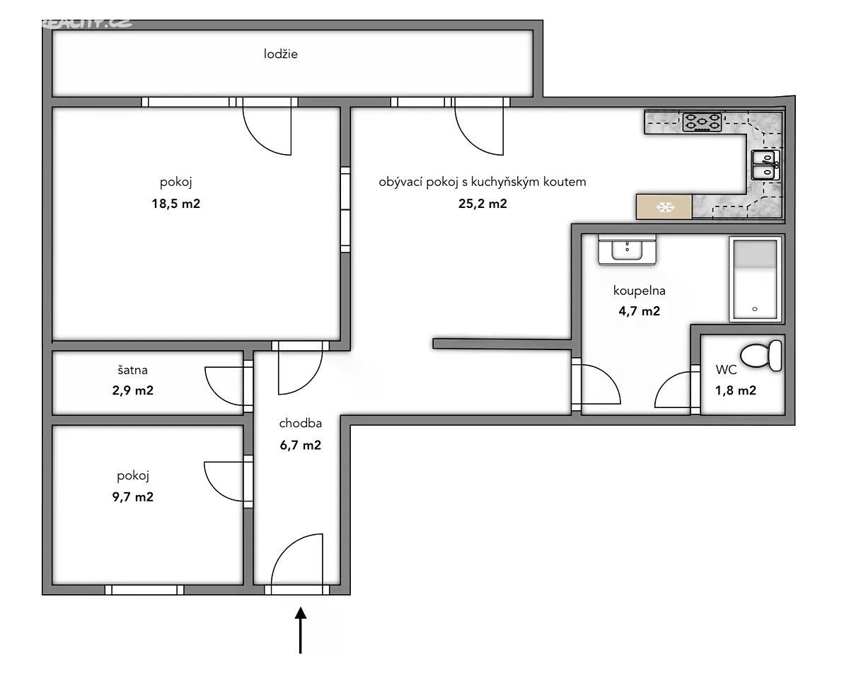Pronájem bytu 3+kk s lodžií a sklepem | Hvězdova 44b, Znojmo K dlouhodobému pronájmu nabízíme prostorný a velmi dobře řešený byt 3+kk o užitné ploše cca 70 m², nacházející se v klidné a stabilní rezidenční lokalitě Znojmo - ulice Hvězdova. Byt je situován v udržovaném bytovém domě a představuje komfortní bydlení bez nutnosti dalších investic. Dispozice bytu je navržena s důrazem na funkčnost, soukromí a dlouhodobou obyvatelnost. Denní část tvoří prostorný obývací pokoj s kuchyňským koutem, který nabízí dostatek místa jak pro relaxaci, tak pro pracovní či společenské využití. Z obývacího pokoje je přímý vstup na velkorysou lodžii, která je přístupná také z ložnice a výrazně zvyšuje uživatelský komfort bytu. Noční část bytu tvoří dvě samostatné místnosti - ložnice a další pokoj vhodný jako pracovna, dětský pokoj nebo pokoj pro hosty. Praktickým prvkem je samostatná šatna, která poskytuje nadstandardní úložný prostor a odlehčuje obytným místnostem. Koupelna je vybavena vanou, toaleta je řešena samostatně. Byt je ve velmi dobrém technickém i vizuálním stavu, s neutrálním a nadčasovým provedením, které vyhovuje i náročnějším nájemníkům. Součástí pronájmu je sklepní kóje. Lokalita Ulice Hvězdova patří mezi vyhledávané rezidenční části Znojma. Lokalita nabízí klidné bydlení s rychlou dostupností do centra města, kompletní občanskou vybavenost v dosahu a dobrou dopravní obslužnost. Je vhodná pro ty, kteří hledají vyvážený poměr mezi klidem a dostupností služeb. Finanční podmínky Nájemné: 14 500 Kč / měsíc Elektřina: cca 1 500 Kč / měsíc Poplatky (vodné, stočné, služby): cca 3 500 Kč / měsíc Vratná kauce: 29 000 Kč Provize RK: 14 500 Kč Byt je vhodný pro dlouhodobý pronájem, ideálně pro jednotlivce, pár nebo menší rodinu. Preferován je solventní nájemník, nekuřák. Pro více informací nebo sjednání prohlídky mě neváhejte kontaktovat.