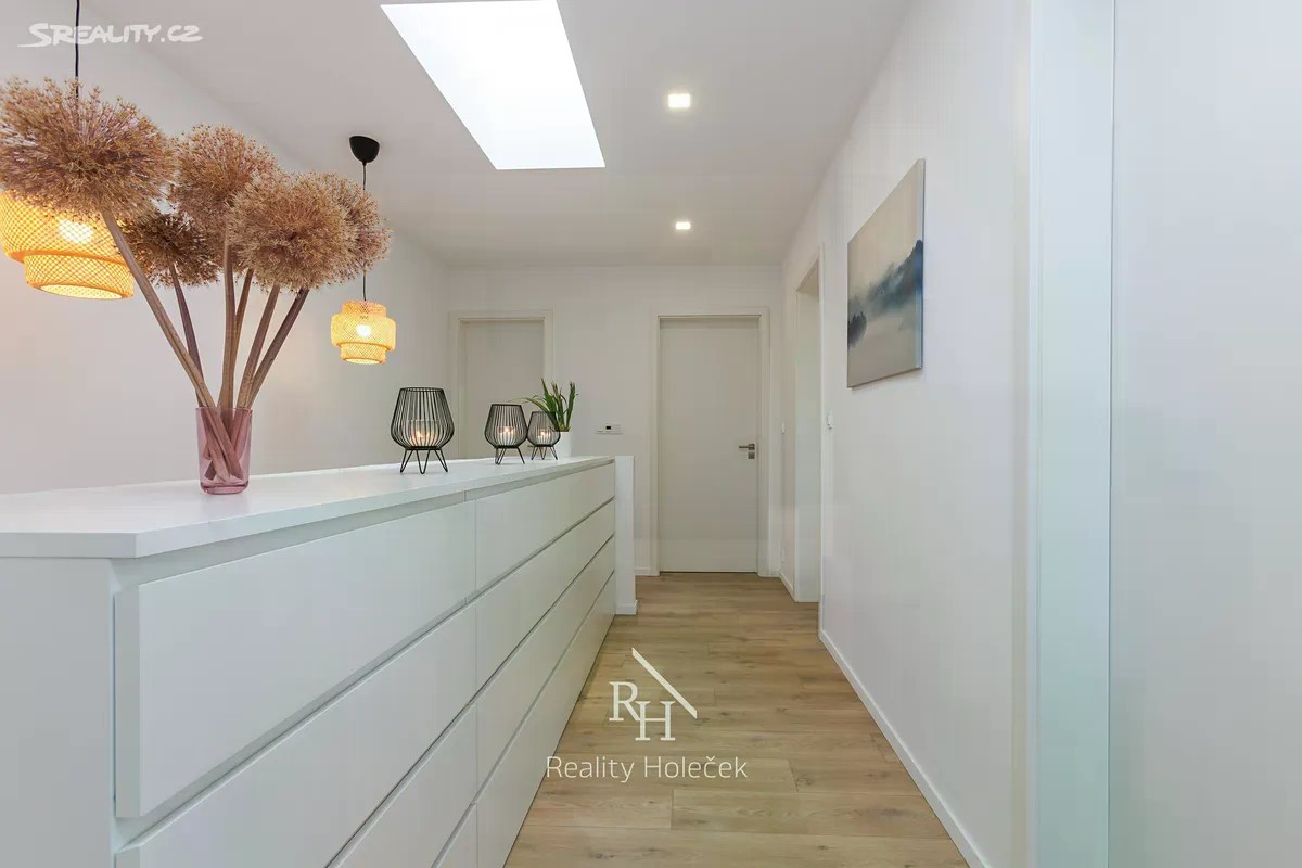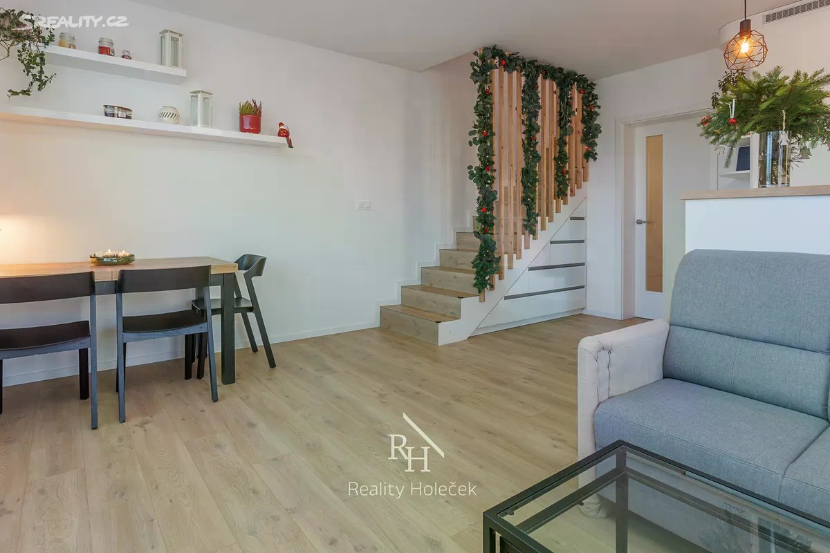 Komfort bytu, velikost domku Rodinné bydlení, kde má každý svůj prostor. Mezonet o dispozici 5+kk poskytuje přes 115 m² moderního a praktického zázemí. Ideální pro rodinu, která chce klid mimo město, ale nechce se vzdát jeho výhod. Tady je kombinace obojího. Dvě koupelny = konec rannímu chaosu Přízemí je připravené pro společný rodinný život - velký obývák s kuchyní je srdcem bytu a přirozeným centrem rodiny. Pracujete na home office? Pak Vám přijde vhod pracovna, která může posloužit i jako pokoj pro hosty. V patře pak najdete soukromé pokoje, druhou koupelnu a šatnu, kterou jistě ocení Vaše drahá polovička. Moderní řešení bez kompromisů Byt je navržený pro potřeby moderní rodiny. Vestavěné úložné prostory, kvalitní materiály, promyšlené dispozice - žádné slepé kouty ani zbytečná místa, která se musí „nějak dořešit“. Kuchyně je připravená na pohodlné vaření - trouba i mikrovlnka jsou vestavěné, ve výšce očí. Kuchyňská linka je prostorná s dostatkem úložných prostor a výhledem do zahrady. Navíc přirozeně navazuje na obývací pokoj. Tohle je připravené bydlení, ne polotovar. Zahrada - další prostor pro život Součástí je zahrada o 677 m², na které vytvoříte místo, kde mohou děti bezpečně běhat od jara do podzimu. Terasa je dokonalá pro letní večery, obědy venku nebo posezení s přáteli. A pokud toužíte po zázemí venku, je tu už příprava na zahradní domek. A kdyby vás lákal bazén - nic tomu nebrání. Dvě parkovací místa. Žádné hledání, žádný boj se sousedy. K bytu patří dvě vlastní parkovací místa, což je v klidné neprůjezdní čtvrti Na Čeperce příjemná jistota. Adresa, kde vám bude dobře Na Čeperce je místo, které působí jako malá vesnička na kraji lesa - přitom jste 20 minut od Prahy. Okolí tvoří křivoklátské lesy, vyhlášené golfové hřiště Botanica, krásné trasy pro běh, kolo i výlety. Nákupy vyřešíte v Unhošti nebo v blízké nákupní zóně. A volný čas? Ten budete trávit v úplně jiném tempu. Tak co už se tady vidíte? Stačí jen napsat, nebo zavolat a potkáme se na prohlídce.
