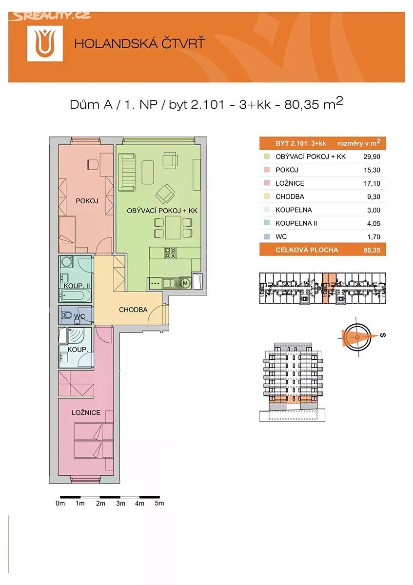 Nabízíme vám k pronájmu tento velmi prostorný 3+kk o celkové podlahové ploše 78 m2. Sestává z obývacího pokoje s kuchyňským koutem, prostorné chodby, dvou ložnic, dvou koupelen z nichž jedna je přístupná přímo z jedné z ložnic, a samostatné toalety. Orientace bytu je na východní i západní stranu. Zejména v letních měsících se však nepřehřívá a je v něm stále příjemné klima. Byt se nachází v 1.NP bez balkónu. Byt je nabízen nezařízený, pouze s kuchyňskou linkou tak, jak lze vidět na fotografiích. Nezbytnou součástí je také kompletní osvětlení bytu a žaluzie na všech oknech včetně sít proti hmyzu. Byt prošel před nedávnem drobnými renovacemi, a to včetně kompletní výměny podlahové krytiny v obytných místnostech. K bytové jednotce náleží také 2 venkovní vyhrazená parkovací stání nacházející se přímo před vstupem do domu. Pokud Vás tento byt zaujal, neváhejte mi napsat nebo zavolat a ráda vám vše ukáži osobně. Prohlídky jsou možné po předchozí domluvě. Pro více informací nebo sjednání prohlídky mne prosím kontaktujte nebo vyplňte níže uvedený formulář.