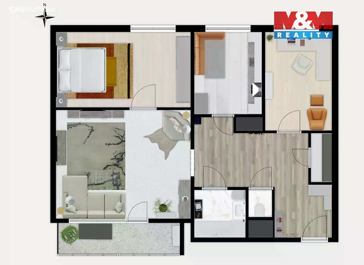 Nabízíme k prodeji byt o dispozici 3+1 se zasklenou lodžií a sklepem, který je umístěný v 5. NP revitalizovaného panelového domu s výtahem. Celková plocha bytu činí 66 m², z toho lodžie 6 m². K bytu náleží také sklepní kóje o velikosti 2 m². Byt je v původním stavu, určený ke kompletní rekonstrukci, čímž se novému majiteli otevírá prostor pro úpravu interiéru podle svého vkusu. Dispoziční řešení a orientace: ložnice, kuchyně a pokoj jsou orientovány na sever, obývací pokoj se zasklenou lodžií a klimatizační jednotkou je orientován na jih, v chodbě se nachází spíž, kterou lze přetvořit na praktickou šatnu. Dům je po revitalizaci, s rekonstruovaným výtahem. Okolí nabízí nejen parkovací místa a plnou občanskou vybavenost, ale také dětská a workoutová hřiště. Zastávka MHD 3 min. chůze, 20 min. do centra. Tento byt je vhodný jak pro vlastní bydlení, tak jako investiční příležitost. Zavolejte si pro více informací nebo si rovnou domluvte prohlídku.