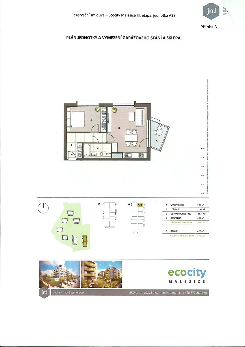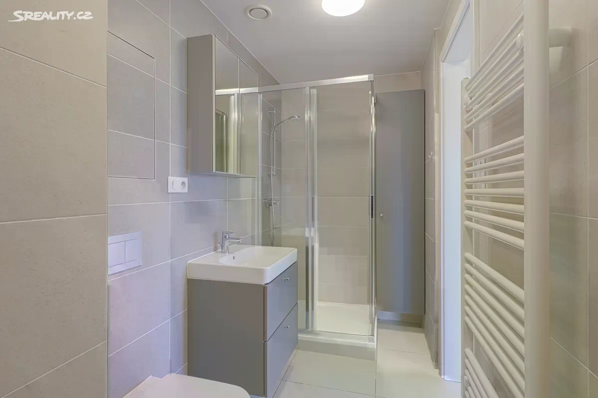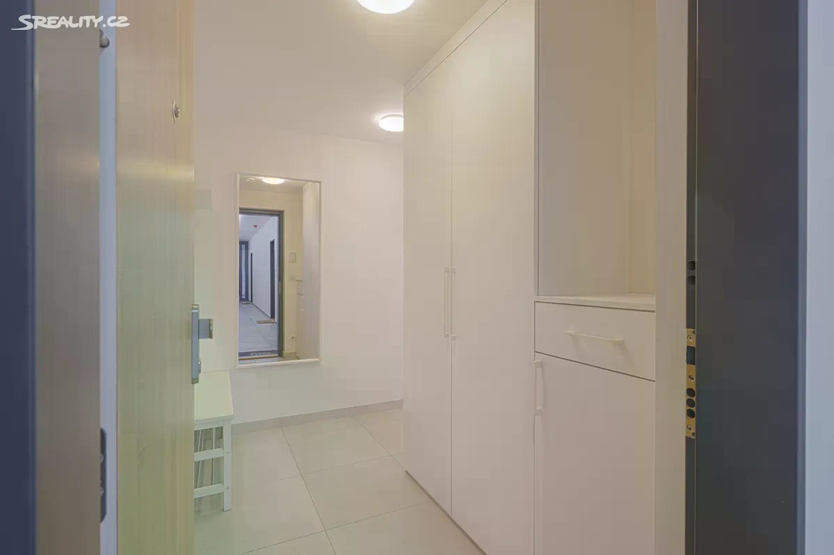 Dovolujeme si Vám nabídnout k pronájmu moderní byt 2+kk s plochou 50,6 m² a balkonem o velikosti 4,7 m². Tento jednopodlažní byt se nachází ve třetím patře cihlové novostavby z roku 2020, která je plně přizpůsobena pohodlnému bydlení. Komfort novostavby se zde prolíná s klidem okolní přírody. Ideální kombinace pro váš nový domov. K bytu je možné pronajmout také garážové stání za cenu 2 500 Kč měsíčně. Lokalita: Byt je situován v atraktivní a klidné části nově vybudované čtvrti Ecocity Malešice, která se rozkládá mezi Malešickým lesem a Malešickým parkem. Tato poloha nabízí ideální propojení městského komfortu s přírodou. V docházkové vzdálenosti jsou lesní cesty, běžecké trasy, venkovní posilovna i několik hřišť, což ocení nejen sportovně založení jednotlivci, ale i rodiny s dětmi. Zeleň v okolí vytváří příjemnou mikroklimatickou zónu a přirozeně tlumí ruch města. Přesto je lokalita výborně dostupná, díky blízkým zastávkám MHD se pohodlně a rychle dostanete do centra Prahy i k občanské vybavenosti v širším okolí. Byt je vybaven řízeným větráním s rekuperací, které zajišťuje stálý přísun čerstvého vzduchu, a venkovními žaluziemi pro účinné stínění, úsporu energií a dostatek soukromí. K bytu je možné pronajmout garážové stání v suterénu domu, hned vedle vstupu do garáží a také pár kroků od výtahu s lehkým přístupem ke sklepní kóji. Sklepní kóje o rozloze 2,3 m² je vybavená kvalitními regály pro uskladnění sezonních věcí a sportovního vybavení. Samozřejmostí je moderní výtah a bezpečnost celého objektu. Kuchyň je elegantně začleněna do prostorného a světlého obývacího pokoje, který díky velkým oknům působí vzdušně a příjemně. Spojení obou zón do jednoho otevřeného prostoru vytváří ideální podmínky pro každodenní fungování i stolování. V prostoru je dostatek místa i pro jídelní stůl. Místnost zároveň disponuje vstupem na balkon orientovaný mimo rušných ulic. Vestavěná kuchyně nabízí moderní bílou kuchyňskou linku na míru s dostatkem úložných prostor, pracovní deskou v betonovém dekoru a podlinkovým osvětlením. Součástí vybavení jsou vestavná lednice s mrazákem, indukční varná deska, elektrická trouba a integrovaný odsavač par, vše laděné do čistého minimalistického stylu. Ložnice nabízí klidné zázemí s výhledem do zeleně a na okolní moderní zástavbu. Díky velkému oknu působí vzdušně a svěže, přirozené světlo zde dominuje po celý den. Celou stěnu pokrývá na míru vestavěná šatní skříň s dostatkem úložného prostoru, praktické řešení pro každodenní komfort bez potřeby dalšího nábytku. Světlé podlahy a neutrální barevné ladění dotvářejí příjemnou atmosféru vhodnou pro odpočinek i práci z domova. Koupelna nabízí moderní vybavení: prostorný sprchový kout s posuvnými skleněnými dveřmi, umyvadlo se spodní skříňkou se zásuvkami a zrcadlovou skříňkou s úložným prostorem. Nechybí závěsné WC se zabudovanou nádržkou, designový žebříkový radiátor na sušení ručníků, stropní osvětlení a odvětrávání. Celý prostor je obložen velkoformátovou keramikou v neutrálních šedých tónech a v zadní části koupelny je připravené místo s přípojkami na pračku. Chodba je vzdušná a praktická, po vstupu do bytu se napravo nachází vestavěná skříň a nalevo samostatný věšák s botníkem. Proti vstupu je umístěné zrcadlo, které opticky rozšiřuje prostor a zároveň slouží k běžnému komfortu při odchodu z bytu. Dostupnost: Autobusová zastávka - 3 min pěšky Večerka - 2 min pěšky Malešický les - 3 min pěšky Park Malešice - 3 min pěšky Mateřská škola - 5 min pěšky Dětské hřiště - hned vedle domu