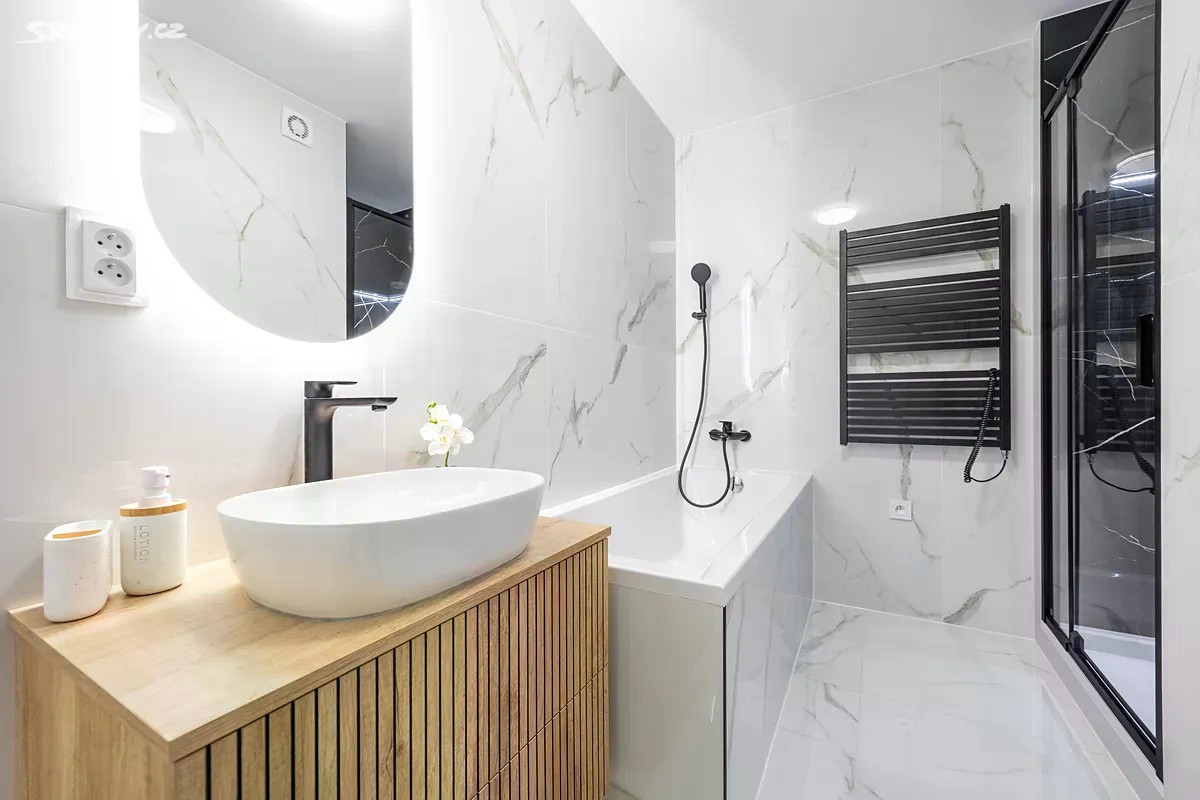 Nabízím kompletně zrekonstruovaný krásný byt 3+kk revitalizovaného domu s krásným výhledem, s kuchyní na míru a krásnou prostornou koupelnou, ve Vršovicích na rozhraní Vinohrad. Nejedná se o vizualizaci, byt je po náročné a vydařené rekonstrukci. Byt je dispozičně velmi dobře řešený s kuchyní a obývacím pokojem, kde je 30 m2 prostoru. Dále se dvěma prostornými ložnicemi, nádhernou koupelnou s podlahovým topením a samostatnou toaletou. Byt má dvě lodžie se vstupem z obývacího pokoje a jedné z ložnic a dále sklep. Jedná se o velmi klidnou lokalitu v blízkosti Vinohrad a centra města. Parkování je před domem a dále je možnost parkování v parkovacím domě naproti domu, klidová zóna s menším hřištěm pro děti se nachází na druhé straně domu. Dispozice bytu 3+kk: - 2x plnohodnotná ložnice (12,5 m2 + 17,7 m2) - Obývací pokoj s prostornou kuchyní na míru (30 m2) - Vstupní chodba (5,4 m2) - Koupelna se sprchovým koutem a vanou ( 5,6 m2) - WC (1,1 m2) - Lodžie (6,3 a 7,1 m2) - Sklep (2,5 m2) V kompletní rekonstrukci ve standardu novostavby je zahrnuto: - nová kuchyňská linka vyrobena na míru se spotřebiči (značková elektrická trouba, myčka, indukční deska, digestoř, osvětlení, dřez) - celková výměna elektroinstalačních rozvodů v mědi - nové osvětlení bytu - kompletní úprava povrchů stěn - nové zárubně a dveře - nivelace podlah a nová vinylová podlaha - nová sanita (vana, sprchový kout, umyvadlo, skříňka, toaleta) - podlahové topení v koupelně s digitálním termostatem - sádrové omítky a SDK podhled v celém bytě - příprava na pračku v koupelně Co charakterizuje bytový dům: - Dům je velmi dobře spravován SVJ s velkým zaměřením na čisté, klidné a bezpečné bydlení. - Dům je po celkové revitalizaci. Je zateplený a samozřejmostí jsou plastová okna - Zrekonstruované jsou i společné prostory vč. kamerového systému. - V domě jsou dva výtahy Velkou výhodou je kompletní občanská vybavenost, blízkosti nákupní možnosti a MHD, dále blízkost centra města, zeleně a veškeré občanské vybavenosti. Budu se těšit na osobní schůzku při prohlídce. Pro sjednání termínu prohlídky, prosím, vyplňte formulář níže. Prosím o kontaktování jenom přímé zájemce, a ne realitní kanceláře. Děkuji za respektování.
