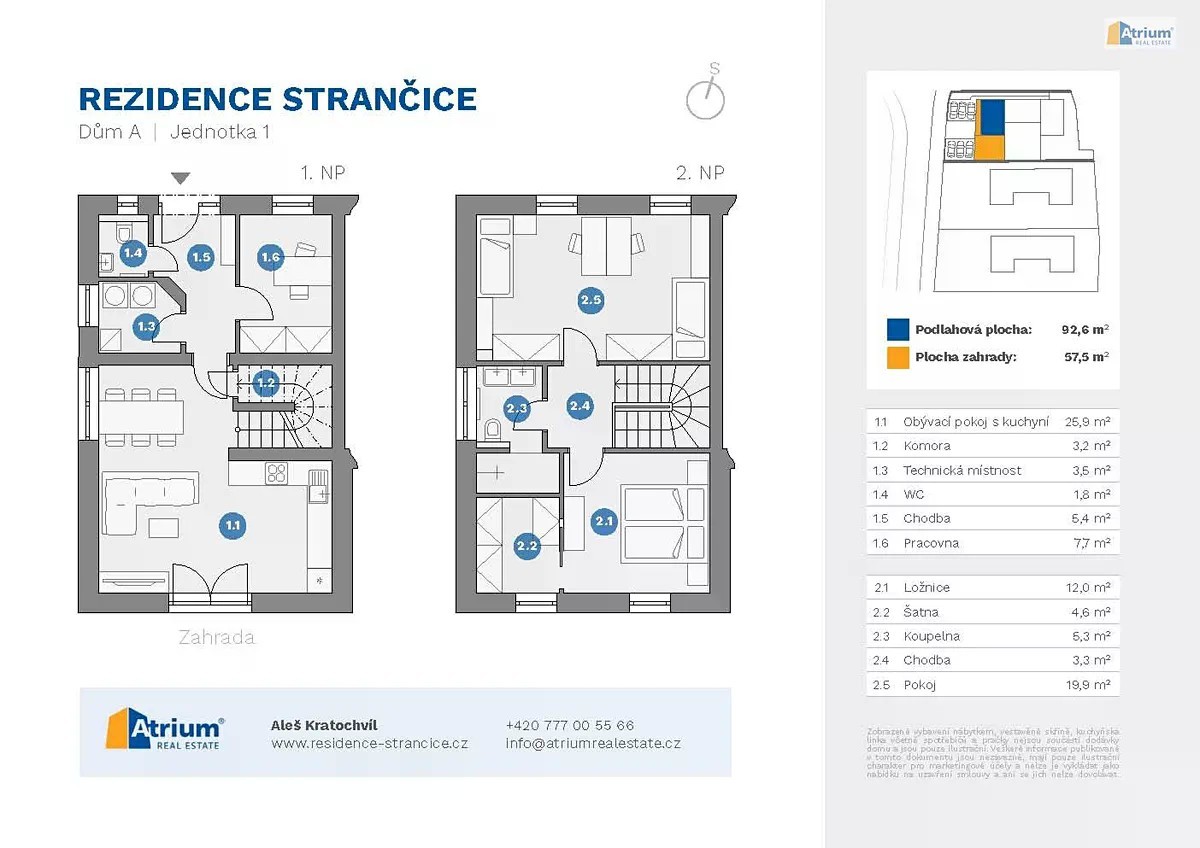 Vítejte na prezentaci nového developerského projektu Residence Strančice v malebné obci nedaleko Prahy. Tento residenční developerský projekt je realizován na klidném místě v širším centru obce Strančice. Dle platného územního plánu se jedná o tři rodinné domy, každý se třemi bytovými jednotkami. Vlastní projekt architektonicky, ale hlavně uživatelsky splňuje funkci řadových rodinných domů. Situovaný je u nového parku, u každé jednotky /bytu/ bude majitel užívat privátní zahradu a v ceně jsou i dvě parkovací stání. Okolí nabízí mnoho rekreačních možností včetně cyklostezek a okolní lesy lákají k procházkám či jinému sportovnímu vyžití. Přijďte objevit moderní a komfortní bydlení v harmonickém prostředí, které kombinuje klid venkova s výhodami městského života s vynikající dopravní dostupností do Prahy. Zahájení výstavby 10/2025, dokončení je plánováno do 12/2026. Vítejte ve Vašem novém domově! Tato konkrétní jednotka s označením A1, o užitné ploše 92,6 m2, se zahradou 58 m2, je ideální variantou pro rodinu s dětmi, kde si budete užívat klidné bydlení s relaxem na privátní zahradě.