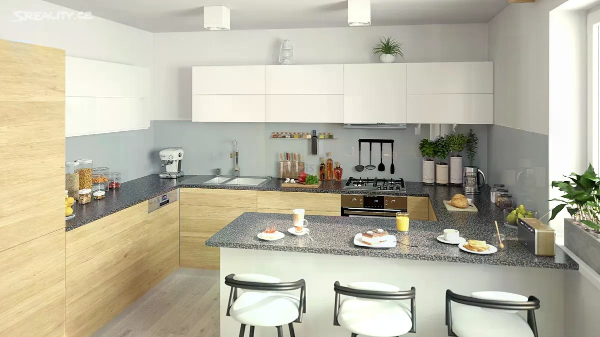 Exklusivně nabízíme k prodeji novostavbu mezonetového byt 5+kk ve zděném domu se třemi byty, v Novém Strašecí. Byt je umístěn v prvním a druhém patře třípodlažní nově budované stavby (k nastěhování konec r. 2026). Možno zvolit ze dvou variant bytů - obytná plocha 127,48 m2 nebo 128,61 m2 (v nabídce také byt 3+kk o výměře 98 m2). V prvním podlaží bytu nalezneme vstupní chodbu, koupelnu, ložnici s šatnou, obývací pokoj s kuchyňským koutem a schodiště. V druhém podlaží potom byt pokračuje prostornou chodbou, třemi pokoji a koupelnou. K bytu náleží v ceně parkovací stání ve dvoře za dvěmi sekčními vraty s elektrickým pohonem. Vytápění bytu a ohřev vody řešeno vlastním plynovým kotlem, v celém bytě teplovodní podlahové vytápění. Byt se nabízí v kvalitních standardních materiálech, možnost výběru obkladů, dlažeb, finálního povrchu podlah a obložkových dveří. V případě zájmu možno řešit také nadstandardní výběr materiálů dle požadavků klienta. Pro bližší informace nás neváhejte kontaktovat. Financování možné úvěrem, rádi vyřídíme.