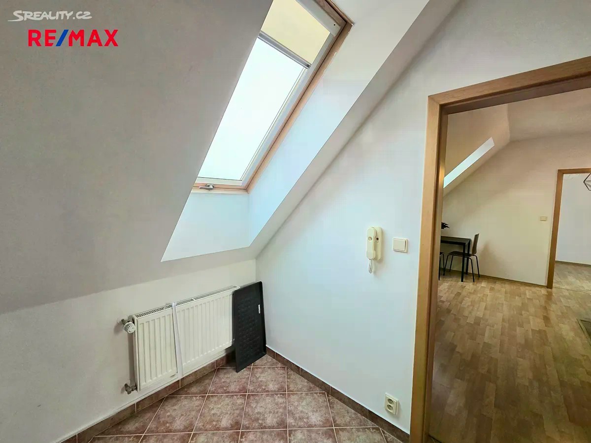 Nabízíme podkrovní byt 2+kk ve vyhledávané lokalitě Jesenice u Prahy. Byt zahrnuje obývací část s kuchyňským koutem, jehož součástí je linka s vestavěnými spotřebiči. Součástí bytu je ložnice, koupelna s vanou a prostorná předsíň. K bytu patří rovněž podíl na společné zahradě o rozloze 500m2. Parkování možné před domem. Byt se nachází ve velice klidné části Jesenice s veškerým občanským vybavením. Rychlé napojení na Pražský okruh, centrum Prahy dostupné za cca. 20 minut. Pravidelné autobusové linky zajišťují spojení na metro C. V případě vašeho zájmu vám ráda osobně nemovitost představím.