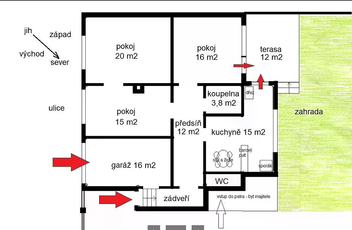 K prodeji nabízíme velký rodinný dům v klidné části obce Jeneč u Prahy, ideální pro velkou rodinu jako dvougenerační bydlení, kombinaci bydlení a pronájmu jednoho z bytů a nebo jako investiční příležitost s možností pronájmu 2 bytů o velikosti 3+1. Dům stojí na rovinatém pozemku se zahradou a zpevněným dvorem, v klidné ulici rodinných domů s výbornou dostupností do Prahy. Dispozice a uspořádání domu V domě se nacházejí dvě bytové jednotky 3+1 se samostatnými vchody. Každé patro tak nabízí plnohodnotný byt o velkorysé ploše, což dává domu velký potenciál jak pro vlastní bydlení, tak i pro pronájem. Přízemní byt 3+1 s garáží a terasou V prvním nadzemním podlaží se nachází byt 3+1 se zastavěnou plochou 144 m2 s vlastním vstupem ze dvora. Součástí této úrovně je garáž přímo v domě a také terasa v přízemí, která není započtena do užitné plochy bytu a představuje příjemný prostor pro venkovní posezení či letní kuchyni. Byt má vlastní plynový kotel a samostatné vytápění. K dispozici je také menší sklep vhodný pro skladování potravin. Druhý byt 3+1 o zastavěné ploše 144 m2 se nachází ve 2. nadzemním podlaží a má také samostatný vstup. Horní patro je částečně zrekonstruováno - v bytě jsou nové podlahy, moderní osvětlení a nový plynový kotel, díky čemuž je byt připravený k okamžitému užívání a zároveň umožňuje novému majiteli doladit interiér podle vlastních představ. Velkým bonusem je prostorná terasa přístupná z kuchyně, orientovaná do klidného vnitrobloku. Terasa počítá s rekonstrukcí, což dává novému vlastníkovi možnost vytvořit si zde atraktivní venkovní obývací zónu přesně na míru. Technické řešení a inženýrské sítě Každá bytová jednotka má vlastní plynový kotel a samostatné vytápění. Dům je napojen na elektřinu a plyn. Voda je vedena z vlastní studny, přičemž ve sklepě je zároveň k dispozici uzavřená obecní vodovodní přípojka - nový majitel si tak může zvolit preferovaný způsob zásobování vodou. Za domem se nachází příjemná rovinatá zahrada se zelení, která poskytuje dostatek prostoru pro odpočinek, dětské hry nebo drobné zahradničení. Na zahradě stojí samostatná zděná stavba o ploše 55 m² s garážovými vraty, která může sloužit jako druhá garáž, dílna, sklad pro podnikání, ateliér či hobby zázemí. V současné chvíli se řeší kolaudace této stavby. Před domem i ve dvoře je dostatek zpevněných ploch pro parkování dalších vozů. Jeneč je vyhledávaná obec v dojezdové vzdálenosti Prahy s výborným dopravním spojením - v obci je vlakové nádraží a autobusové linky, v blízkosti je nájezd na dálnici D7. V obci a okolí je dostupná běžná občanská vybavenost, škola, školka, obchody a služby. Štítek energetické náročnosti budovy zatím nebyl vyhotoven, proto uvádíme G. Bydlení s podnikáním? Byty k pronájmu? Ubytování? Investice? Vícečlenná či více-generační rodina? Tato nemovitost určitě stojí za pozornost. Neváhejte nás kontaktovat pro další informace nebo přímo pro domluvení prohlídky této jedinečné nemovitosti.