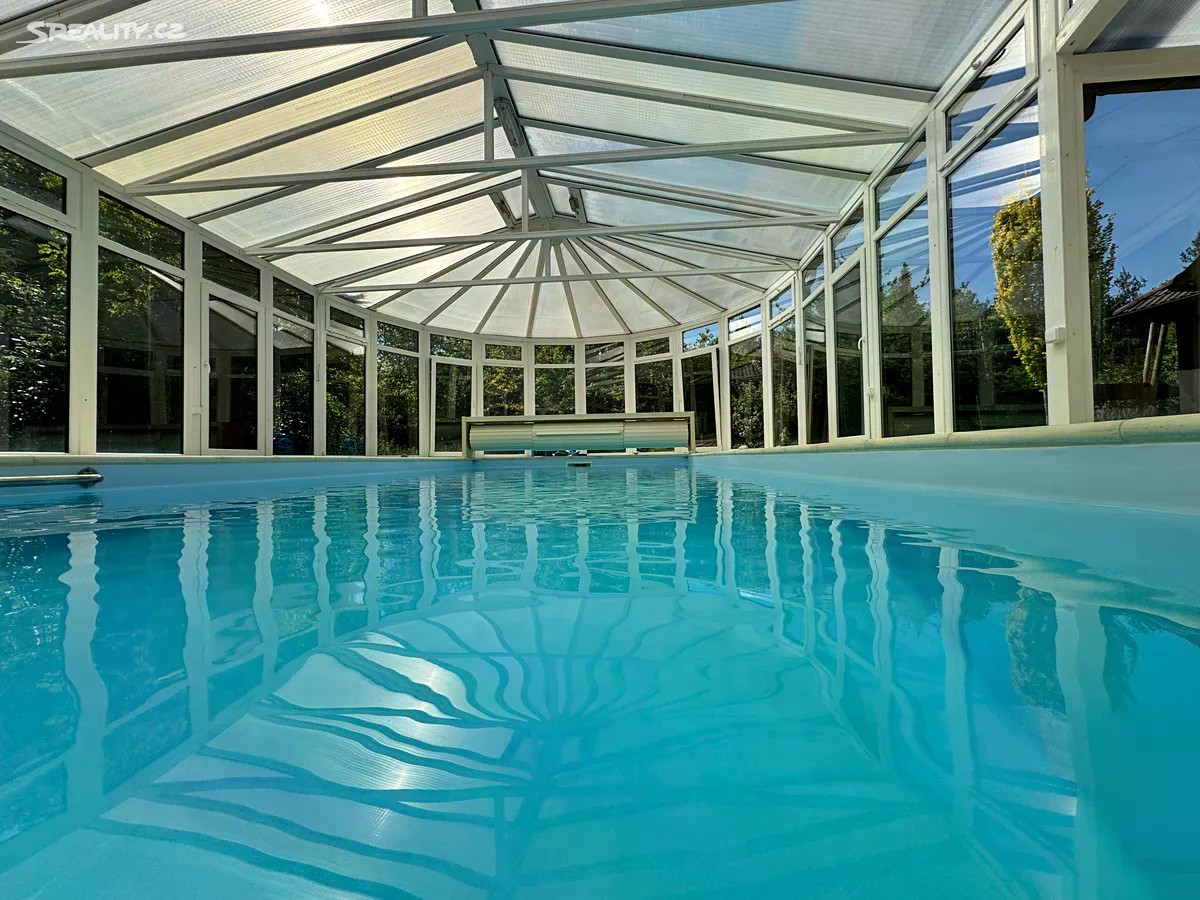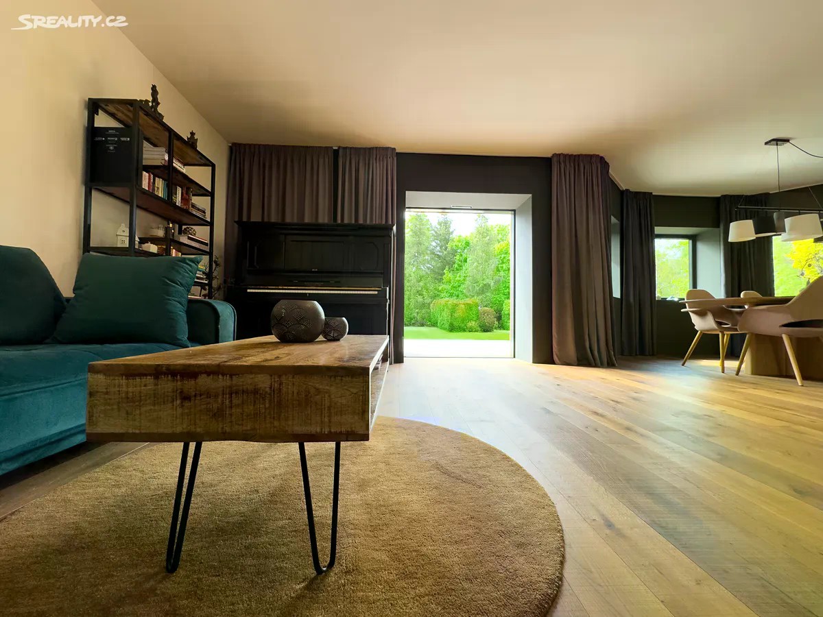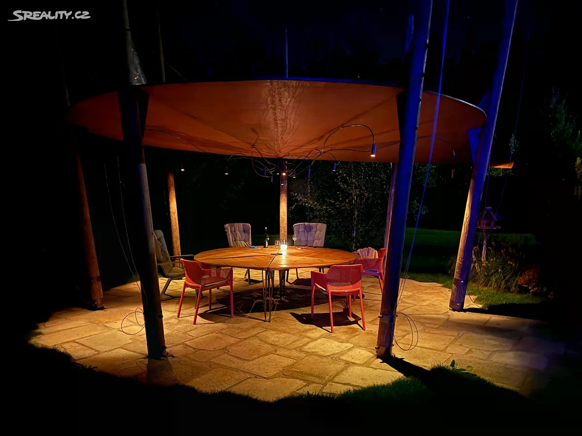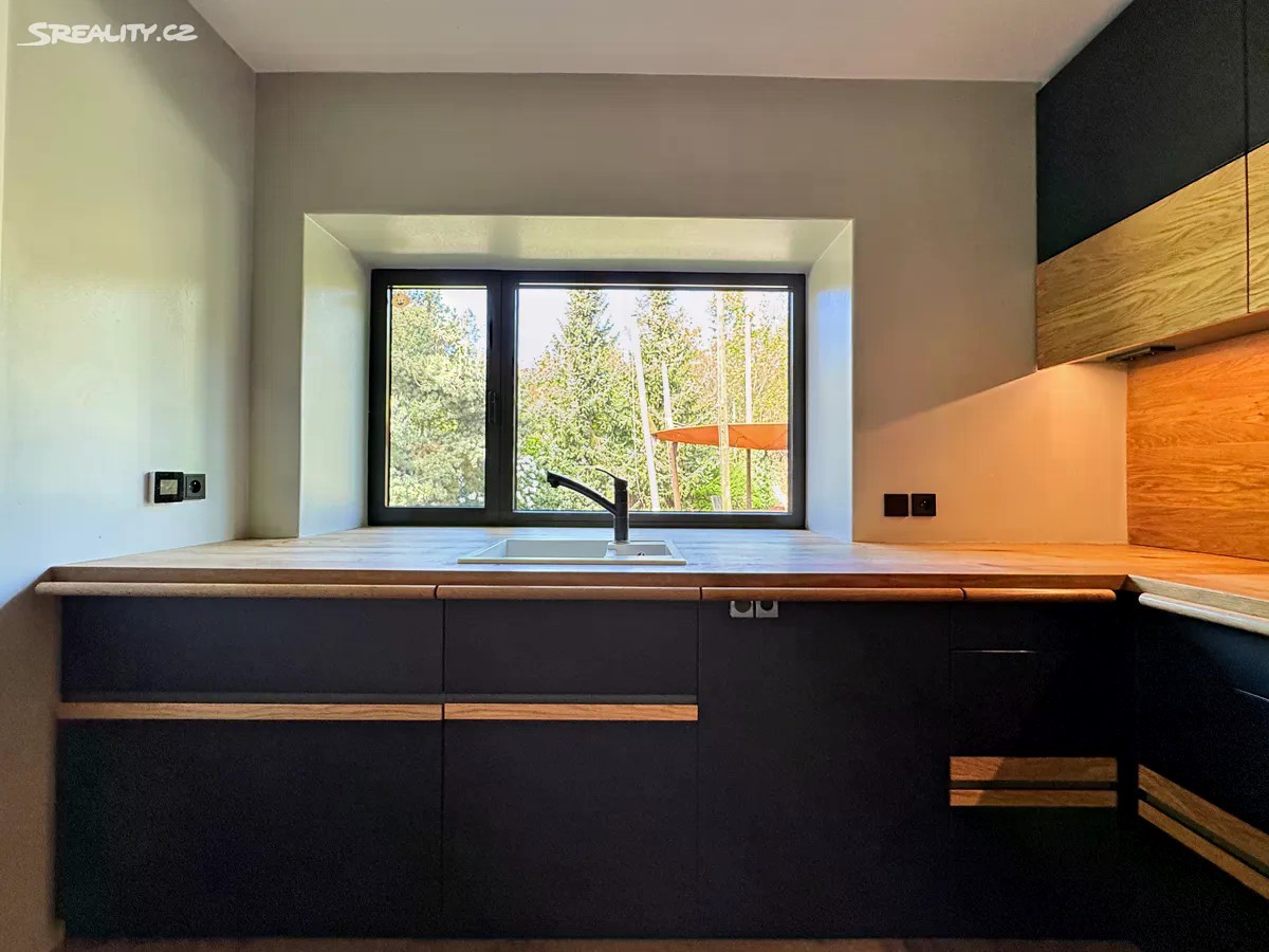 Nabízíme k prodeji samostatně stojící moderní vilu, po kompletní rekonstrukci v roce 2024, nacházející se v klidné části Unhoště u Prahy.Výjimečný pozemek 2 573 m², přímo navazující na lesy CHKO Křivoklátsko. Vila je o celkovéužitné ploše 375 m² má promyšlený půdorys, velkorysá okna a přímé vstupy do pečlivě upravené zahrady. Dispozice zahrnuje 5 ložnic, pracovnu, šatnu, 3 koupelny, kuchyni, obývací pokoj, posilovnu, dvougaráž a další praktické zázemí včetně druhé kuchyně a prádelny. Zastřešený, vyhřívaný bazén s tepelným čerpadlem umožňuje celoroční koupání; hlavní koupelna nabízí vířivku, velkorysý walk-in sprchový kout a luxusní obklady z přírodního kamene. Vytápění zajišťuje tepelné čerpadlo se zemními vrty, samozřejmostí je chytré osvětlení a stínění s blackout závěsy v ložnicích. Zahrada je vzrostlá, členitá, s automatickým profesionálním zavlažováním, řadou klidových zákoutí, altánem, vlastním sportovním hřištěm a zahradním domkem pro hosty či práci; příjezd vede přes elektrickou bránu s parkováním pro více vozů. V docházkové vzdálenosti je golf, restaurace a další volnočasová nabídka, v nedaleké Unhošti kompletní občanská vybavenost; do centra Prahy se pohodlně dostanete autem zhruba za 25 minut. Ideální kombinace nadčasového designu, soukromí a přírody doslova za dveřmi.