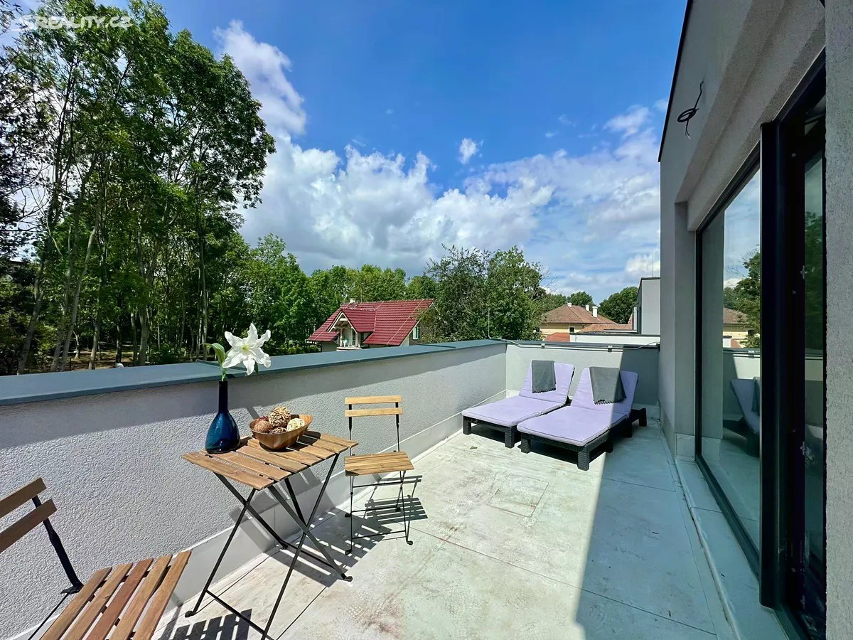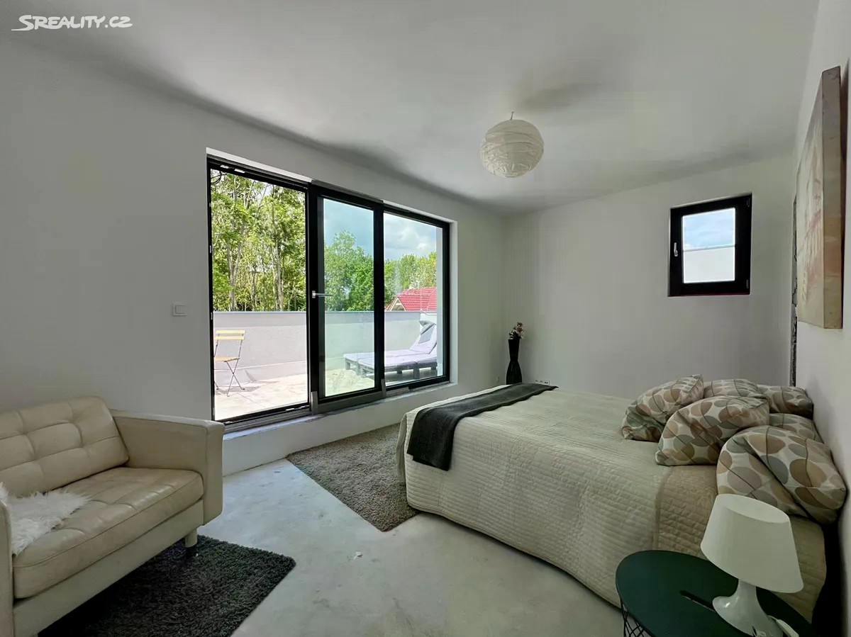 Rodinná realitní kancelář Tři Bratři - Svoboda Reality si Vám dovoluje nabídnout komplex 5 rodinných domů v Líbeznicích. Projekt nabízí vysoce kvalitní bydlení při použití nejlepších možných materiálů a stavebních postupů, avšak při zachování dostupné ceny. Dispozice domu 5+kk se zahradou a garáží poskytuje ideální prostor pro příjemné rodinné bydlení. Hrubá podlažní plocha činní 198 m2 a pozemek každého domu cca 265 m2. Navíc máte možnost koupit dokončený dům "na klíč" za 14 990 000,- Kč nebo ve standardu Shell & Core za 13 990 000,- což dává kupujícím možnost si dům zařídit podle svých představ nebo si na pomoc najmout interiérového architekta. V této o 1 mil Kč úspornější variantě je dům prodáván bez podlahových krytin, dlažeb a obkladů, sanitárního zařízení a dveří. V přízemí každého dvojdomu je hlavní vstup s praktickým zádveřím a garáží, hala se samostatným WC a vstup do obývacího pokoje s kuchyňským koutem. Zde jsou posuvné prosklené dveře pro vstup na západní zahradu. V prvním patře jsou dva pokoje, pracovna, koupelna s WC, šatna s oknem a technická místnost. Ve druhém patře se nachází hlavní ložnice s vlastní koupelnou a soukromou střešní terasou. V zrcadle schodiště na každém patře je příprava místa pro vestavnou skříň. Domy jsou od sebe skrytě oddilatovány. Zpevněné plochy jsou částečně z betonové dlažby a pojezdové plochy z dlažby zatravňovací. Líbeznice jsou synonymem pro klidné a příjemné bydlení s vynikající občanskou vybaveností. V obci najdete vše, co potřebujete pro pohodlný každodenní život - od kvalitních škol a školek, včetně umělecké školy, přes supermarkety, lékárny, zdravotního střediska, restaurace a kavárny, až po sportovní areály, volnočasová centra, divadlo a také okolní přírodu s cyklostezkami. Díky strategické poloze máte navíc zaručenou snadnou dostupnost do Prahy. Výborně dostupná dálnice D8 pak zajišťuje bezproblémové spojení nejen s Prahou, ale i s dalšími regiony. Pro lepší představení využitelnosti prostoru jsme pro Vás připravili ukázkový dům a vybavili jej nábytkem tak, abyste na místě sami viděli možné využití jednotlivých pokojů a praktičnost celého domu. Vybavení není součástí prodeje. Pro podrobné informace k jednotlivým dvojdomům a domluvení prohlídky na místě, neváhejte kontaktovat makléře.
